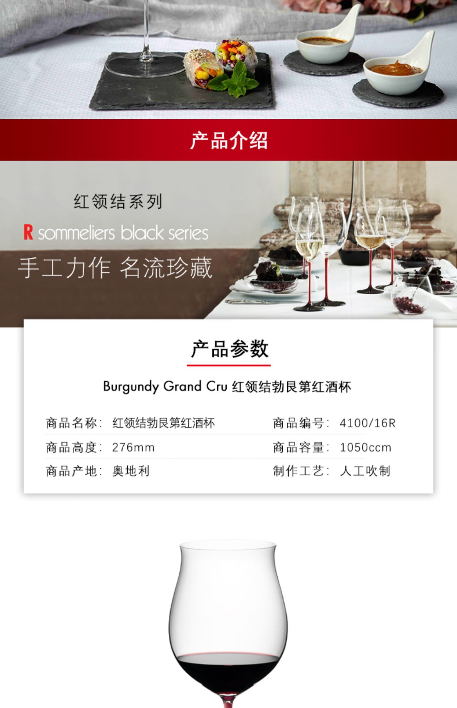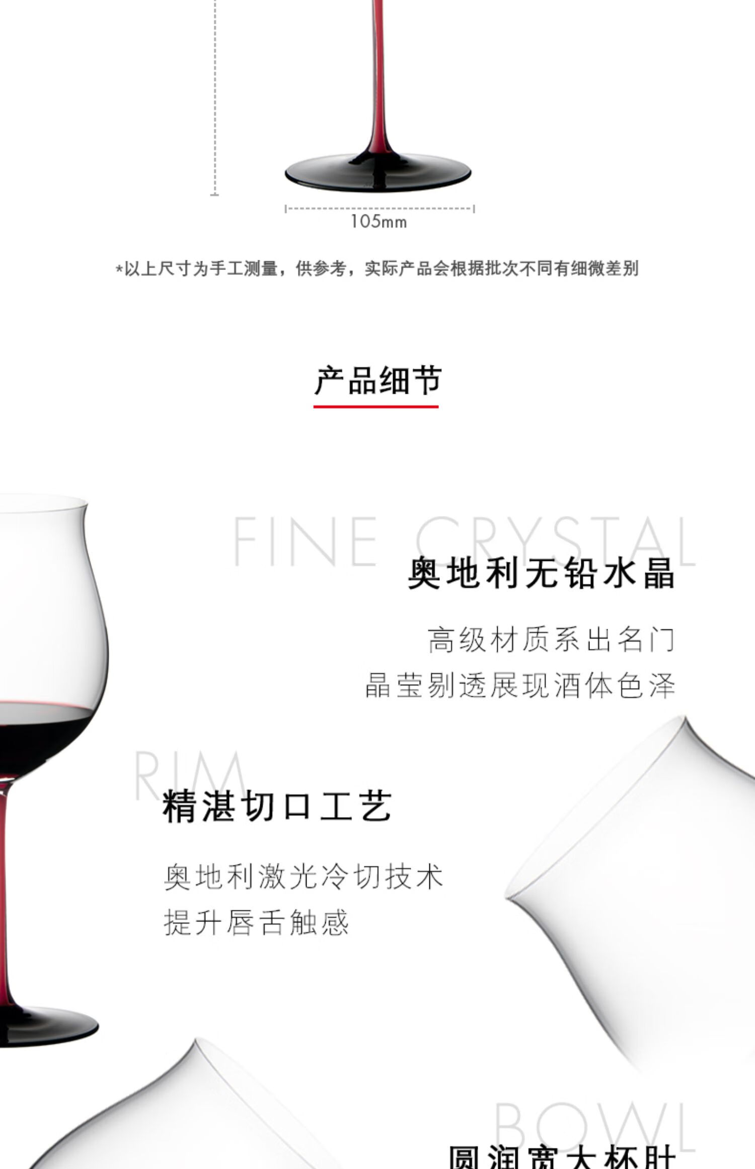 醴铎RIEDEL奥地利进口红领结系列无铅水晶手工杯勃艮第杯红酒杯礼盒装 2支礼盒装 1050ml