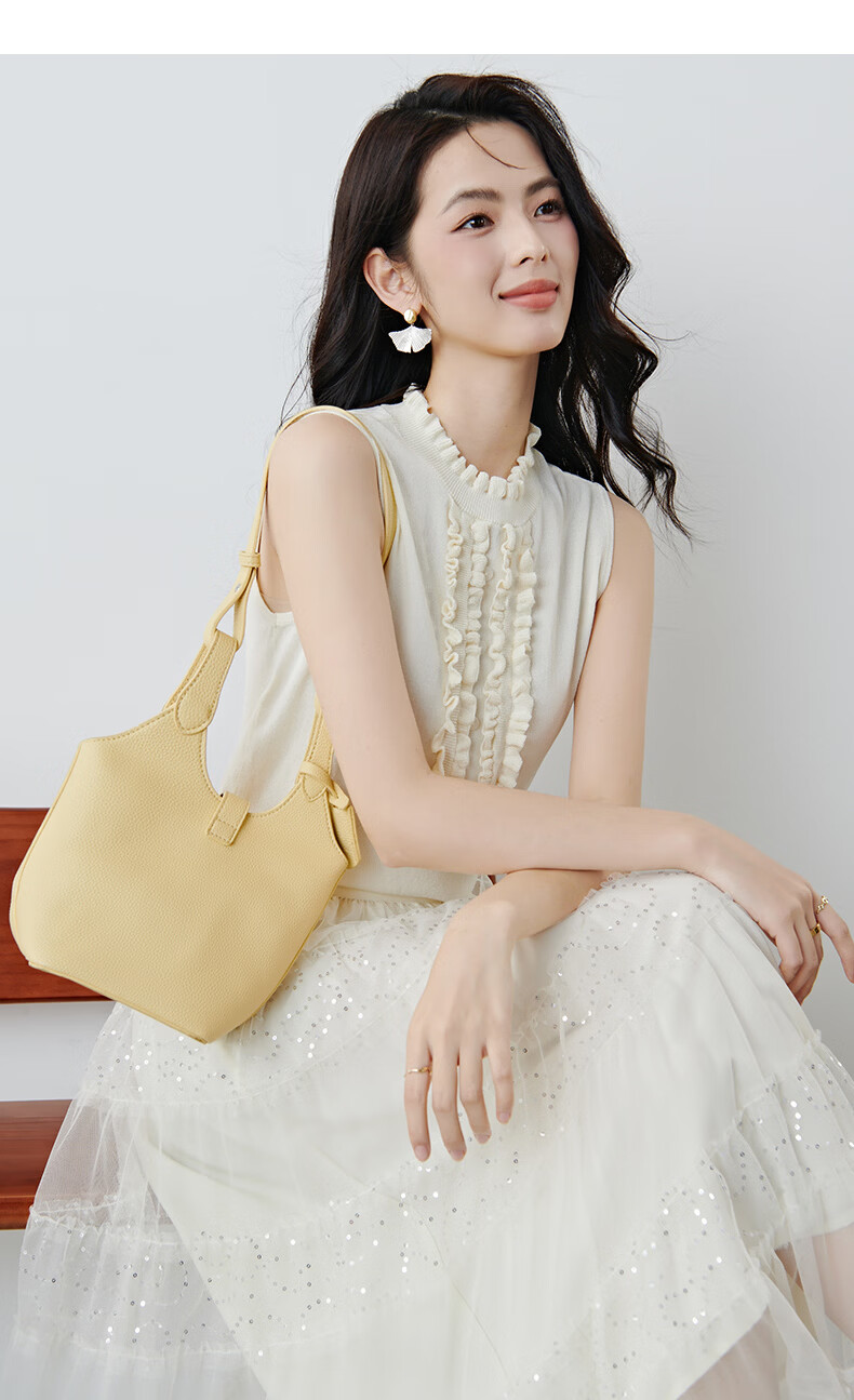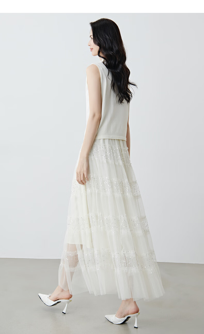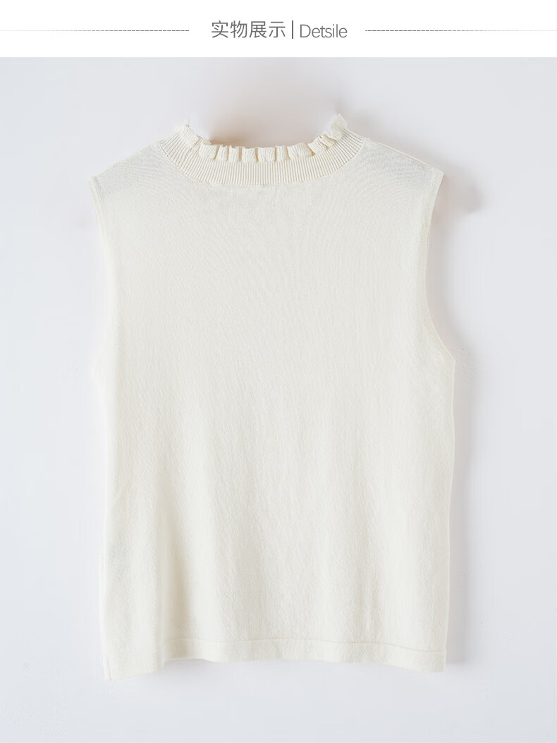 晚白2026年春款时尚温柔米杏色立体花边领叠穿神器舒适弹力针织背心女 米杏色 M