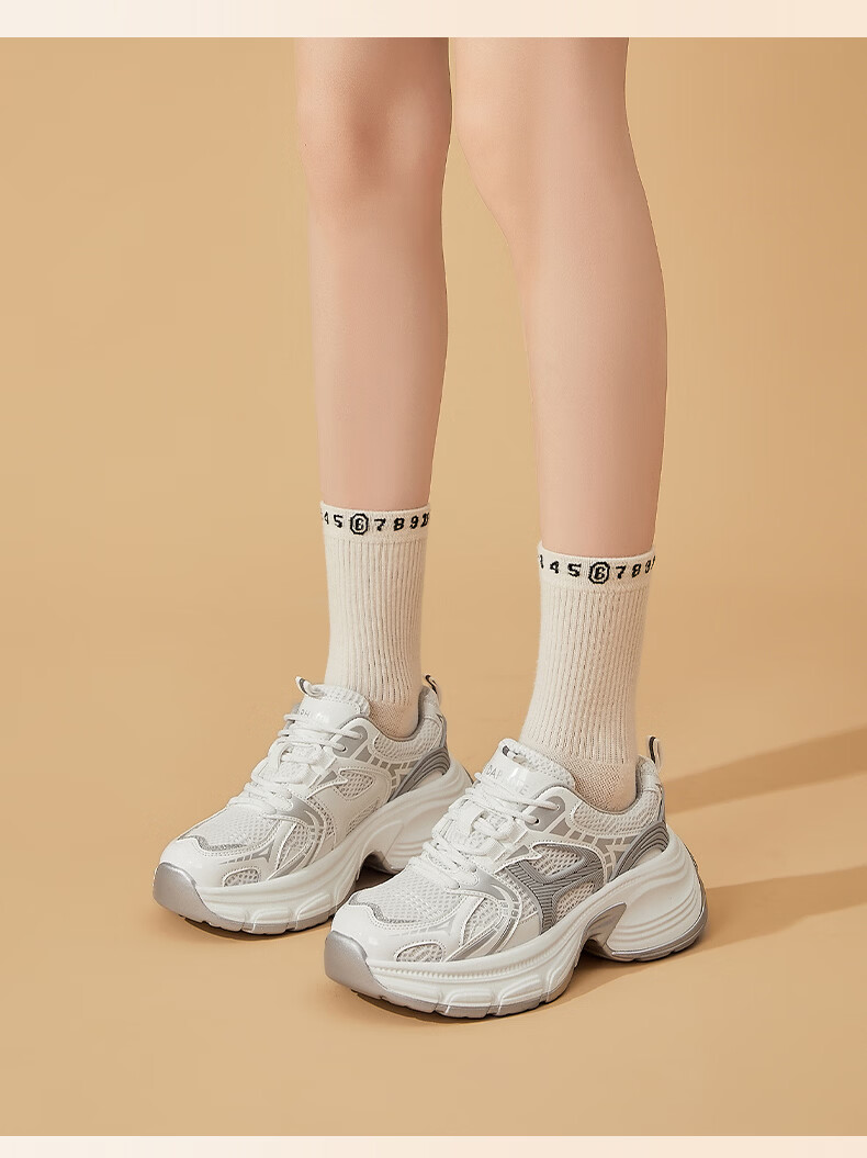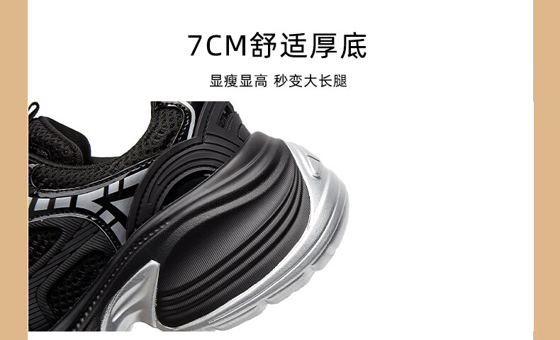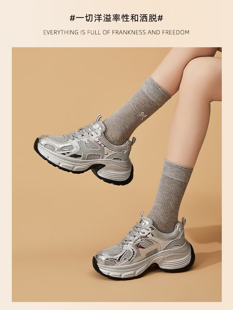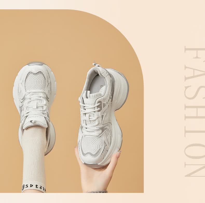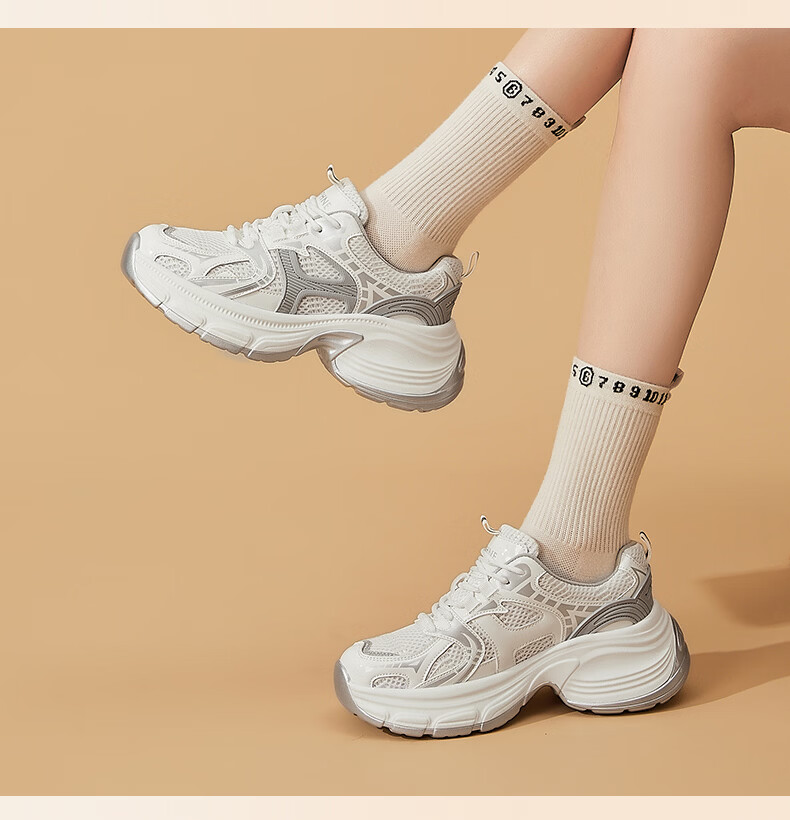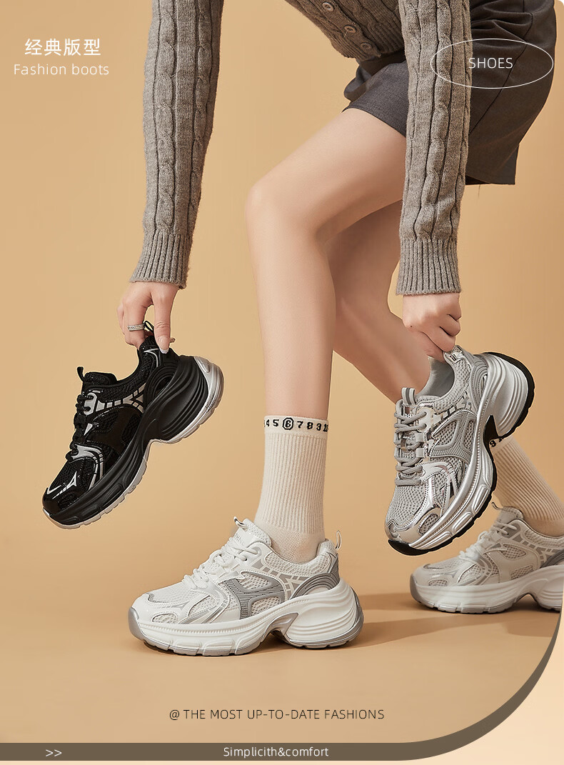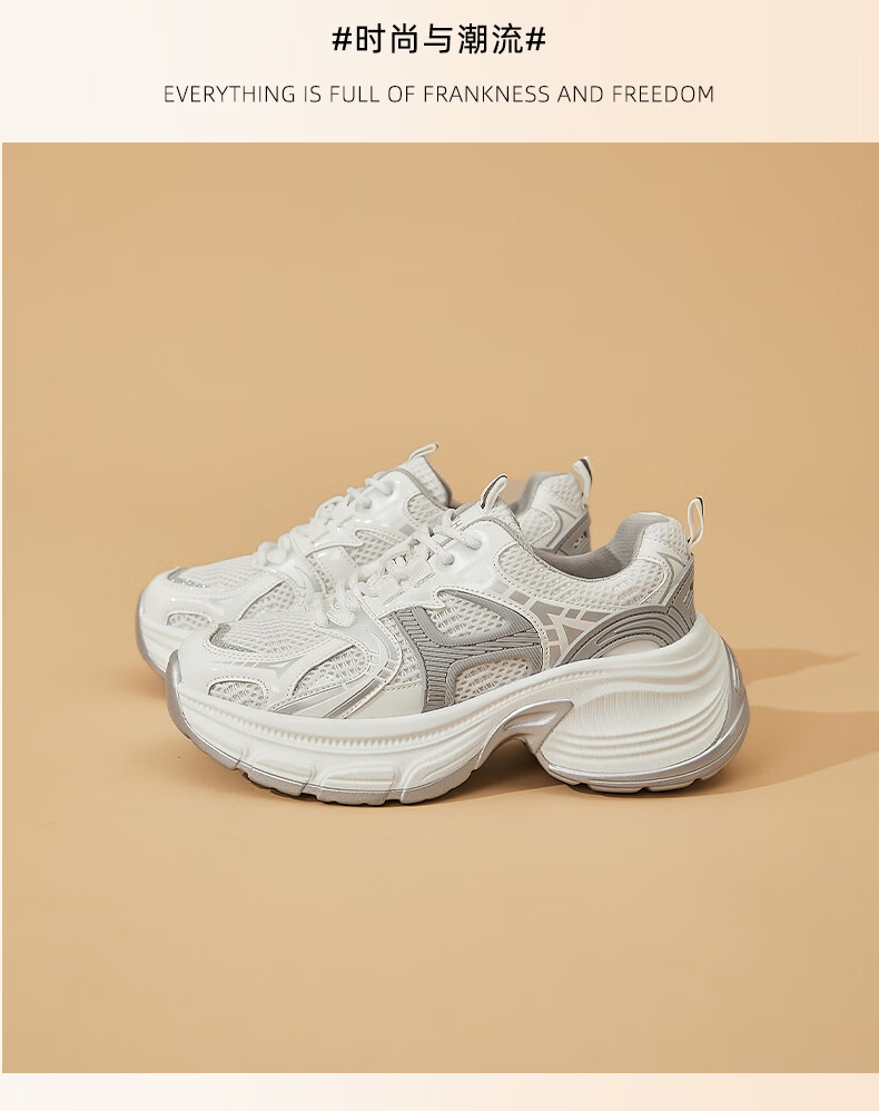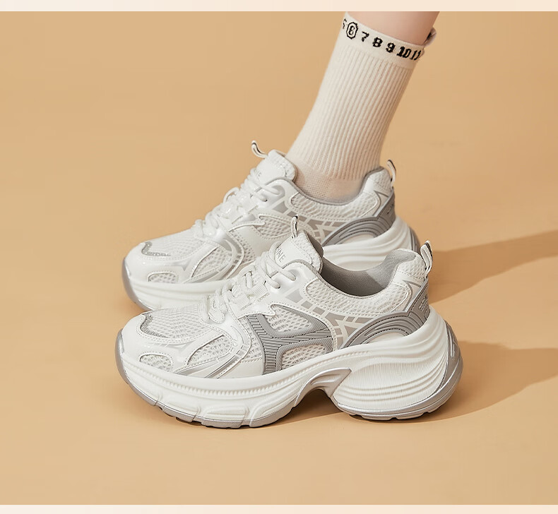 达芙妮厚底透气银色老爹鞋女2026新款春季复古百搭休闲网面跑步运动鞋 白灰色 40
