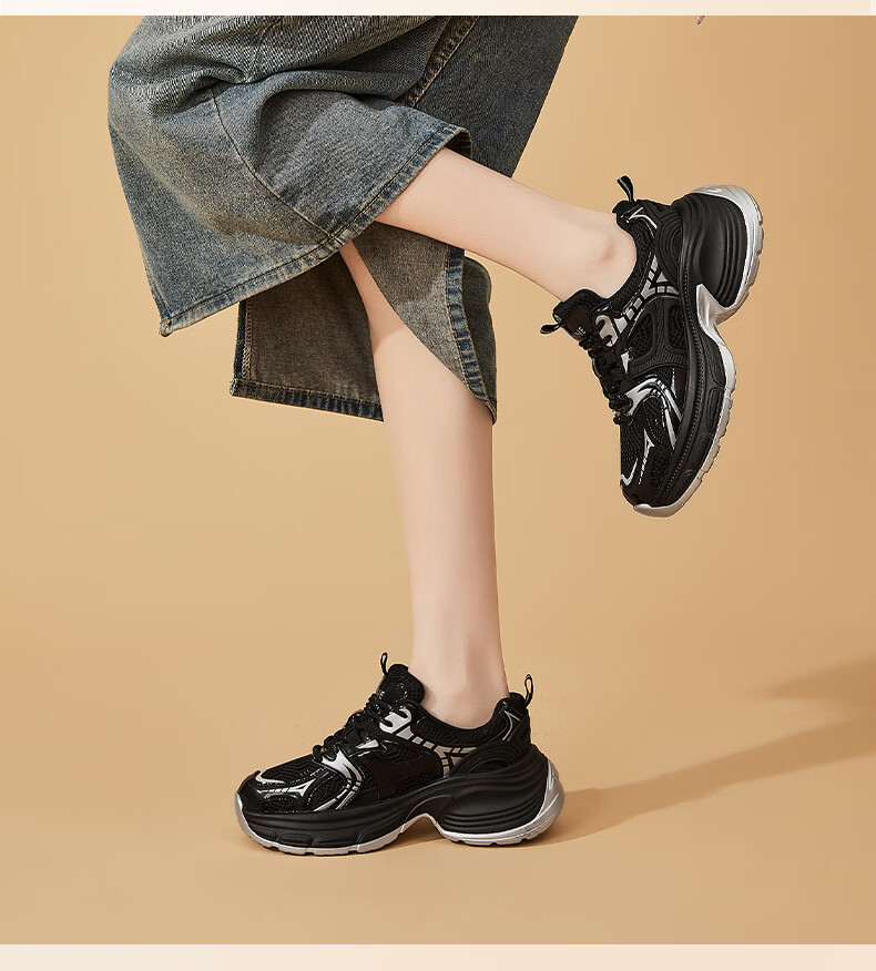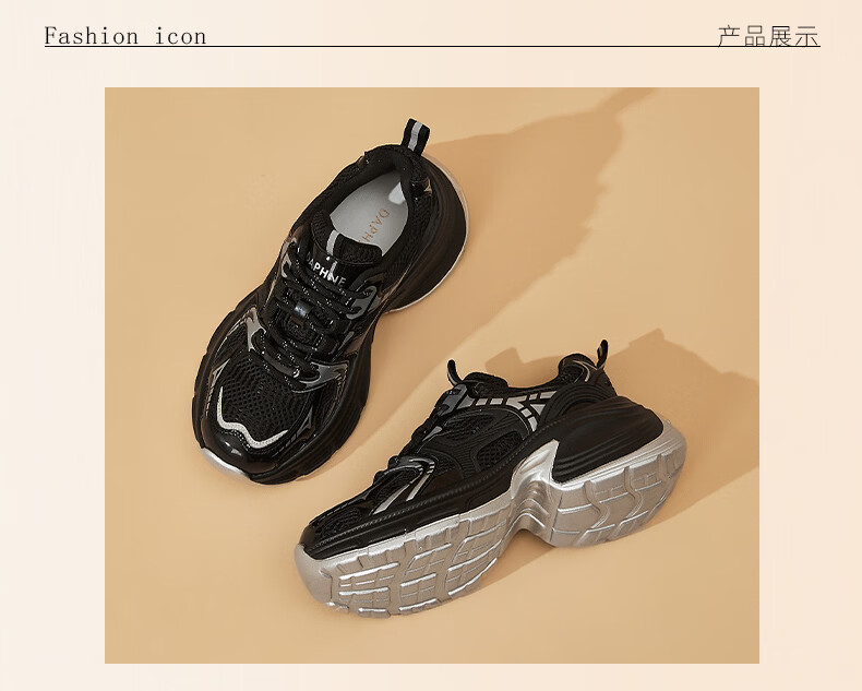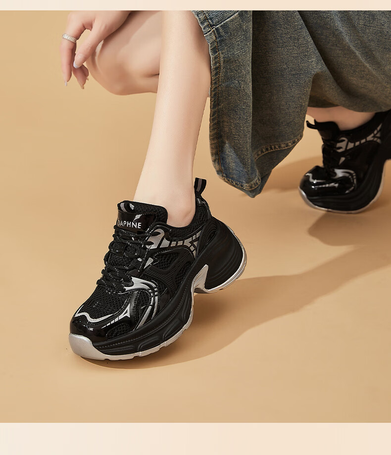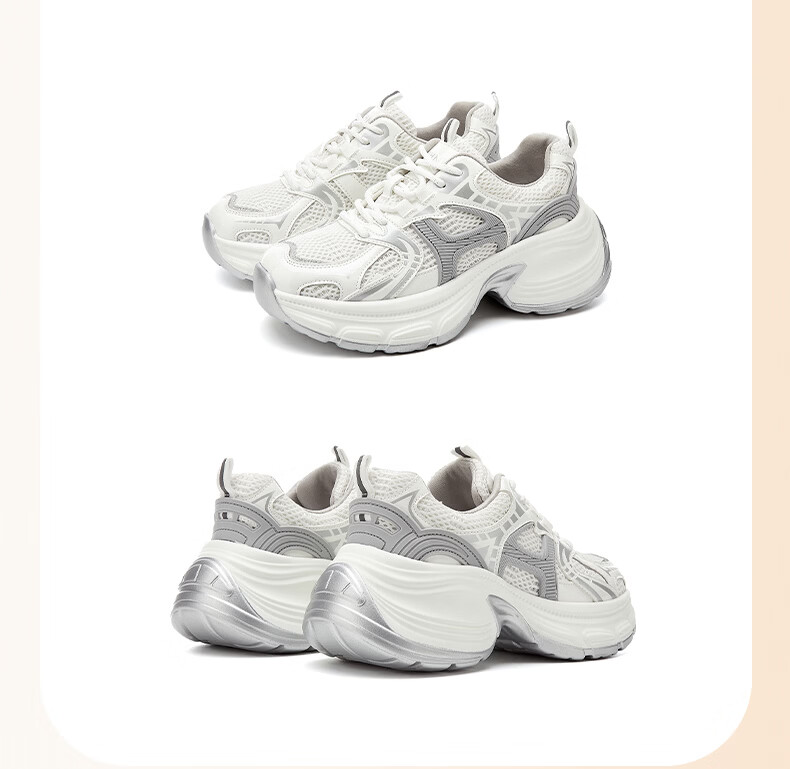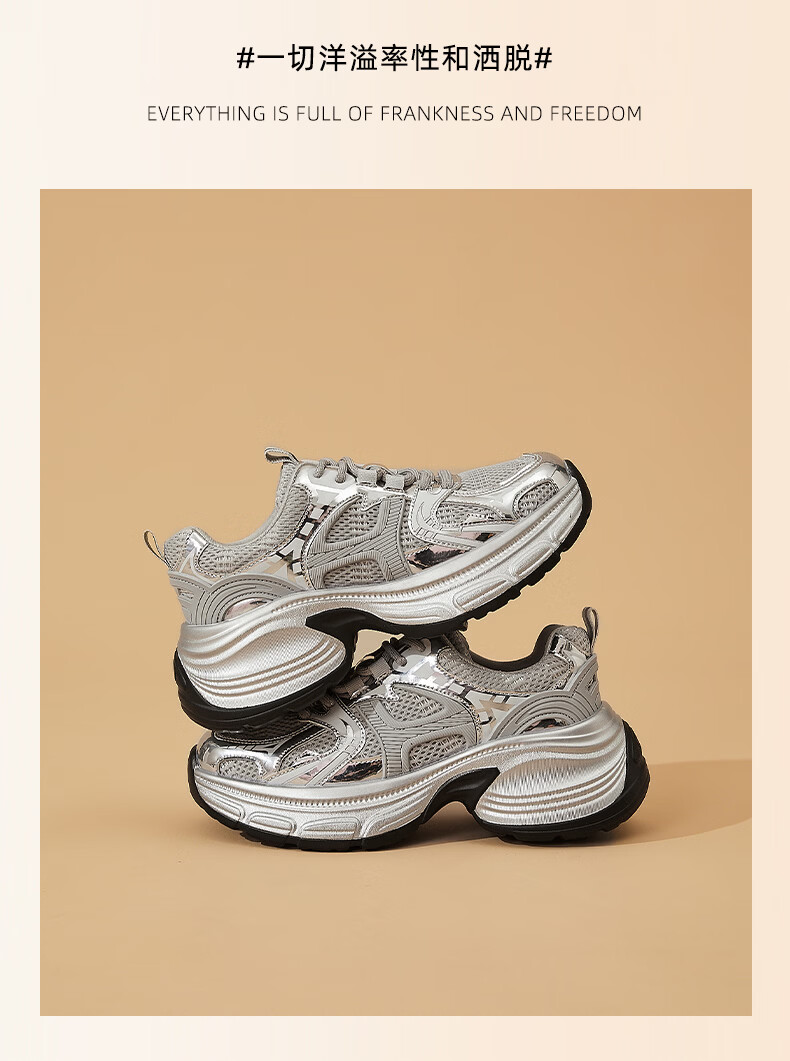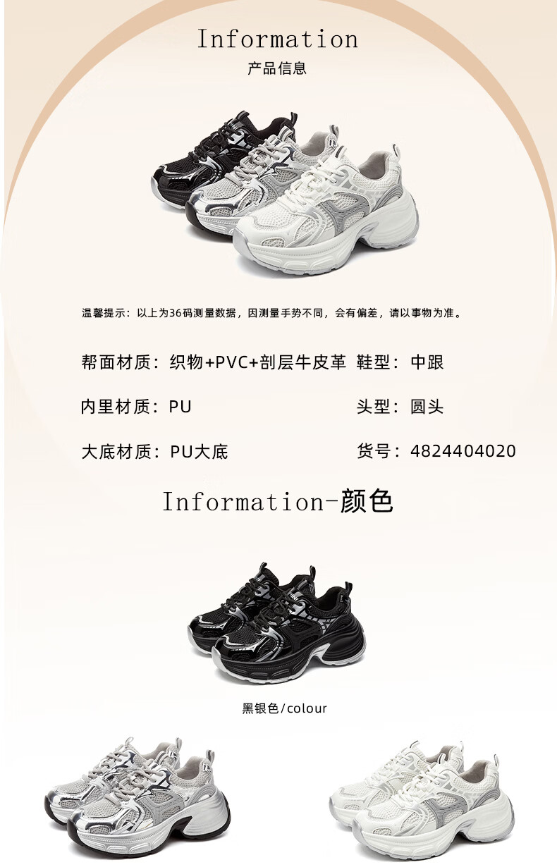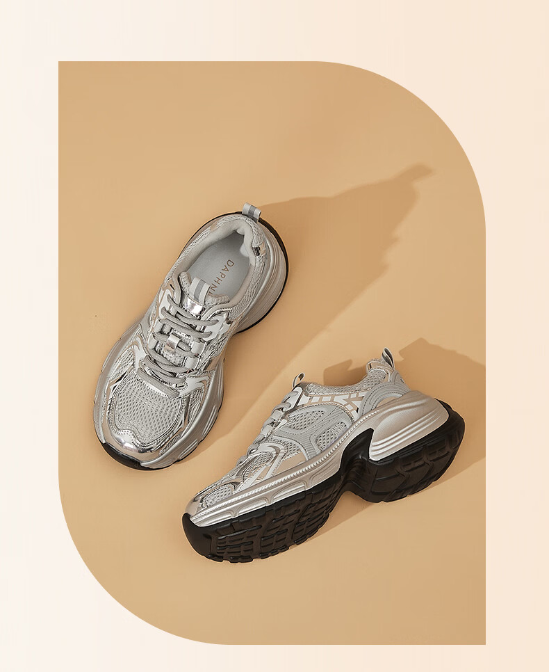 达芙妮厚底透气银色老爹鞋女2026新款春季复古百搭休闲网面跑步运动鞋 白灰色 40