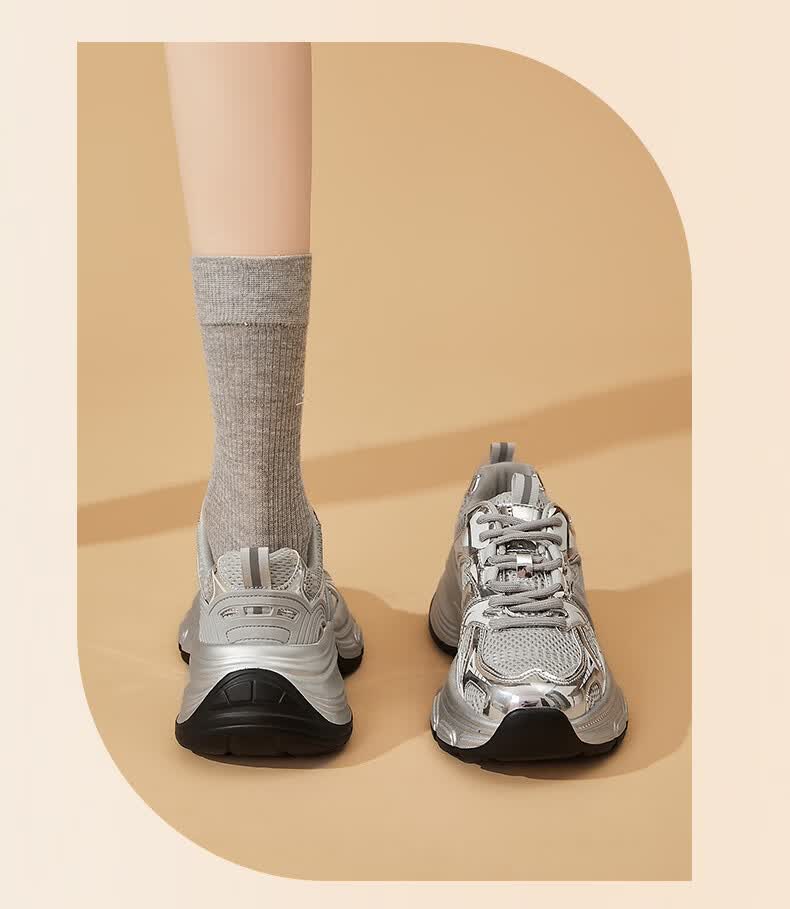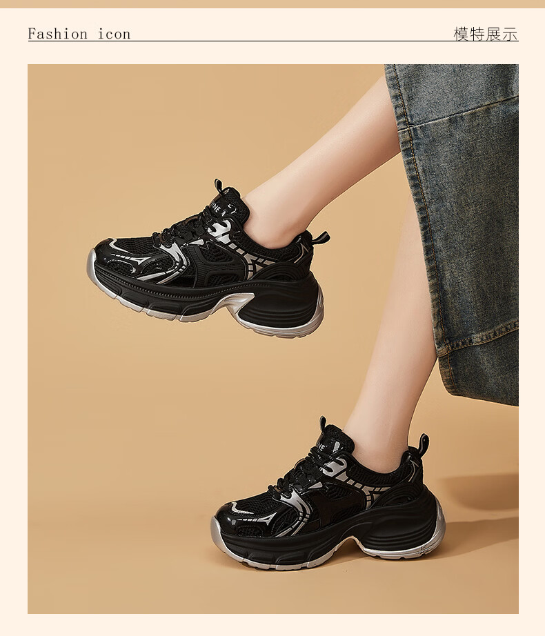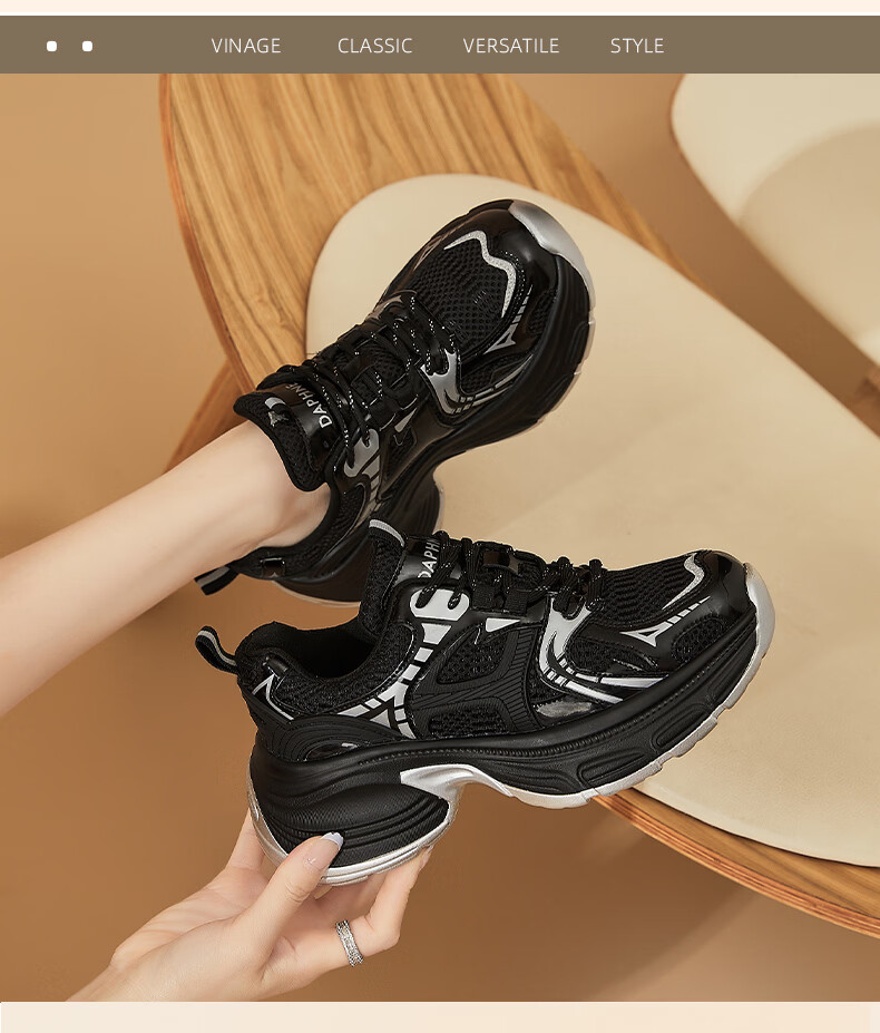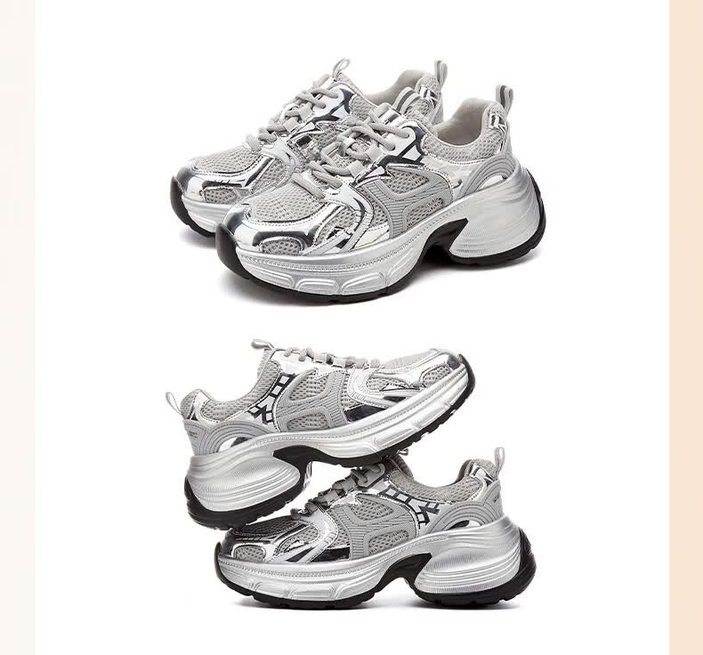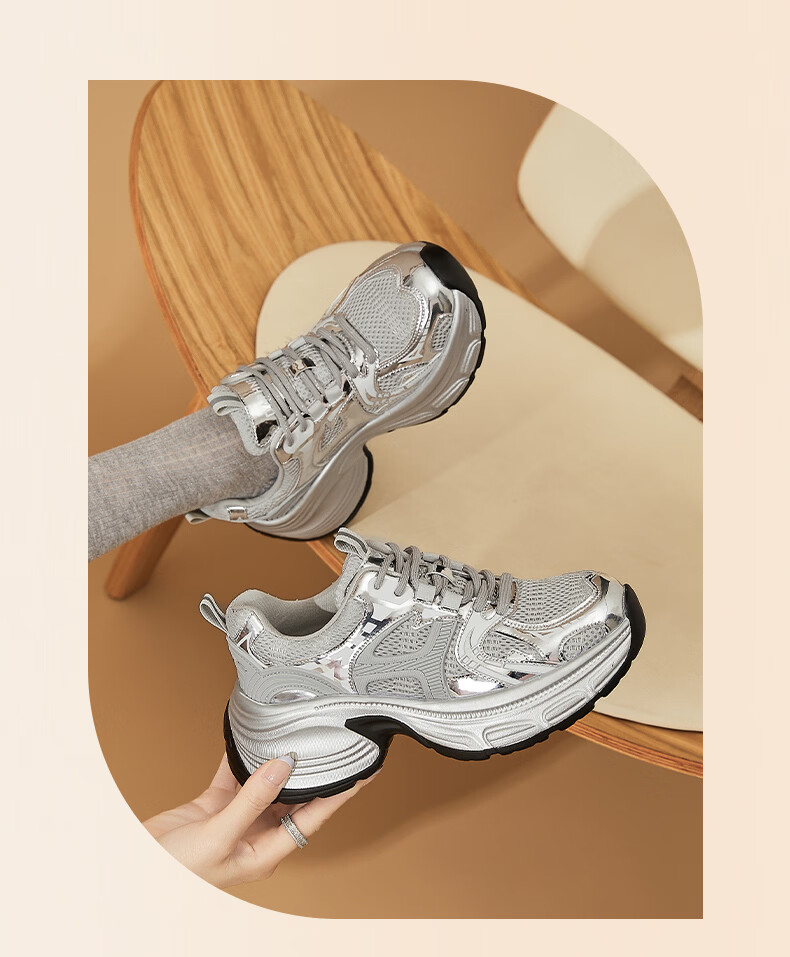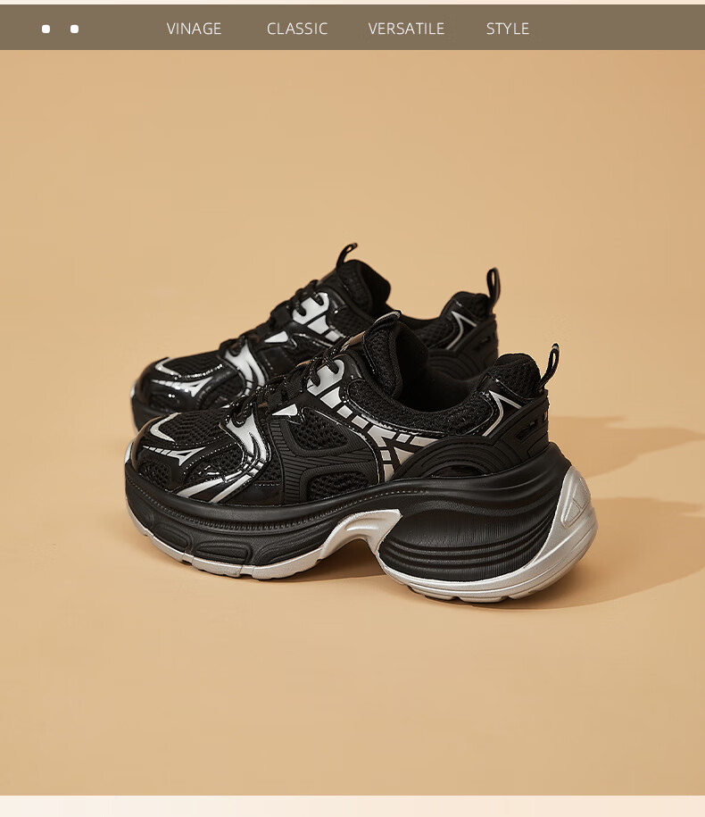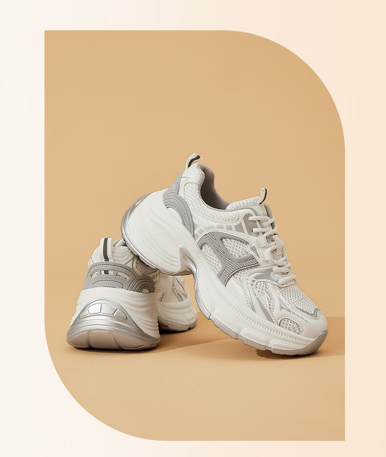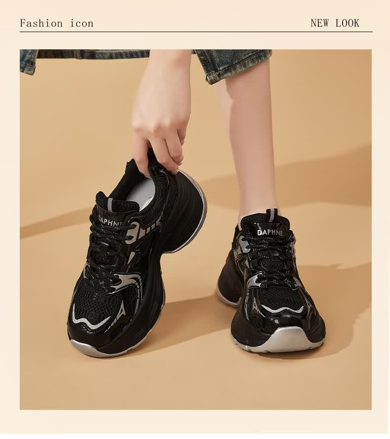 达芙妮厚底透气银色老爹鞋女2026新款春季复古百搭休闲网面跑步运动鞋 白灰色 40
