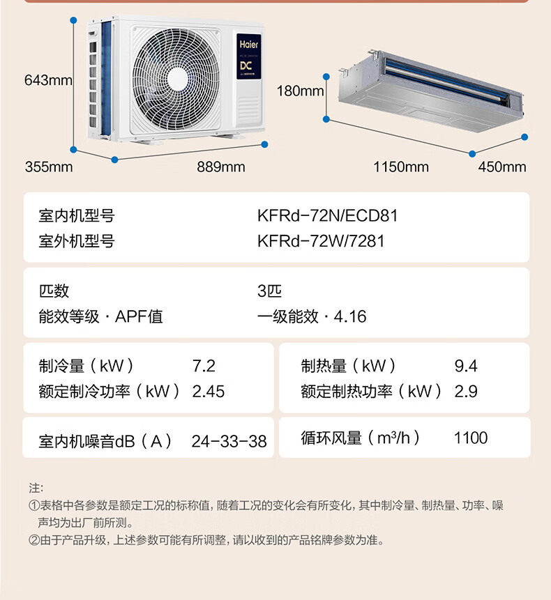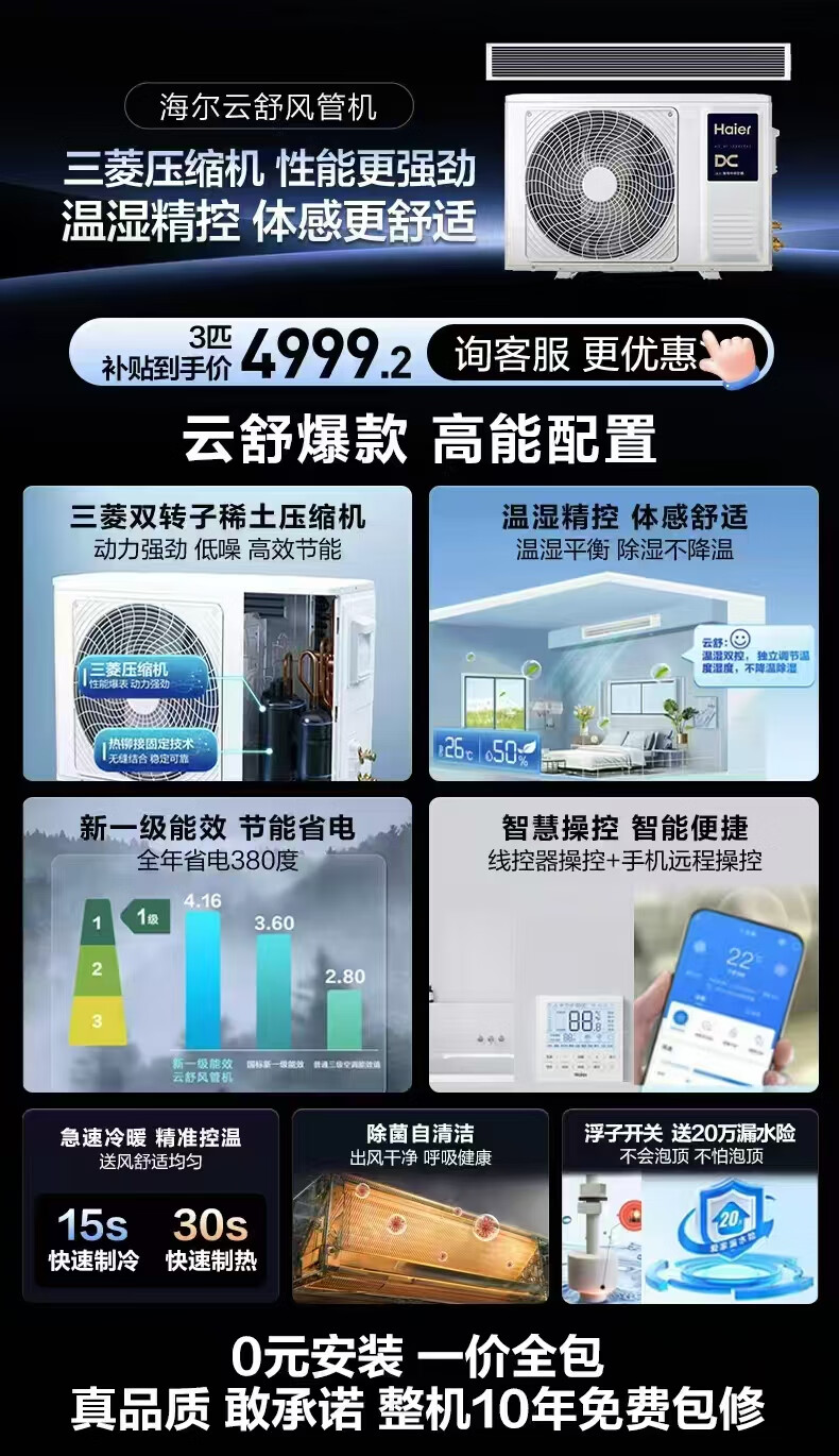 海尔中央空调云舒风管机一拖一客厅 3匹一级能效 纯铜管 云璟pro升级款 KFRd-72NW/72ECD81 国家补贴