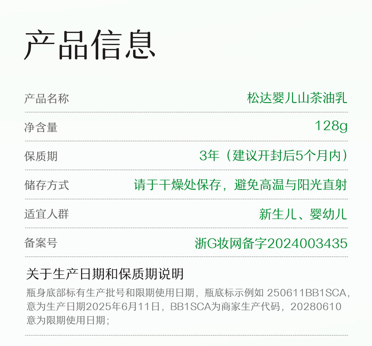 松达婴儿身体乳宝宝护肤山茶油儿童身体润肤乳婴幼儿滋润乳128g