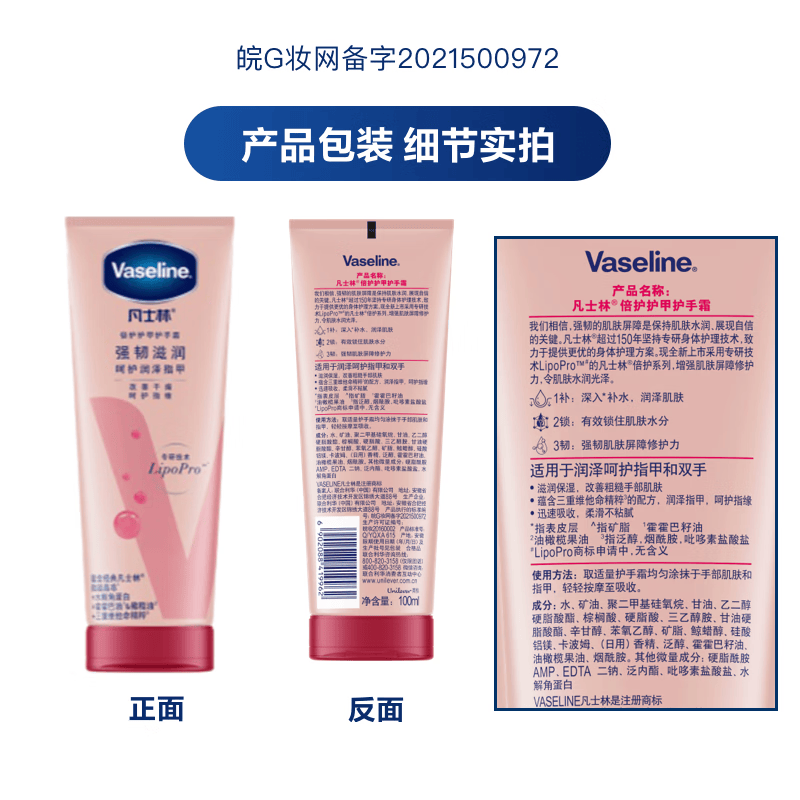 凡士林【口碑第一】护手霜100ml保湿滋润护甲清爽修护便携防干裂倒刺