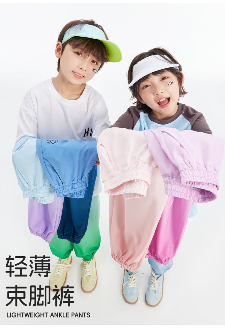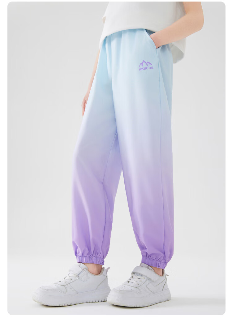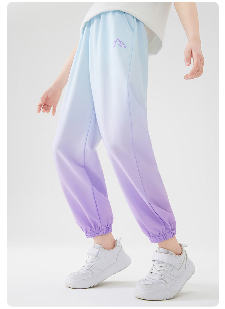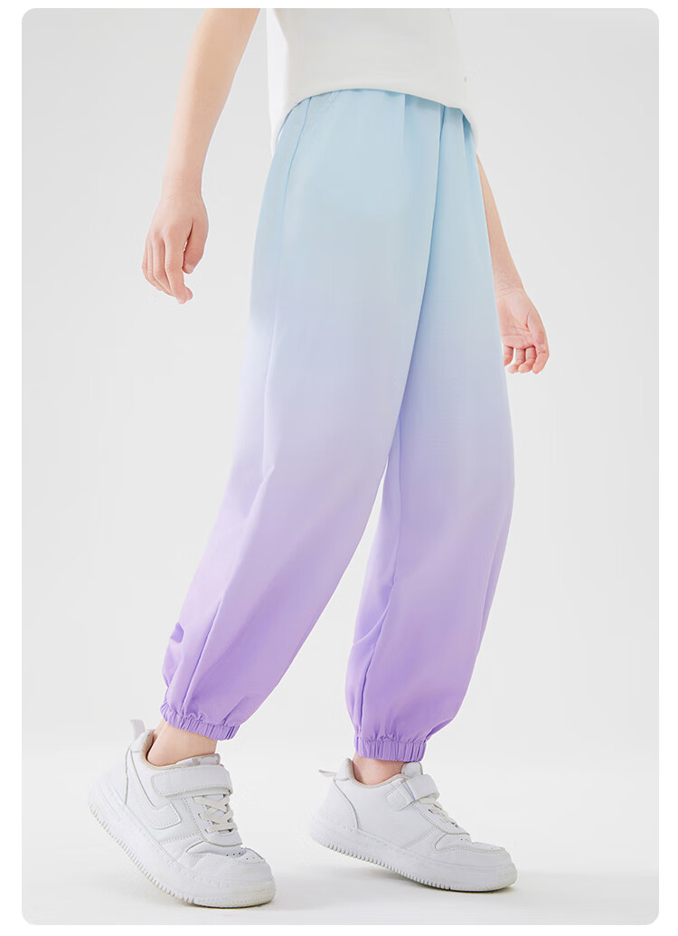 雪中飞儿童裤子春夏薄款运动防蚊裤男女童时尚渐变中大童束脚裤 蓝紫迷恋 130