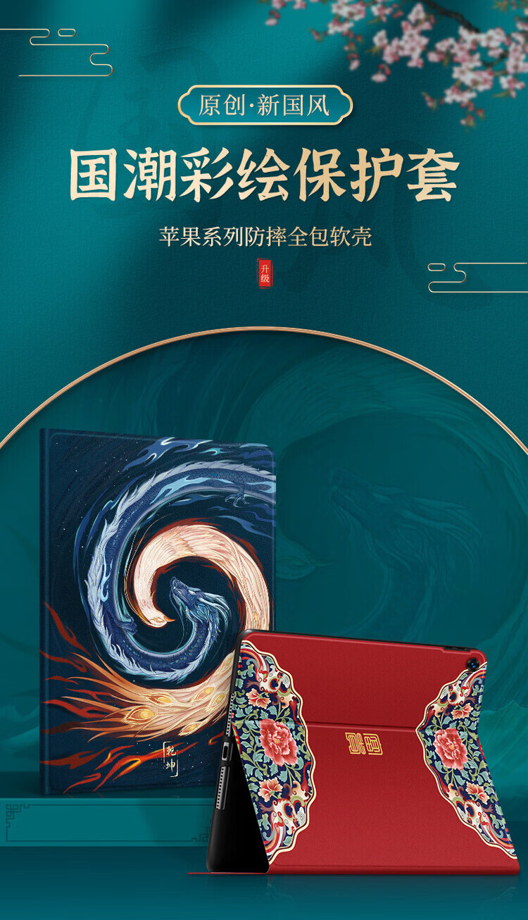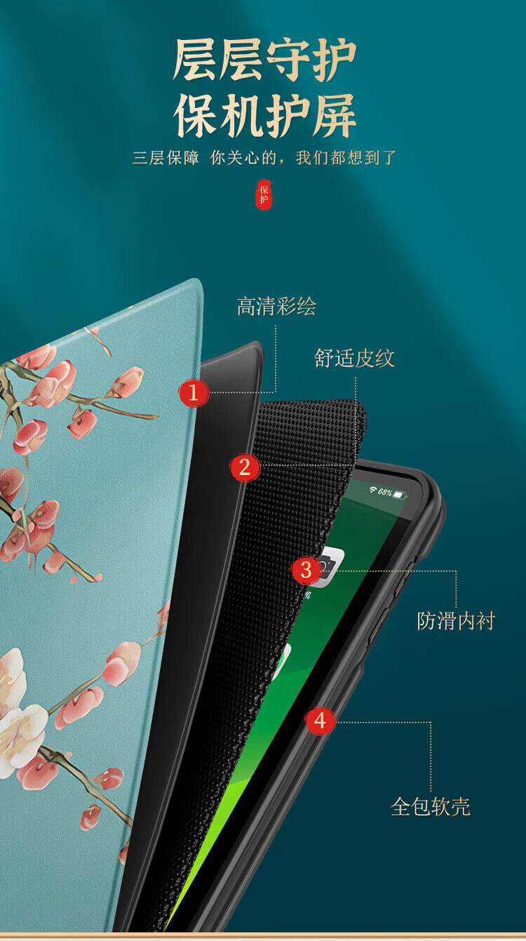 适用ipad保护套air2平板ipad9保护壳ipad11防摔air7硅胶9.7英寸mini7第九八七8代345苹果2018软壳 (书本款)【青花烟雨】+防爆钢化膜 iPad Pro 2018版全面屏