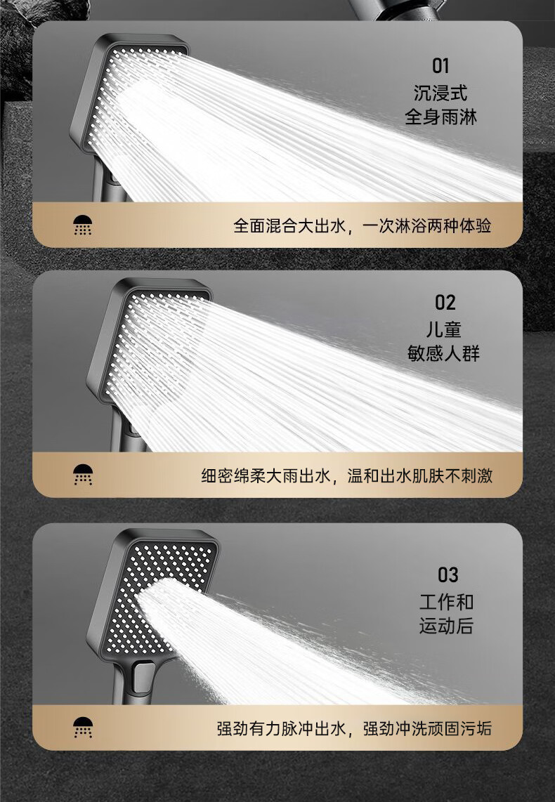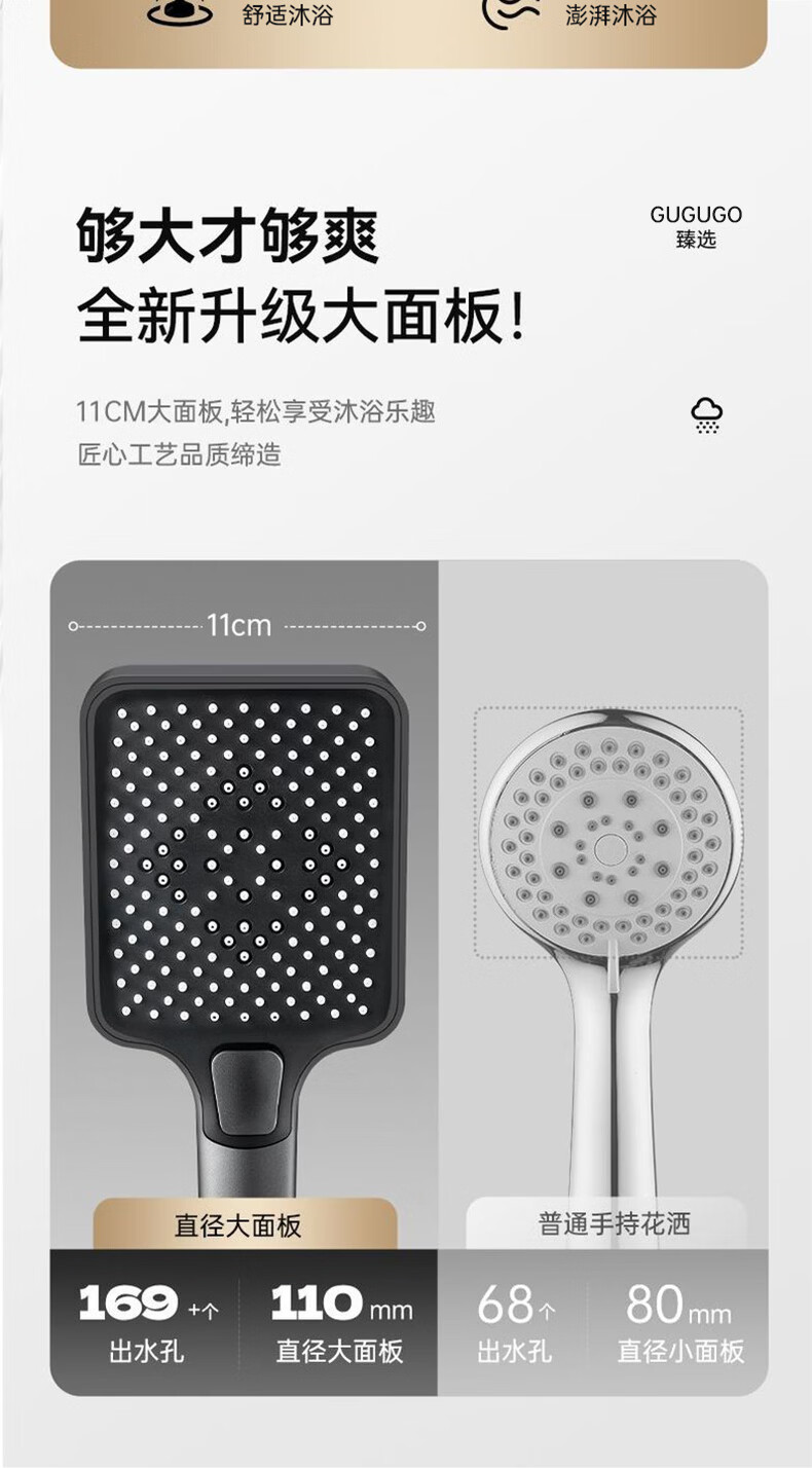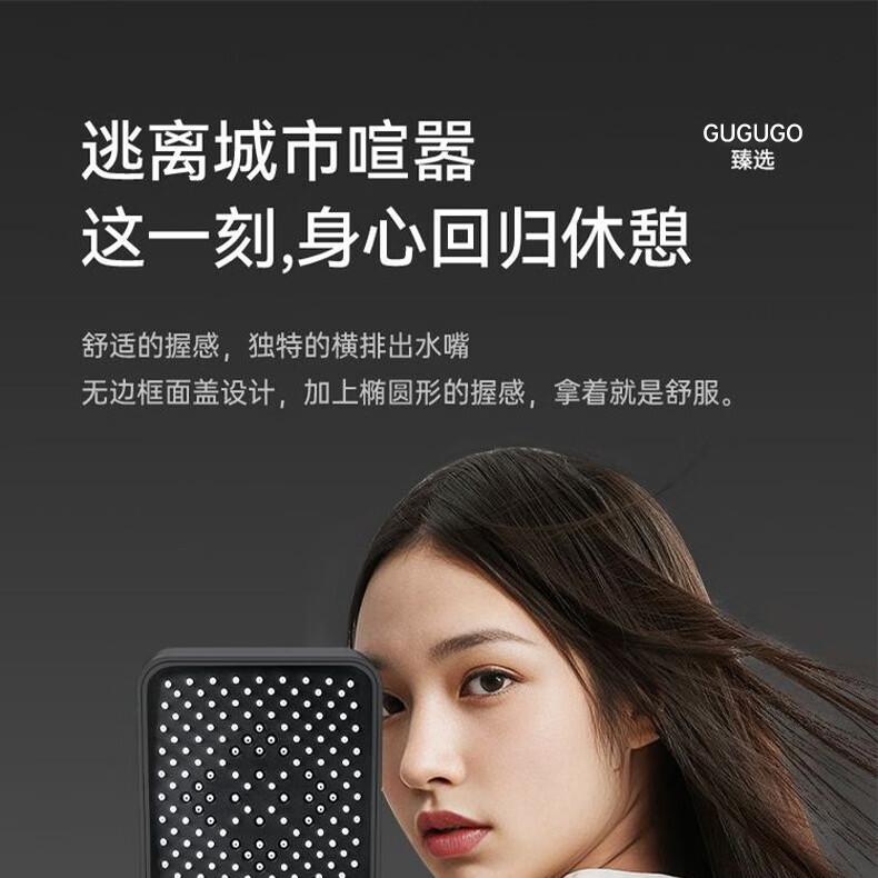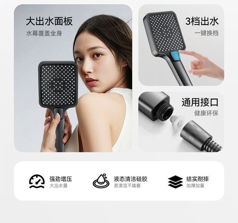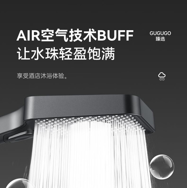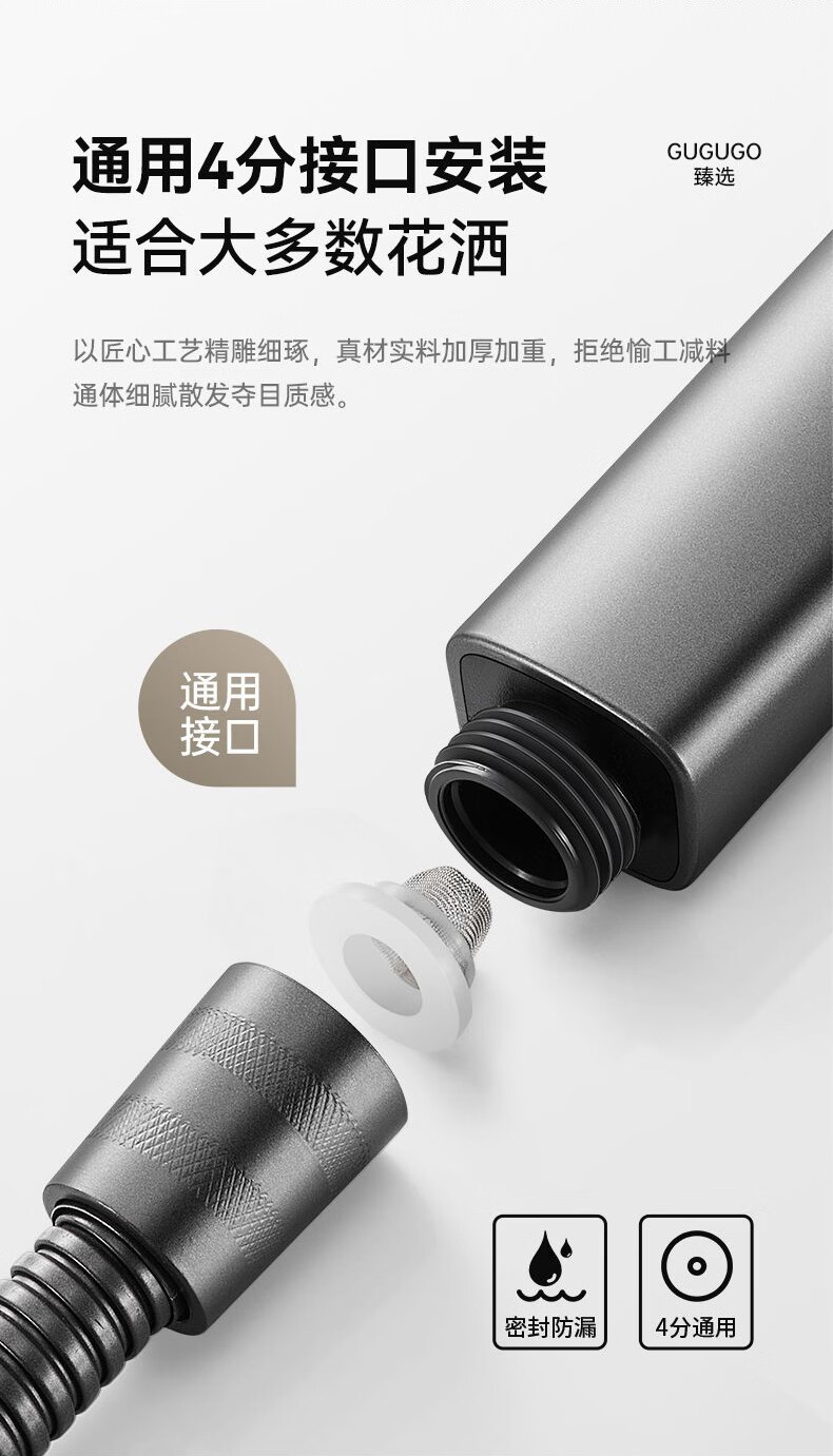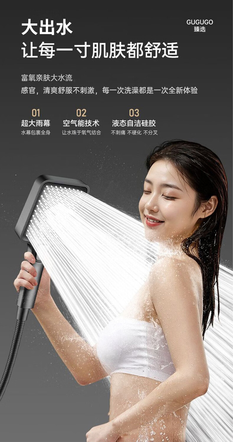 GuGuGo【德国】淋浴增压花洒喷头带软管一套浴室多功能手持花洒头莲蓬头 【枪灰】增压三档方形花洒 大面板漩涡增压丨享受极致淋浴体验