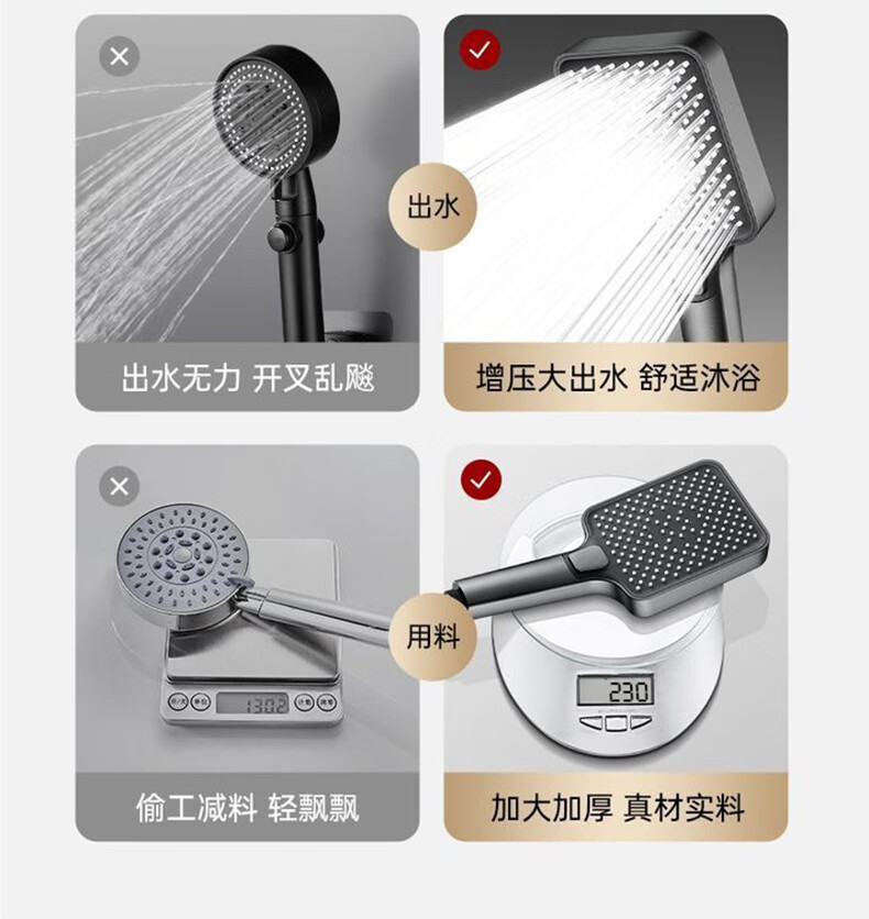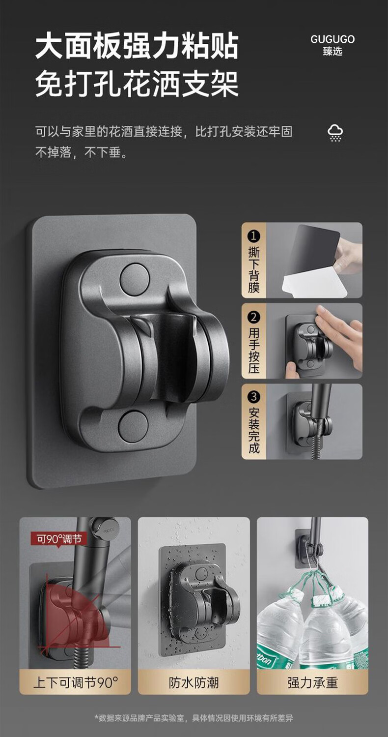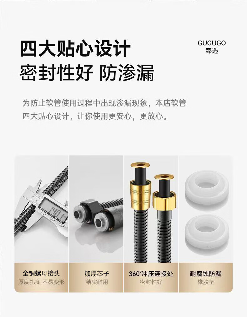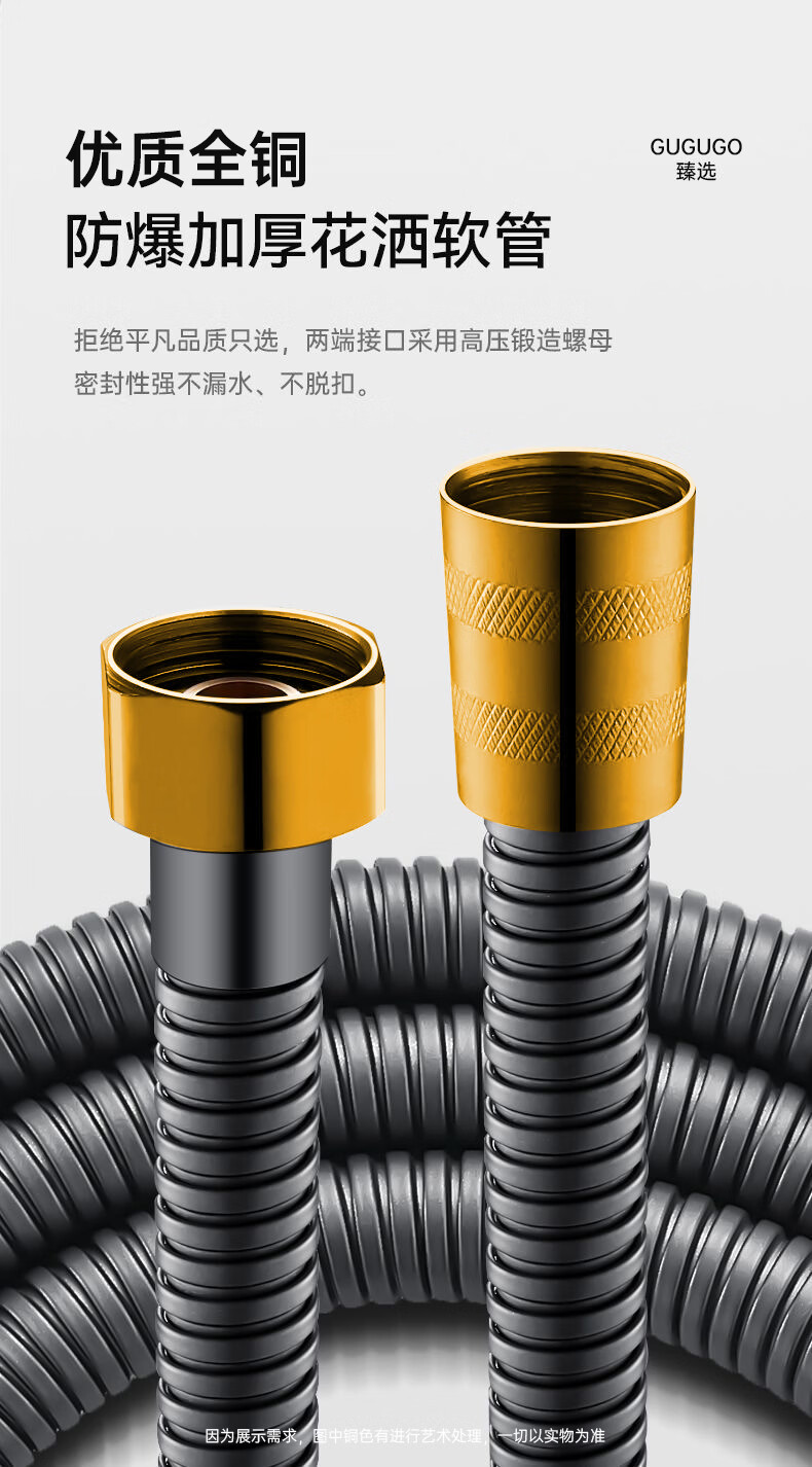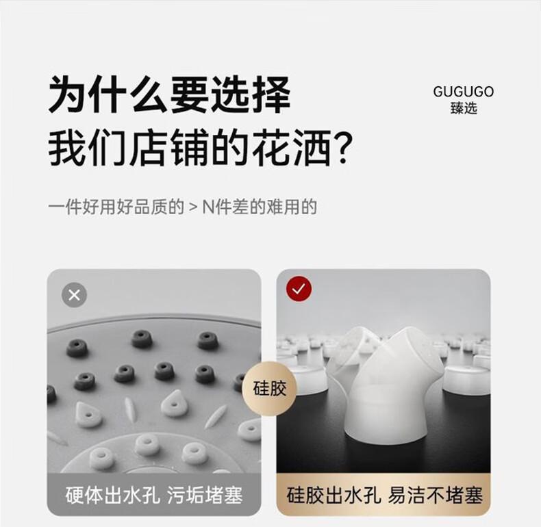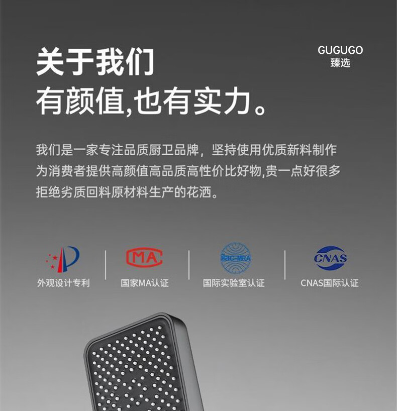 GuGuGo【德国】淋浴增压花洒喷头带软管一套浴室多功能手持花洒头莲蓬头 【枪灰】增压三档方形花洒 大面板漩涡增压丨享受极致淋浴体验