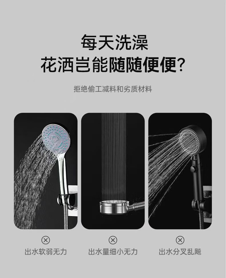 CUNKOY【德国】淋浴增压花洒喷头带软管一套浴室洗澡加压莲蓬花洒头套装 五档增压花洒+1.5米软管【雅黑】 强劲增压丨密集大出水