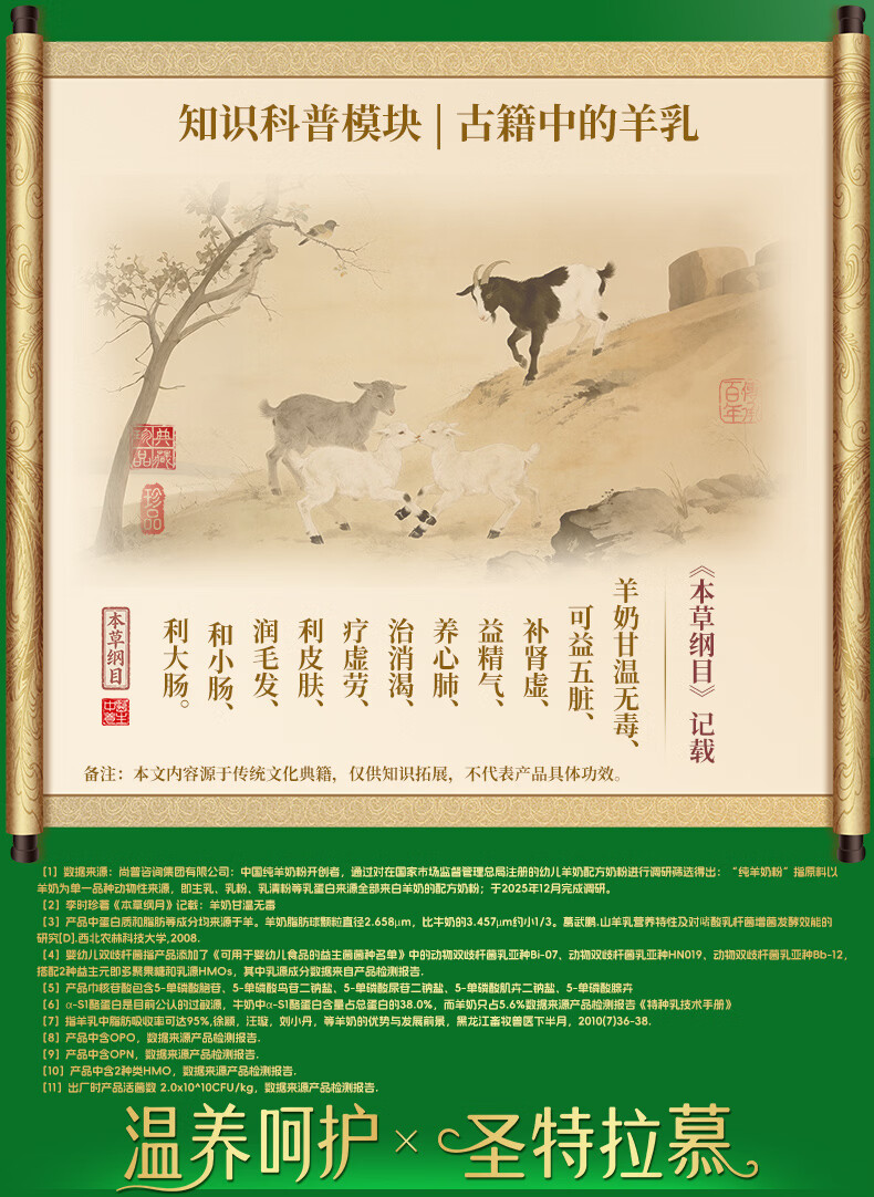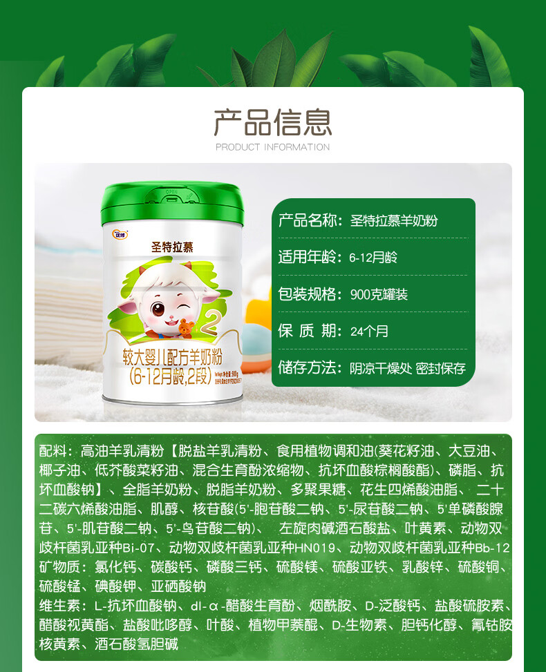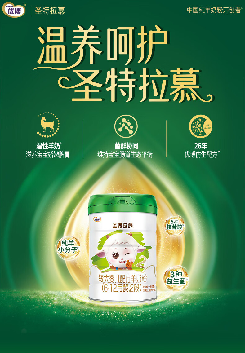 圣元优博圣特拉慕【天然水解】较大婴幼儿配方羊奶粉2段900g 6-12个月 新客0元试喝