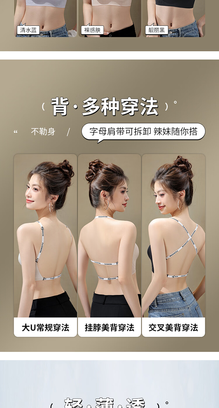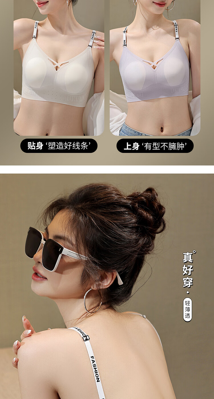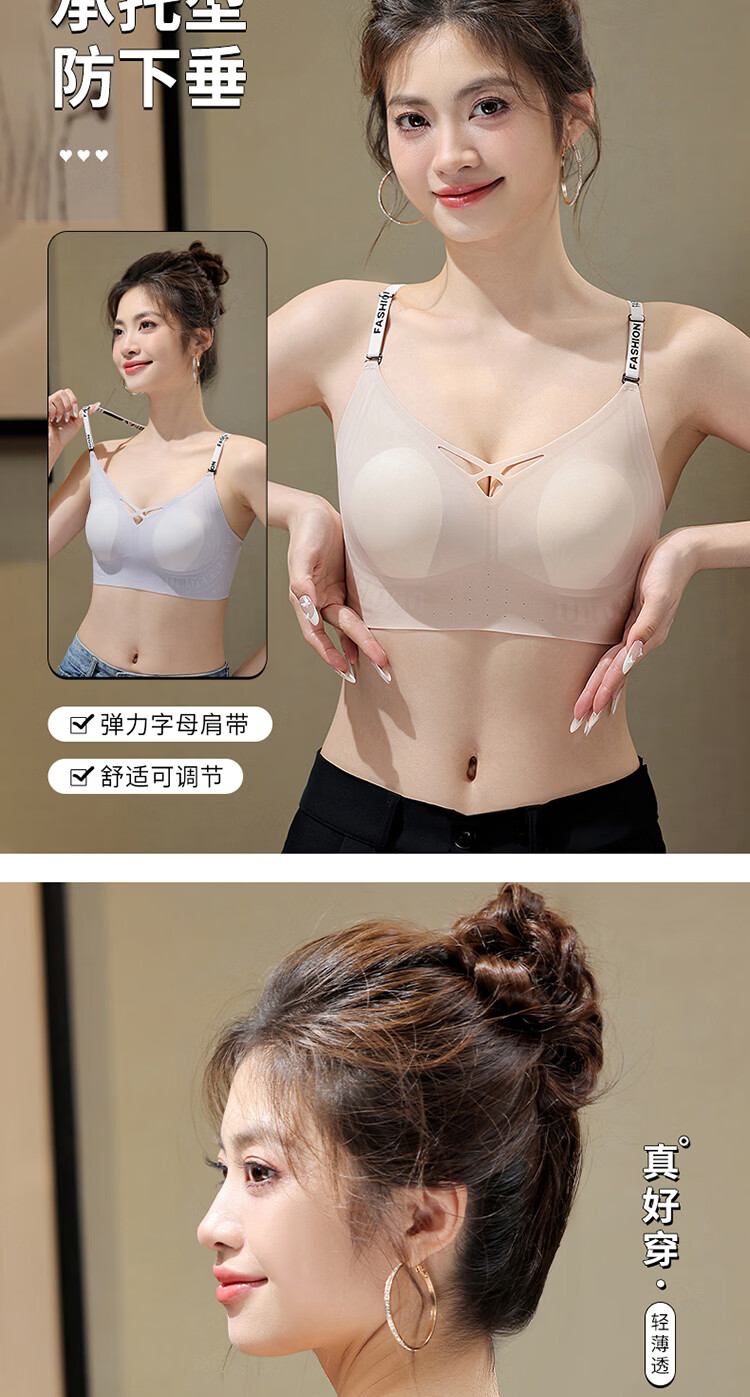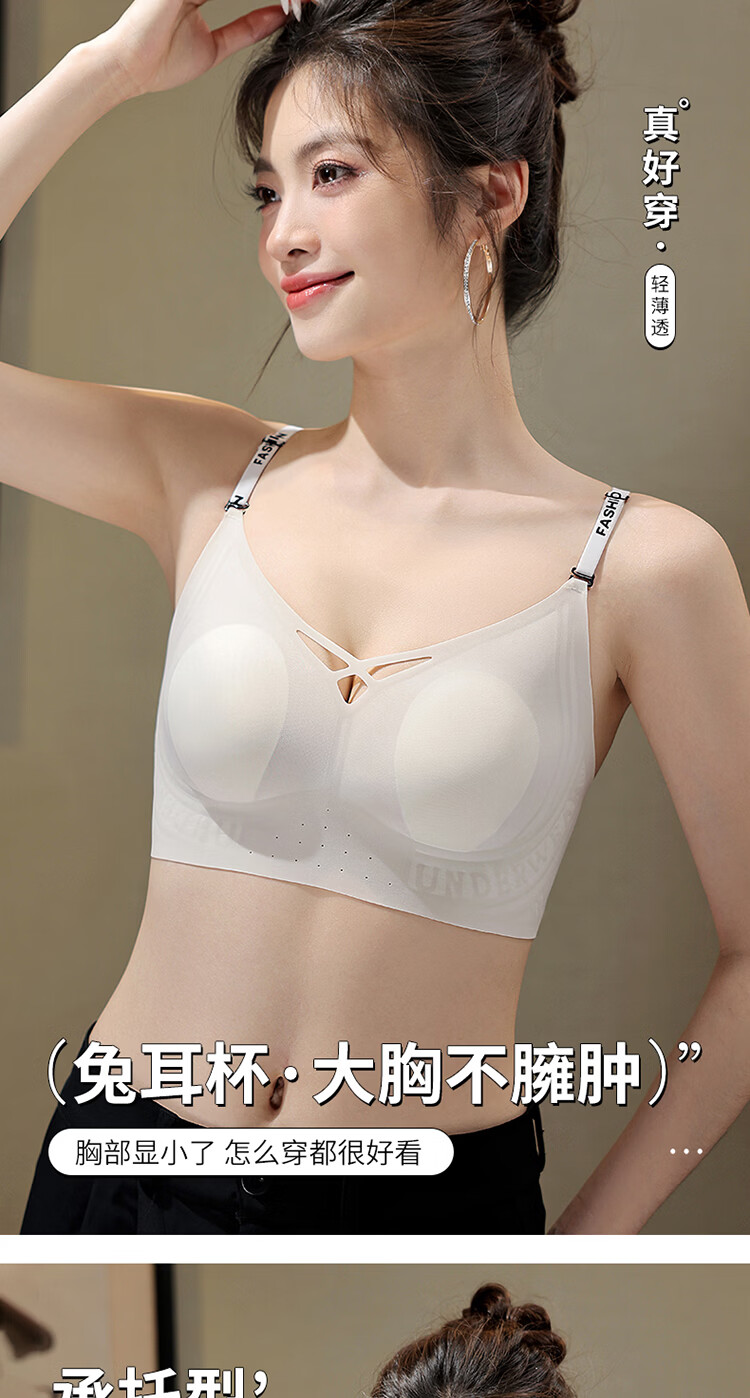 草本初色文胸罩内衣无痕隐形内衣女肩带大胸显小侧收防下垂聚拢文胸罩 裸感肤 XL 建议体重115-130斤