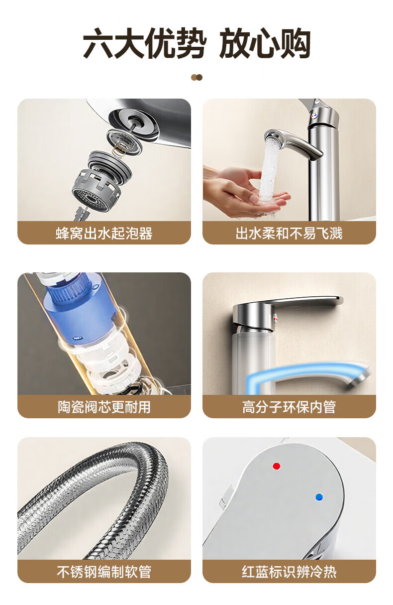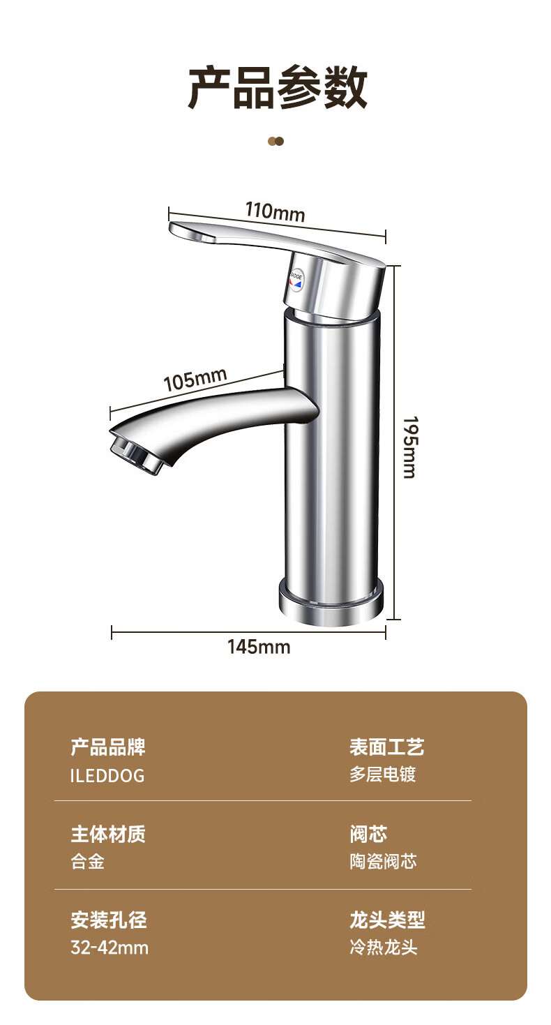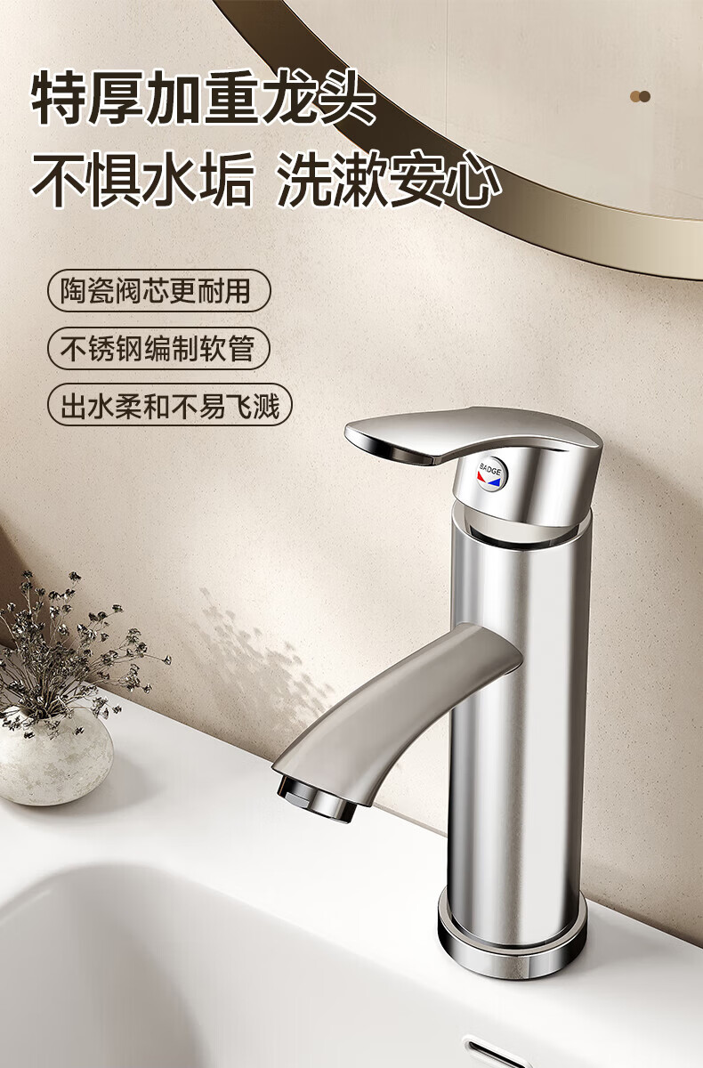 iLeddog【德国】洗手盆水龙头冷热水二合一洗脸盆卫生间面盆洗手池水龙头 【旗舰款】冷热双控面盆龙头 防生锈防漏水丨配80cm原装进水管*2