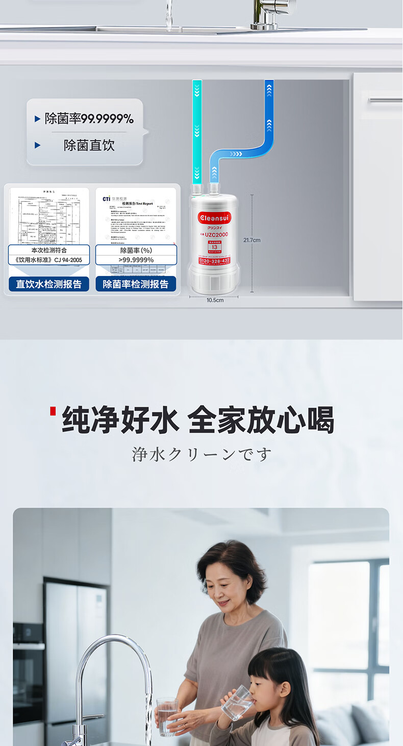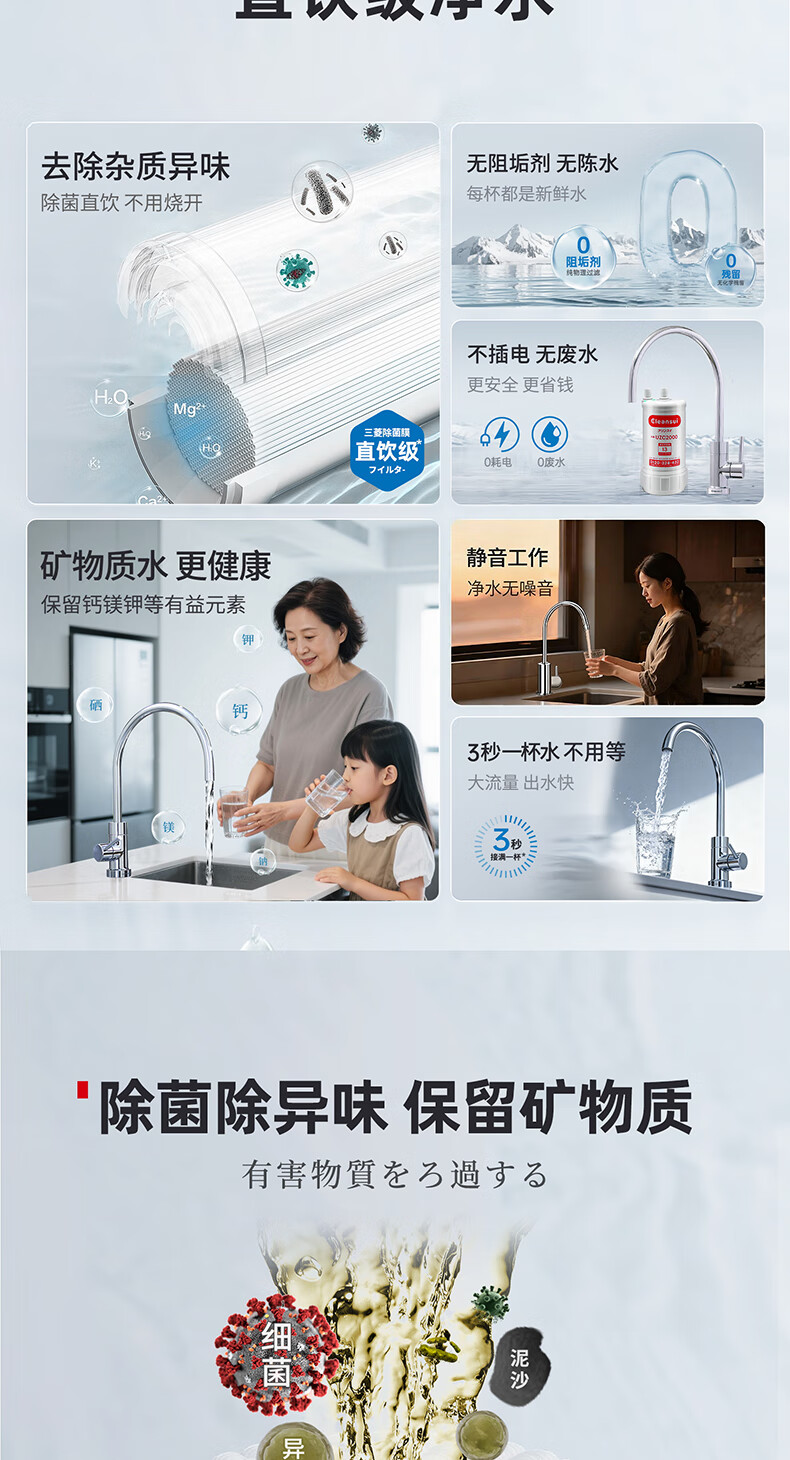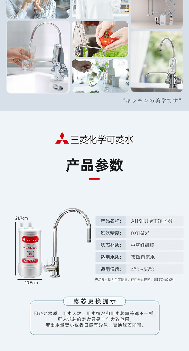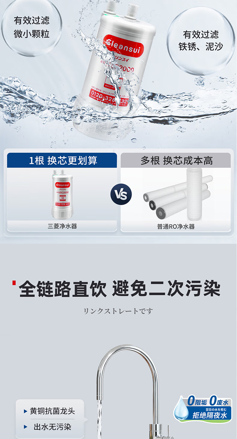 可菱水(日本制)台下型净水器直饮 超滤净饮机保留矿物质水厨房专用简约安全设计A113日本原装进口 新品 【日本制】三菱厨下新款-直饮矿物质水-赠进口滤芯