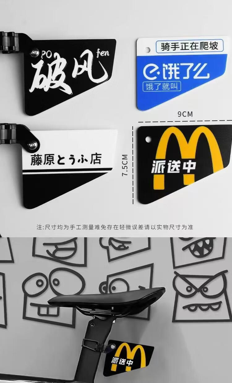 摩托车公路车山地车亚克力号码牌创意个性破风车牌座管装饰牌 注意安全【带支架】