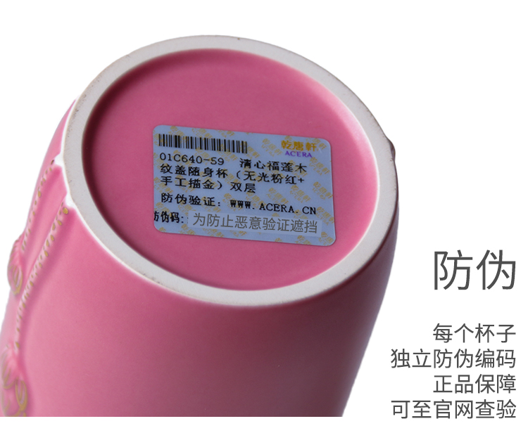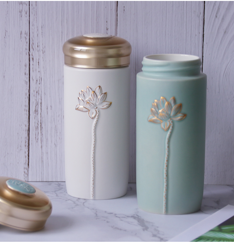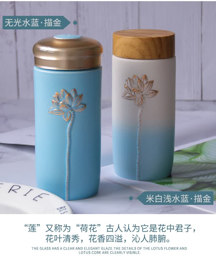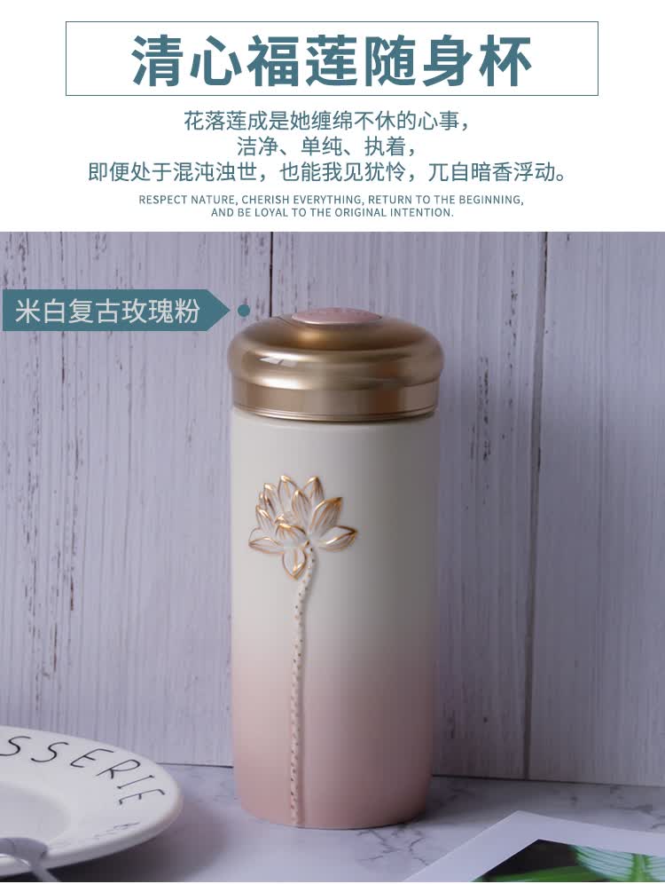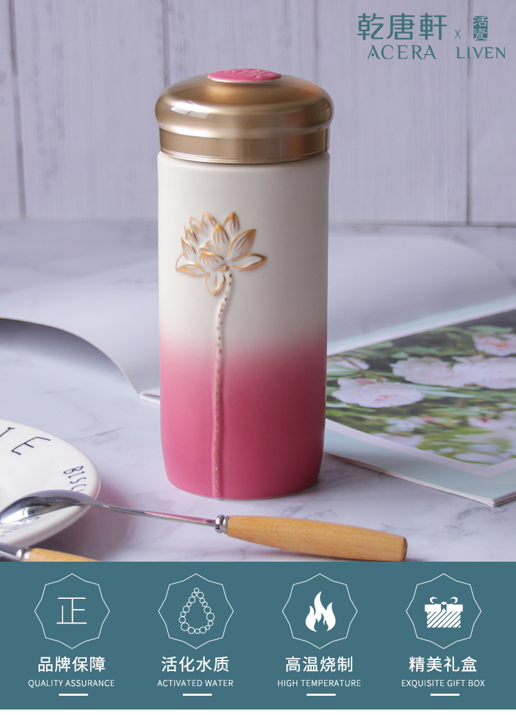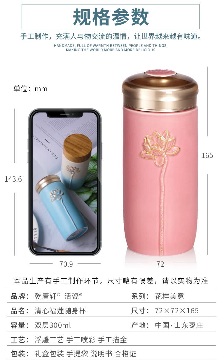 乾唐轩【官方授权】活瓷杯 清心福莲随身杯双层陶瓷荷花水杯送女士正品 刻字专用 备注颜色