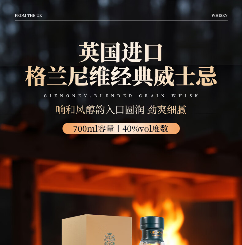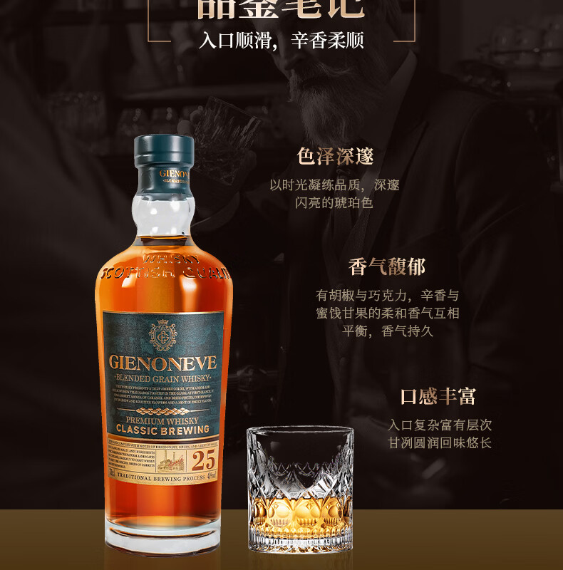 格兰尼维英国进口25威士忌酒调和型威士忌苏格兰威士忌洋酒烈酒40度700ml 【买3送4】格兰尼维25特醇威士忌【送同款1瓶+礼袋】