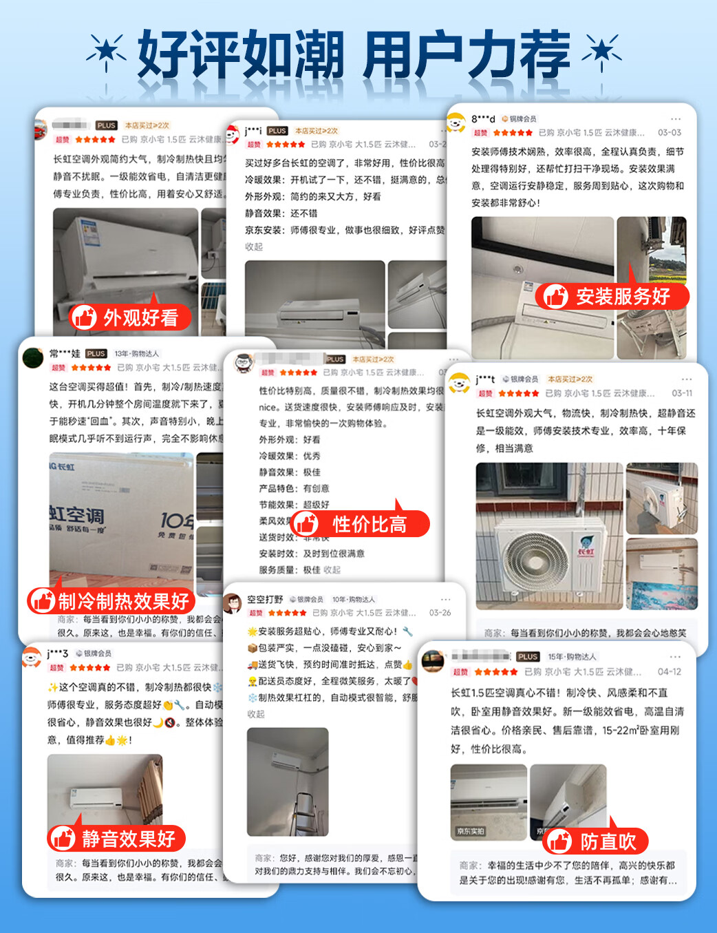 长虹空调 京小宅大1.5匹新一级超省电纯铜管家用变频冷暖卧室挂机国家补贴KFR-35GW/JDC1+R1十年包修