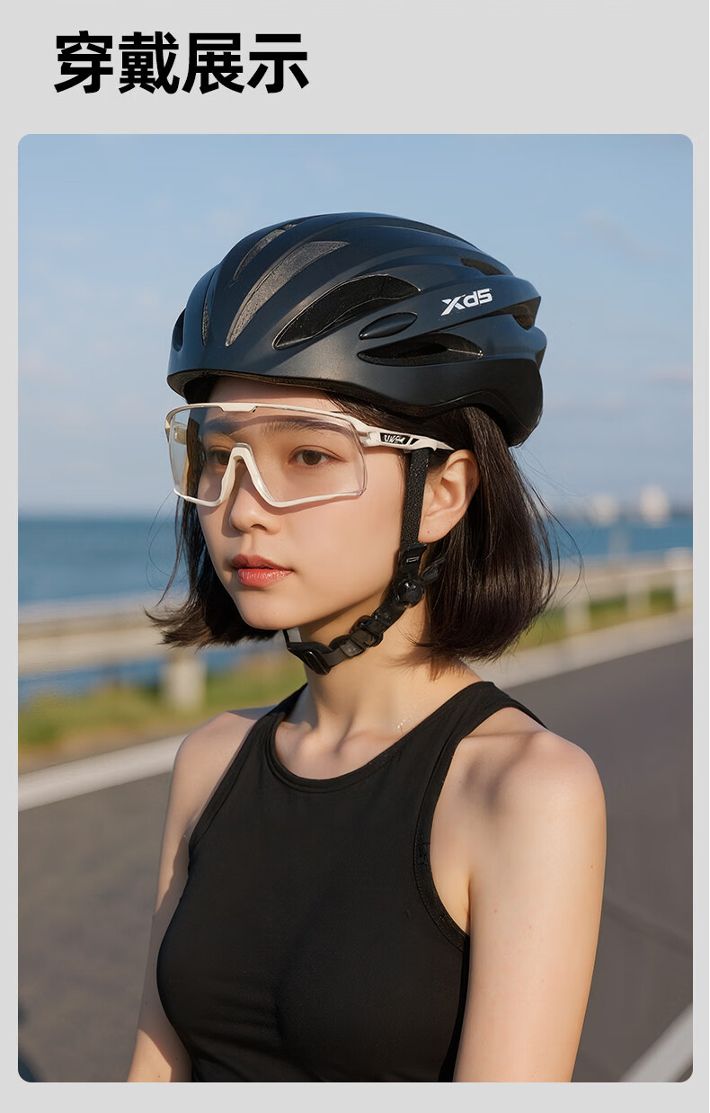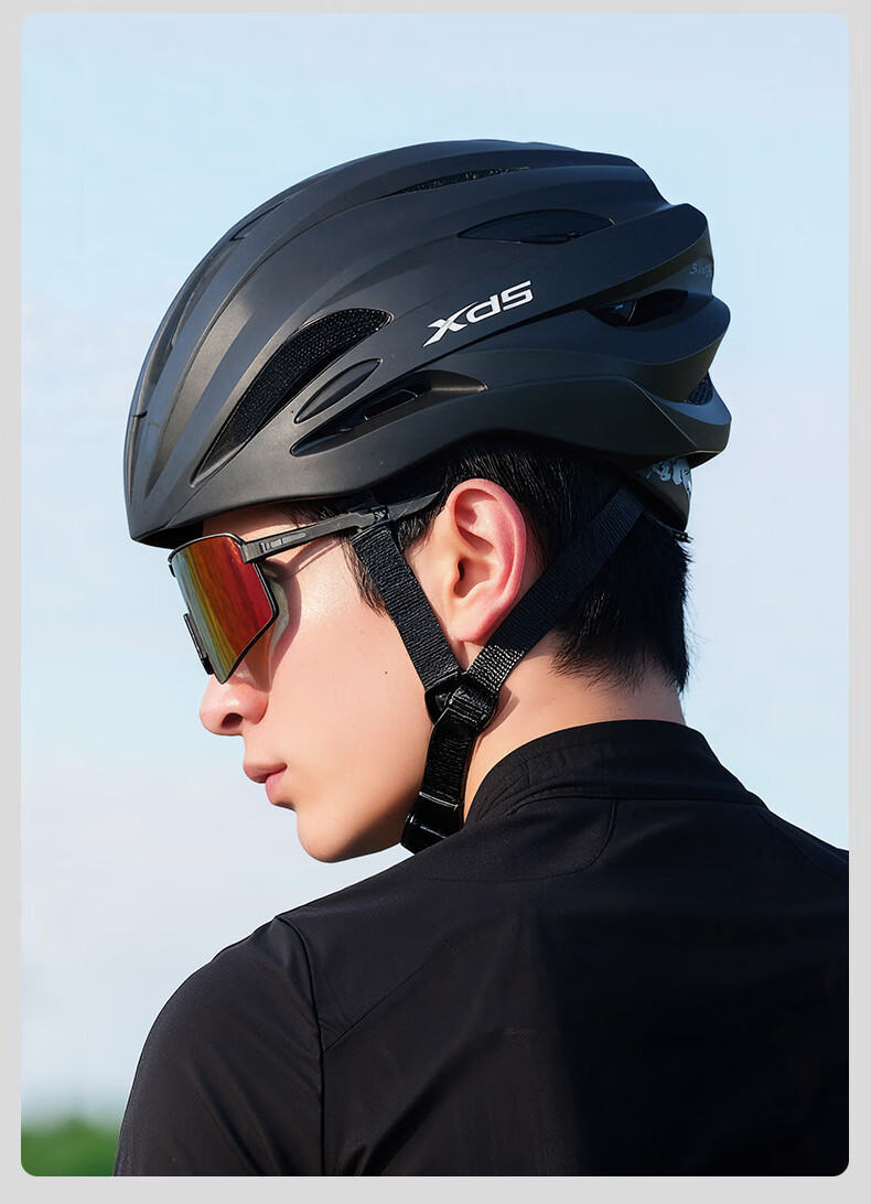 喜德盛自行车骑行头盔男女公路车山地车气动型安全帽黑客AD配件CRTK-001 黑色头盔 L码推荐头围57-61CM