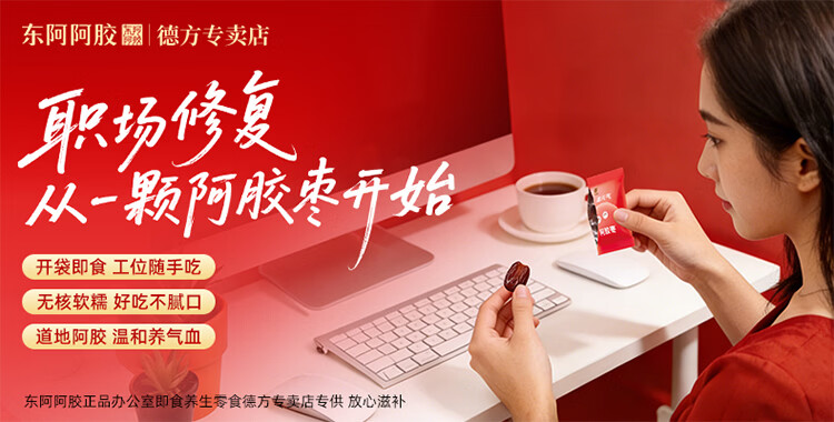 东阿阿胶官方授权遇元气阿胶枣即食无核水晶金丝红枣健康营养品休闲零食 东阿阿胶阿胶金丝枣 100g*1盒