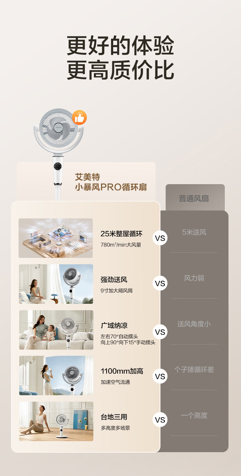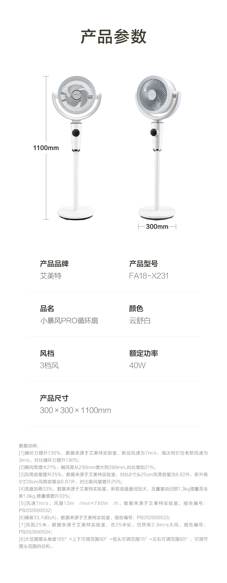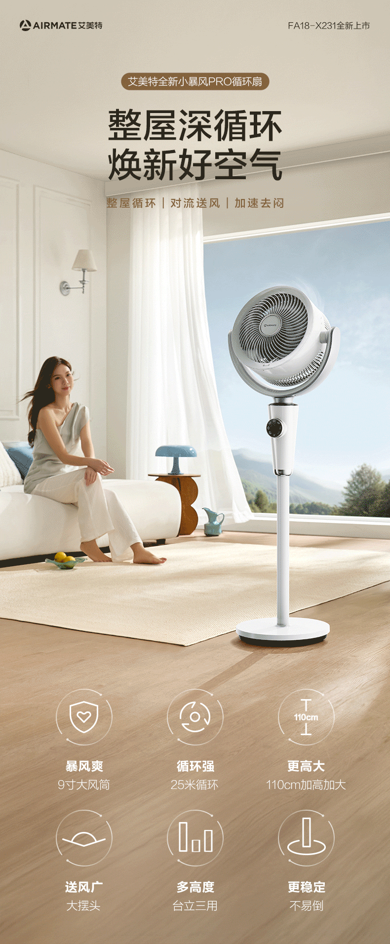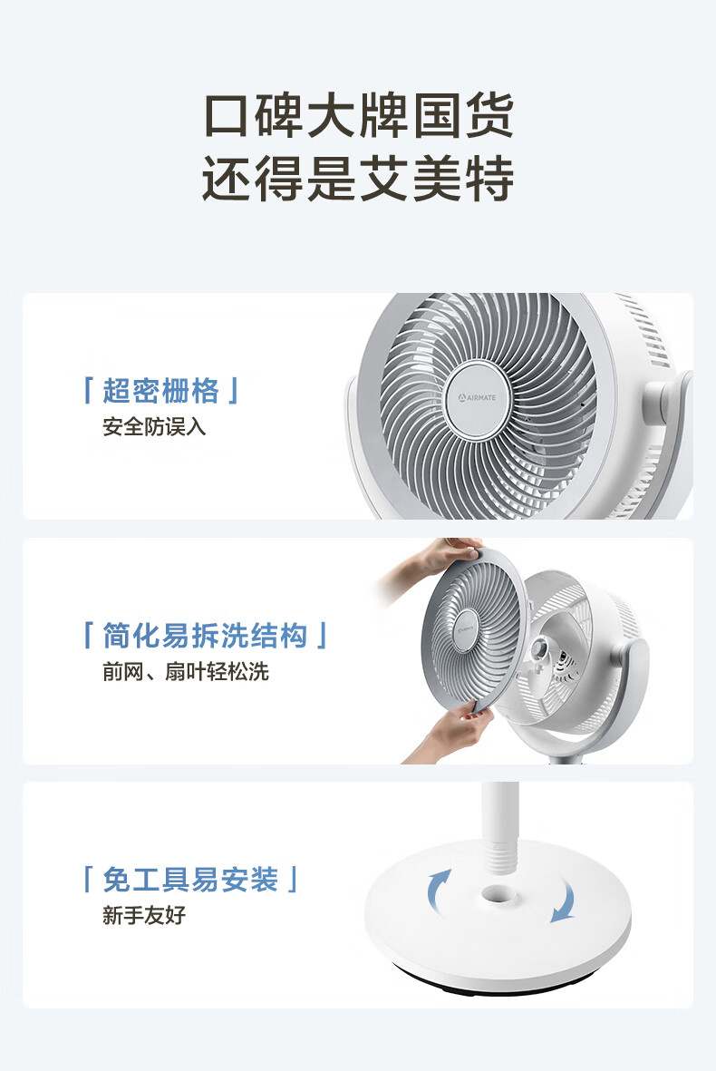 艾美特(AIRMATE)【小暴风PRO】空气循环扇家用大风力摇头电风扇卧室安静轻音小风扇桌面台式节能落地扇电扇 X231