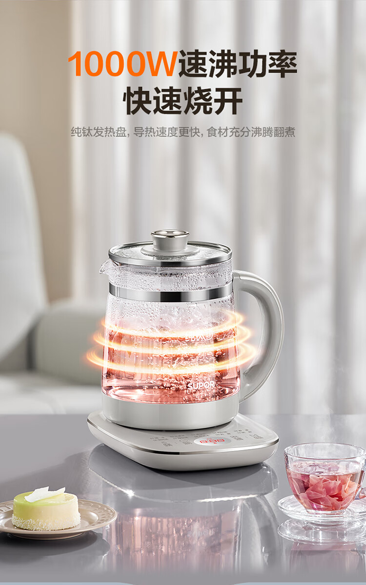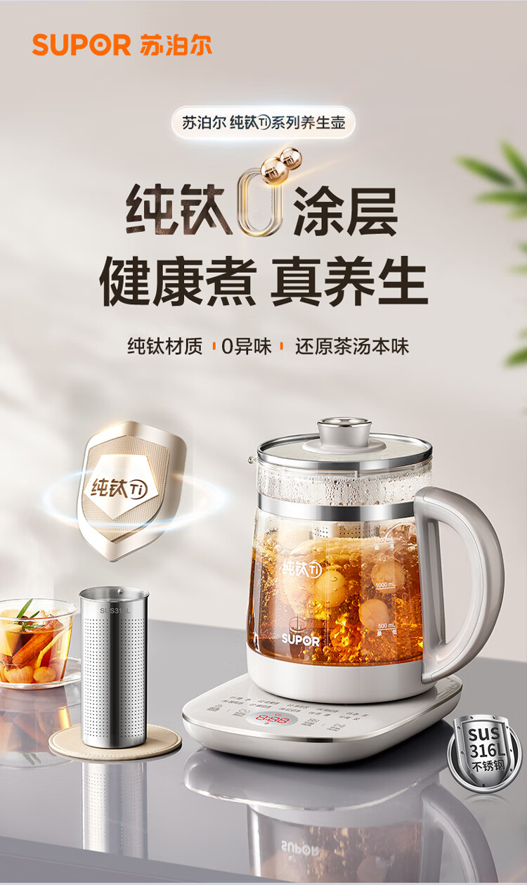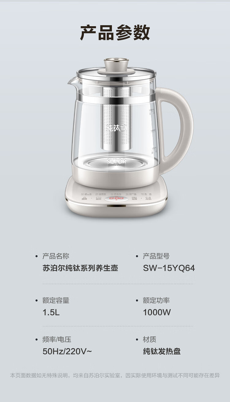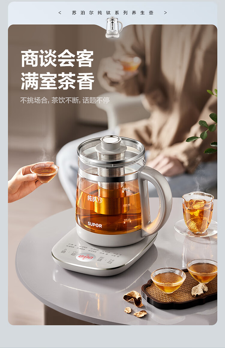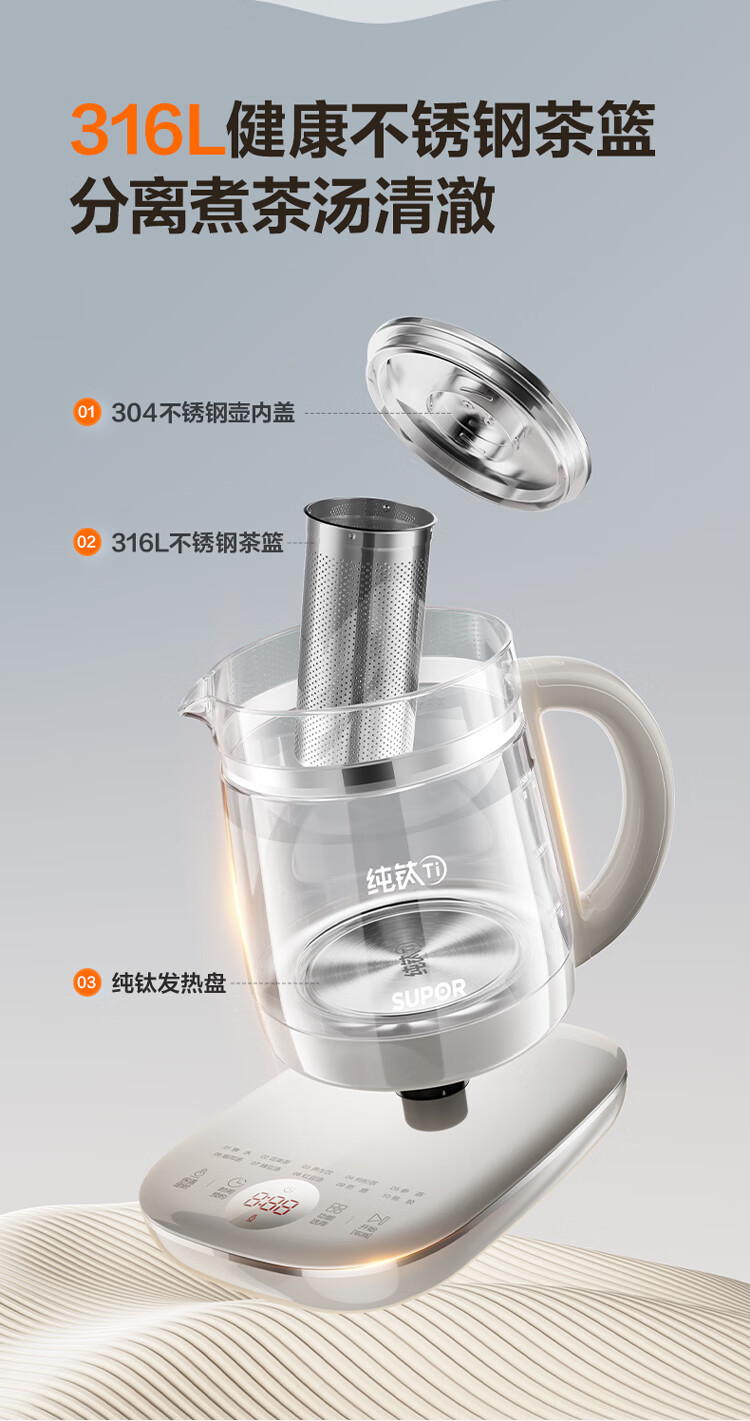 苏泊尔(SUPOR)1.5L养生壶煮茶壶烧水壶电热水壶煮茶器花茶壶 316L不锈钢纯钛0涂层 0胶水多段恒温保温SW-15YQ64