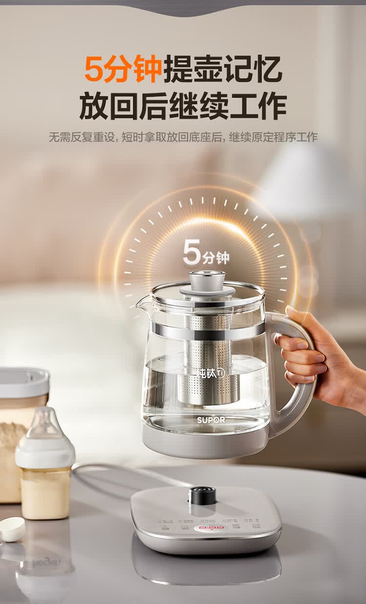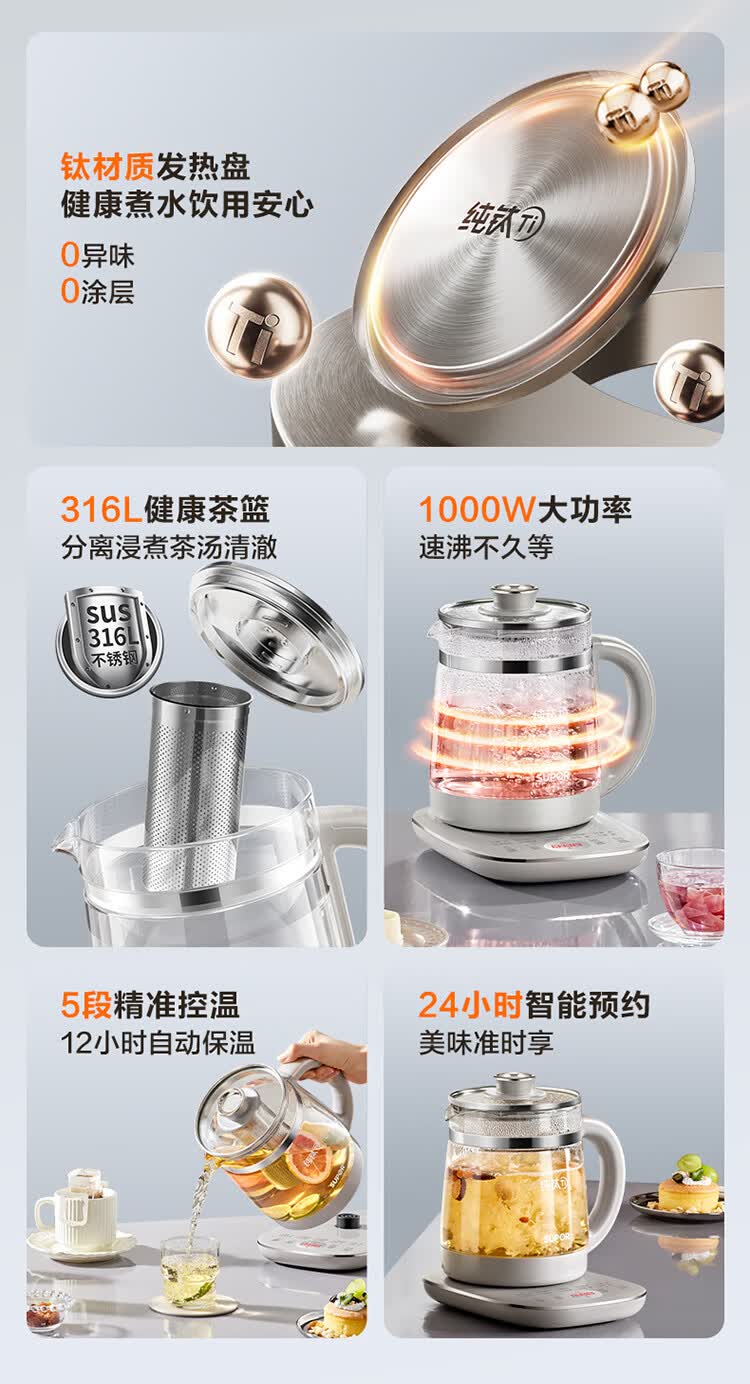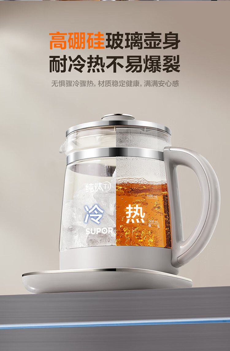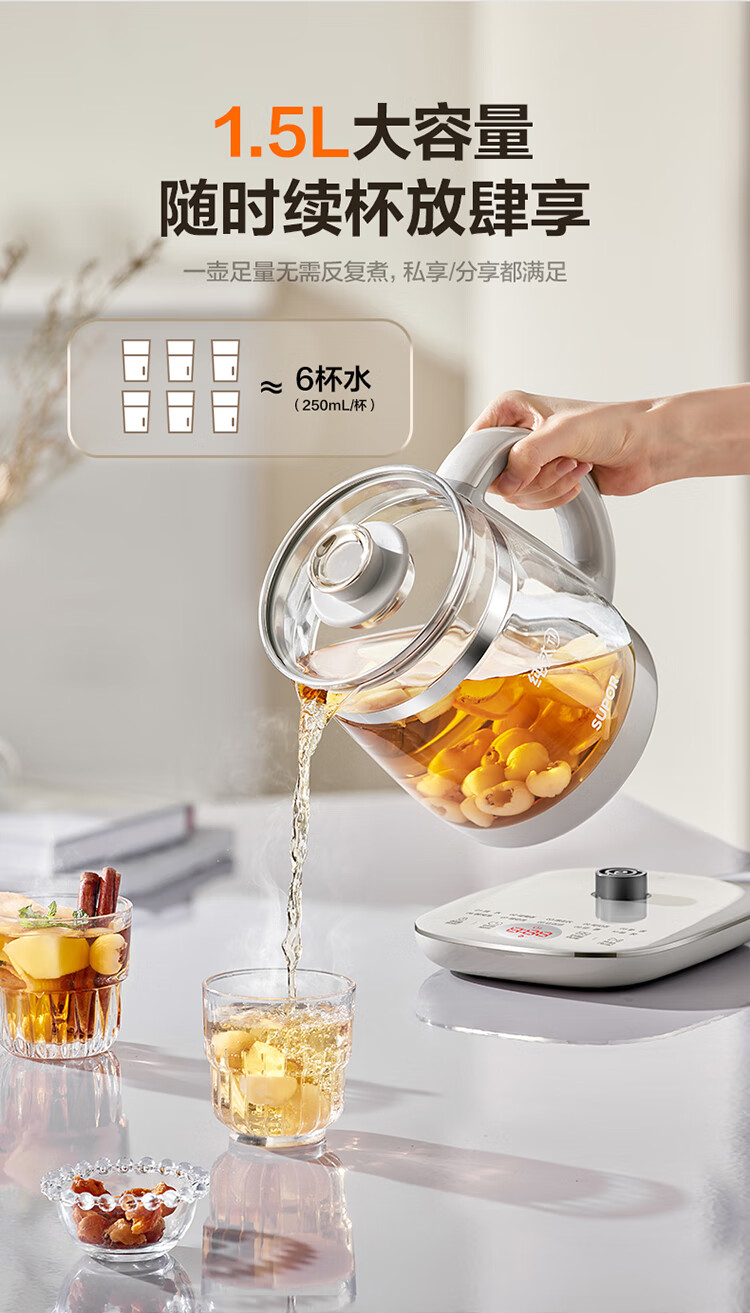 苏泊尔(SUPOR)1.5L养生壶煮茶壶烧水壶电热水壶煮茶器花茶壶 316L不锈钢纯钛0涂层 0胶水多段恒温保温SW-15YQ64