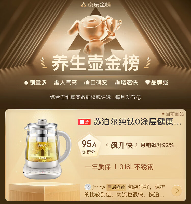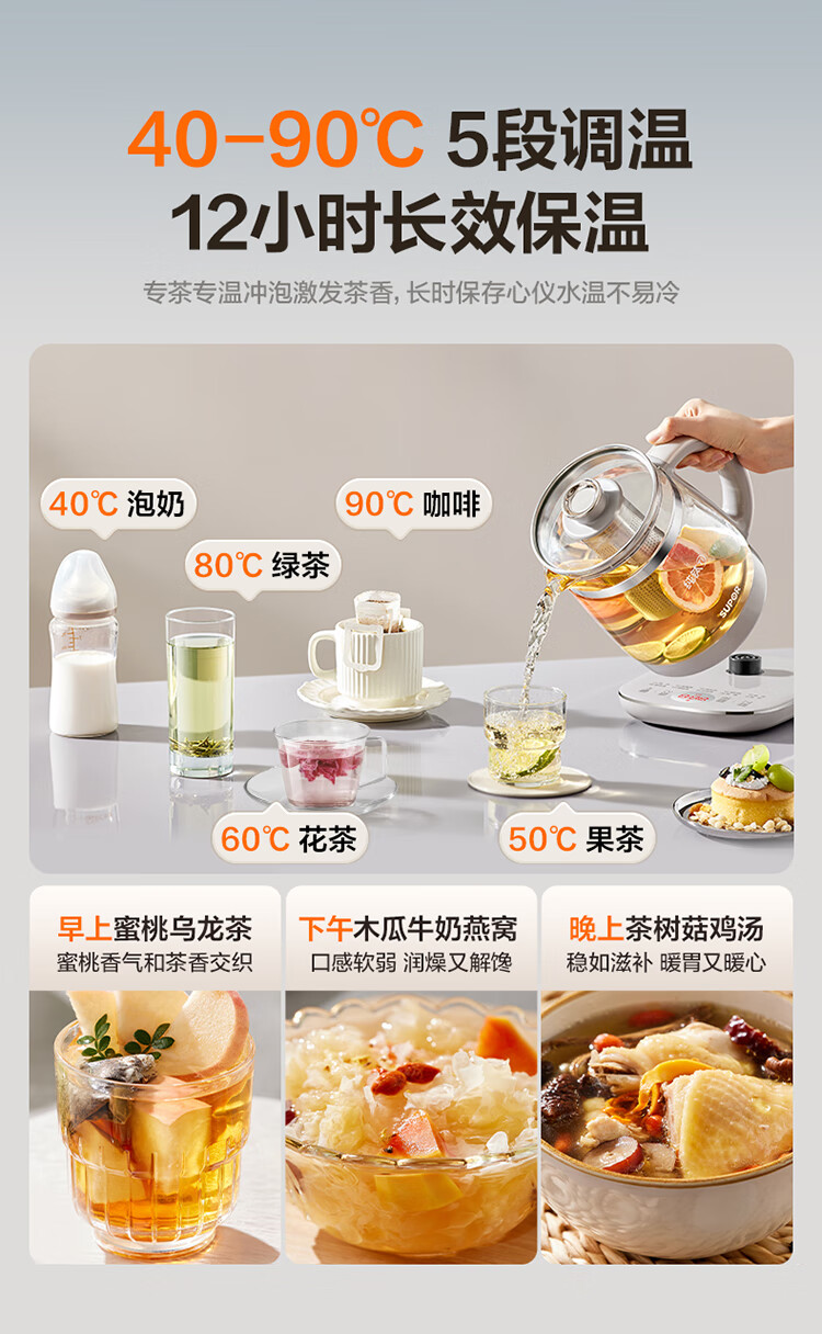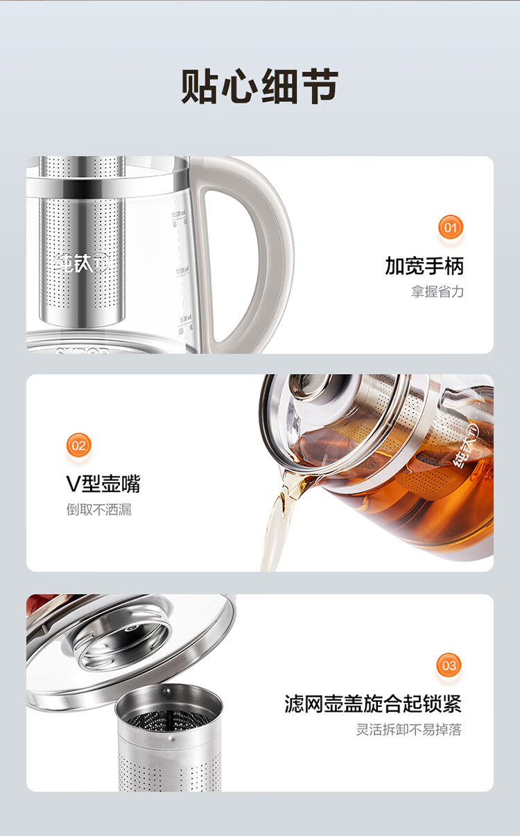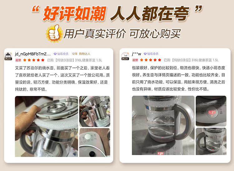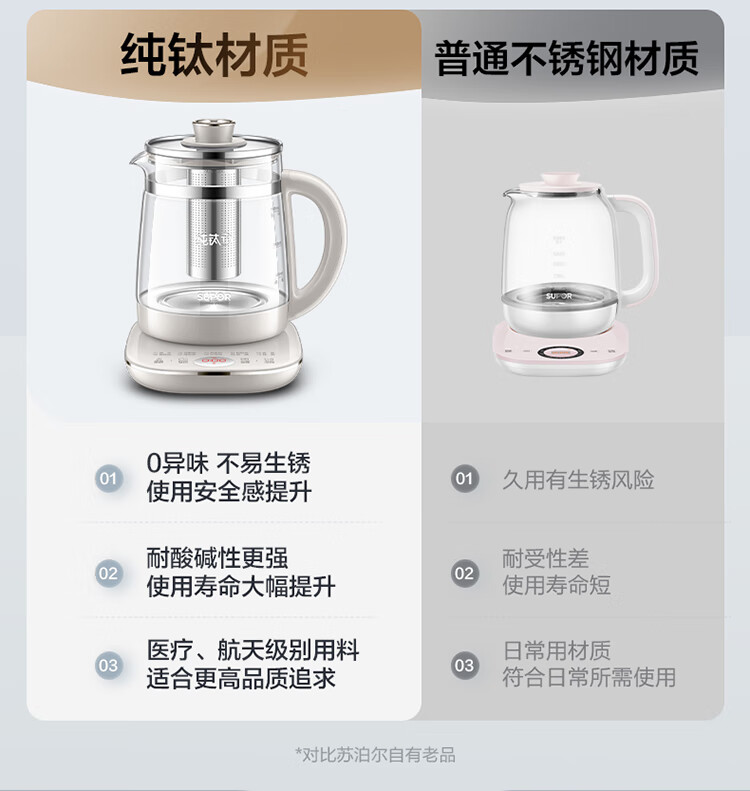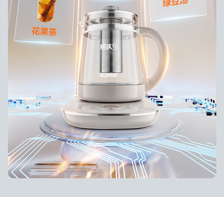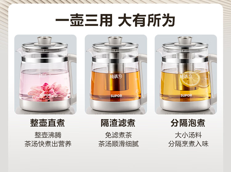 苏泊尔(SUPOR)1.5L养生壶煮茶壶烧水壶电热水壶煮茶器花茶壶 316L不锈钢纯钛0涂层 0胶水多段恒温保温SW-15YQ64