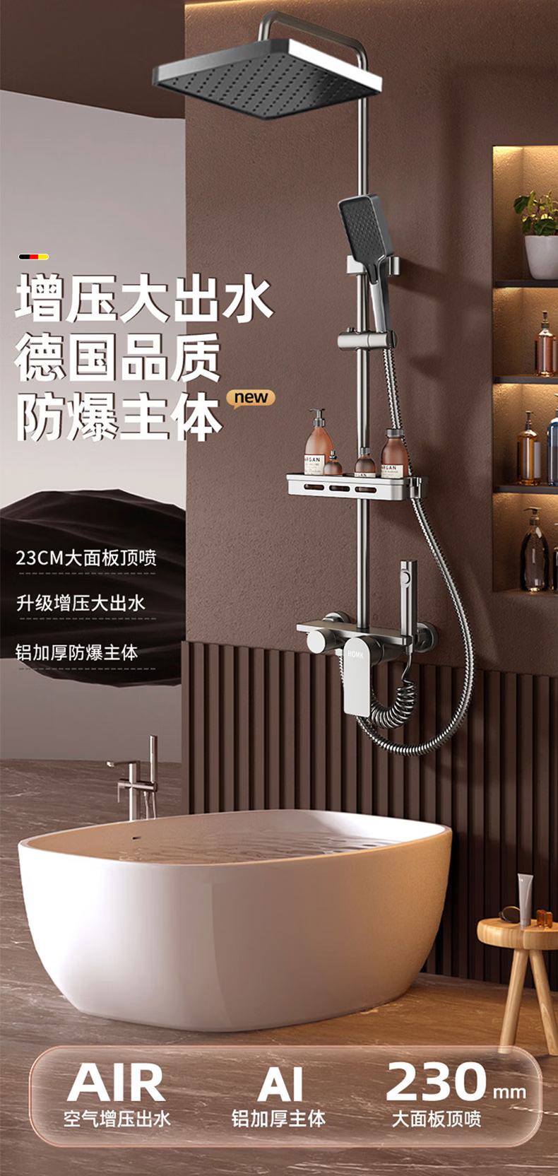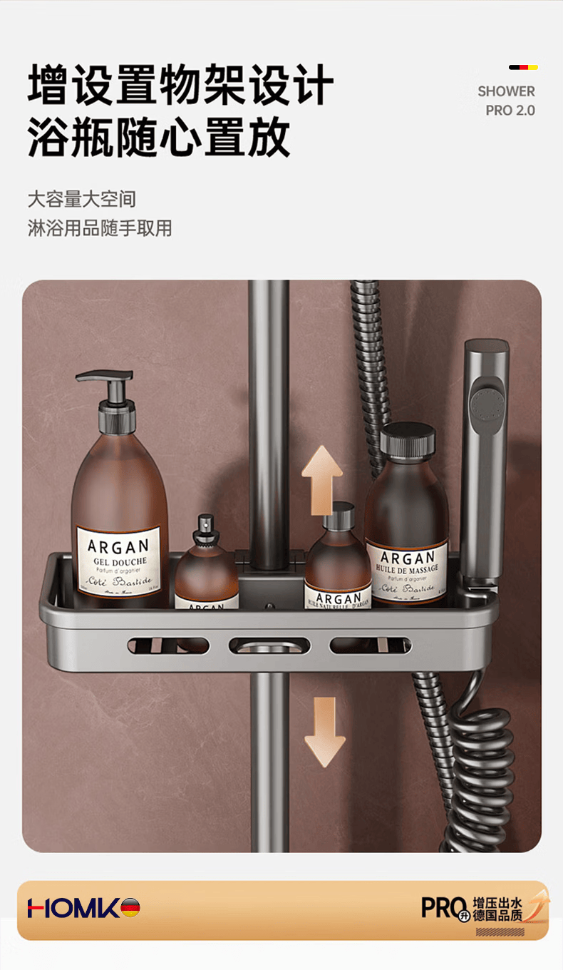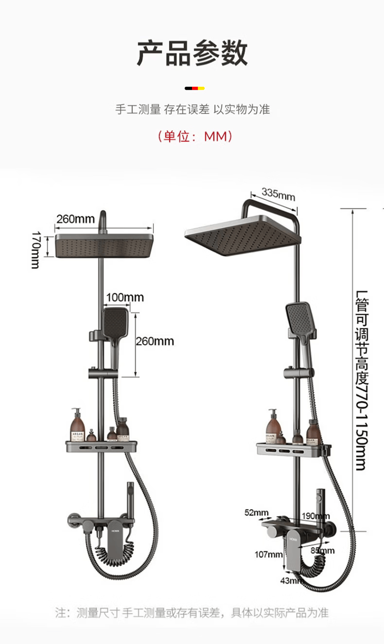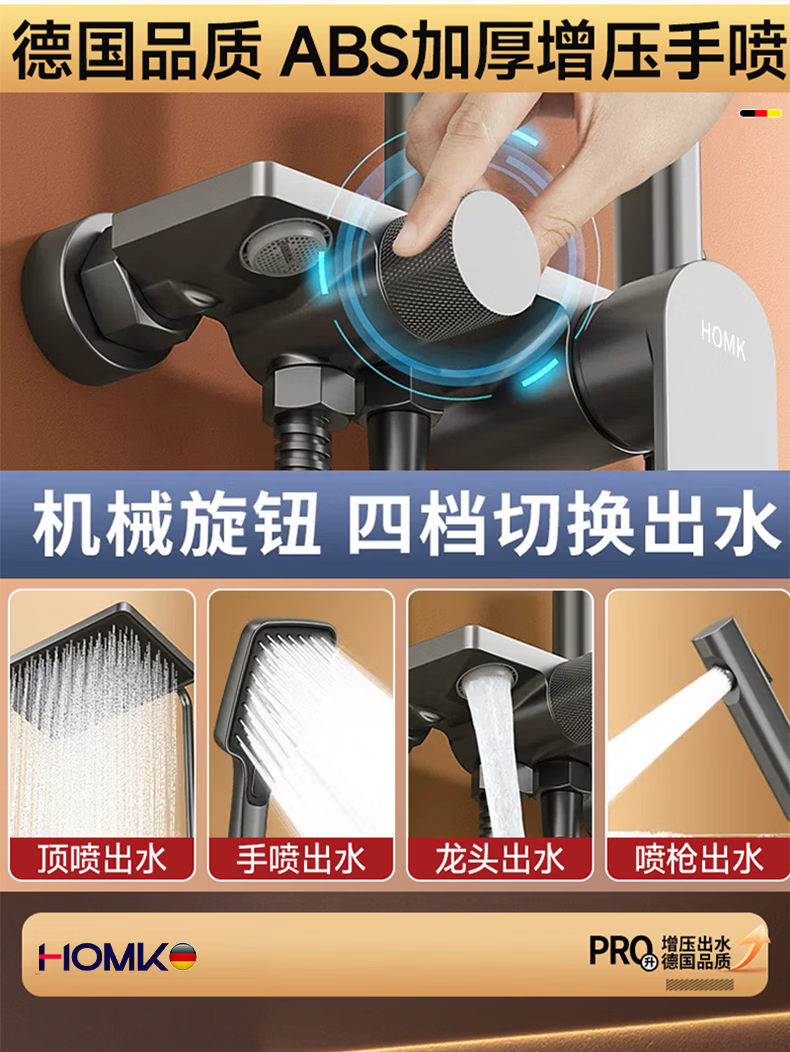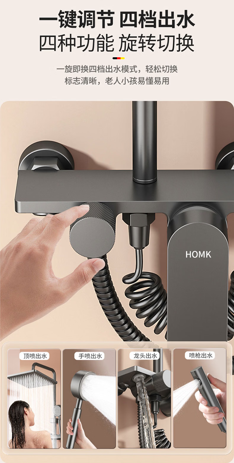 HOMK【德国】包安装淋浴花洒套装浴室家洗澡一体上门安装卫浴花洒全套 【免费安装上门】四功能滑板淋浴套装 0元上门安装丨酒店级沐浴享受