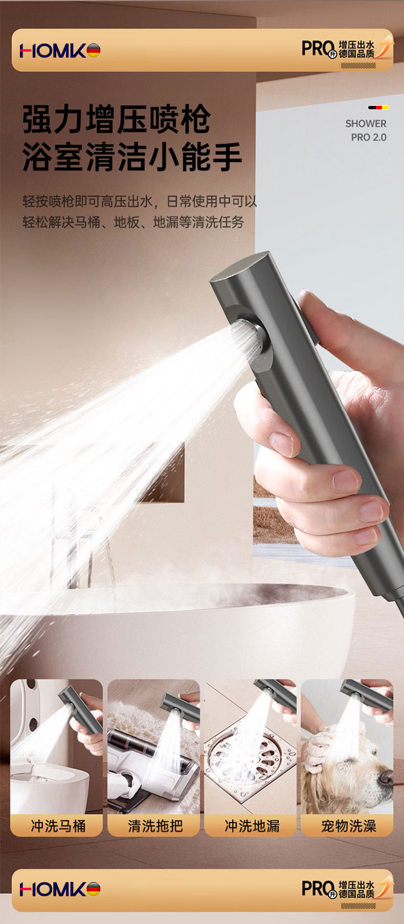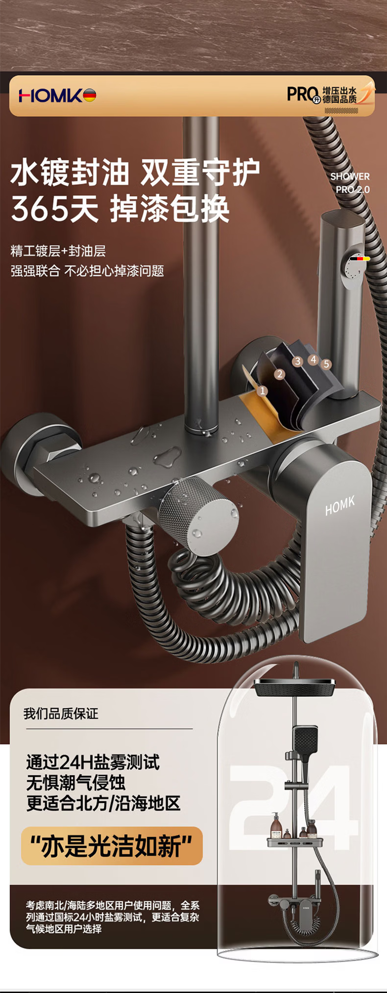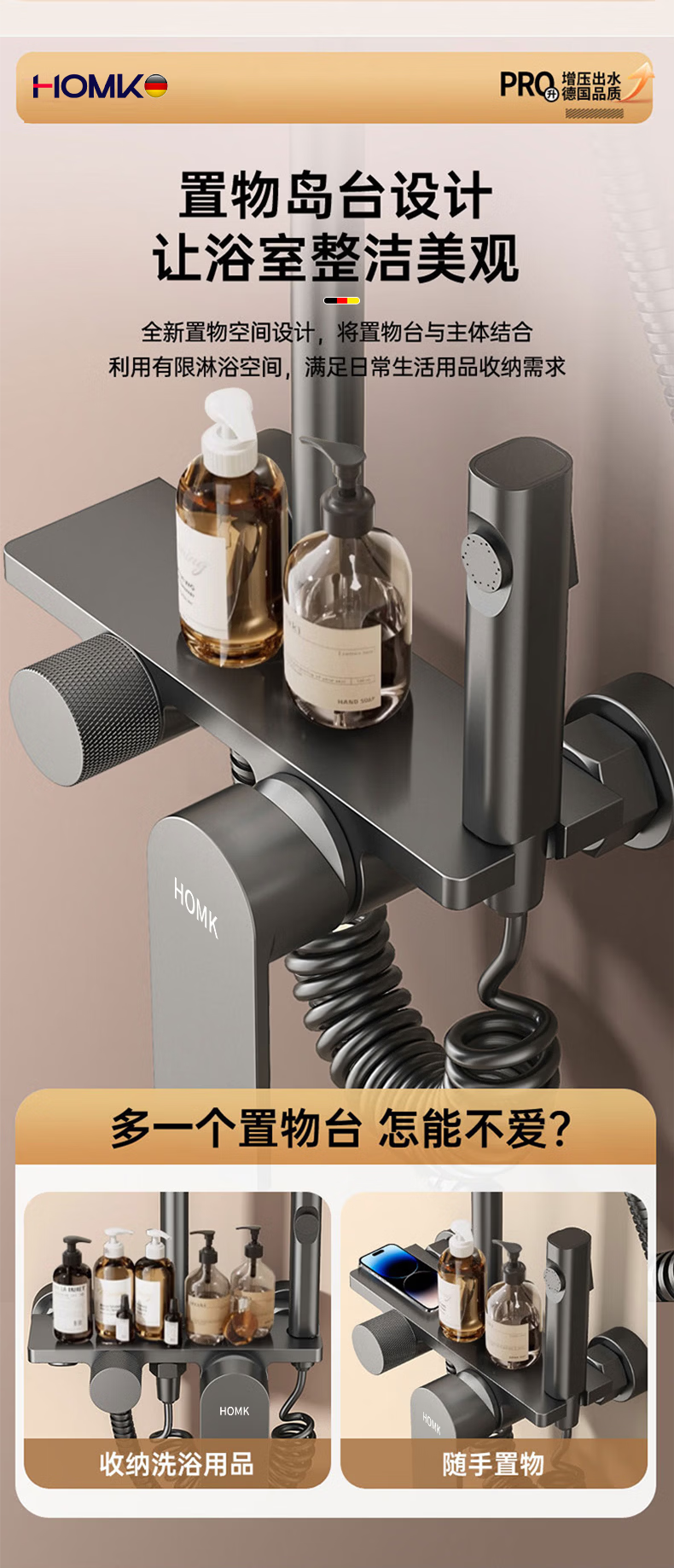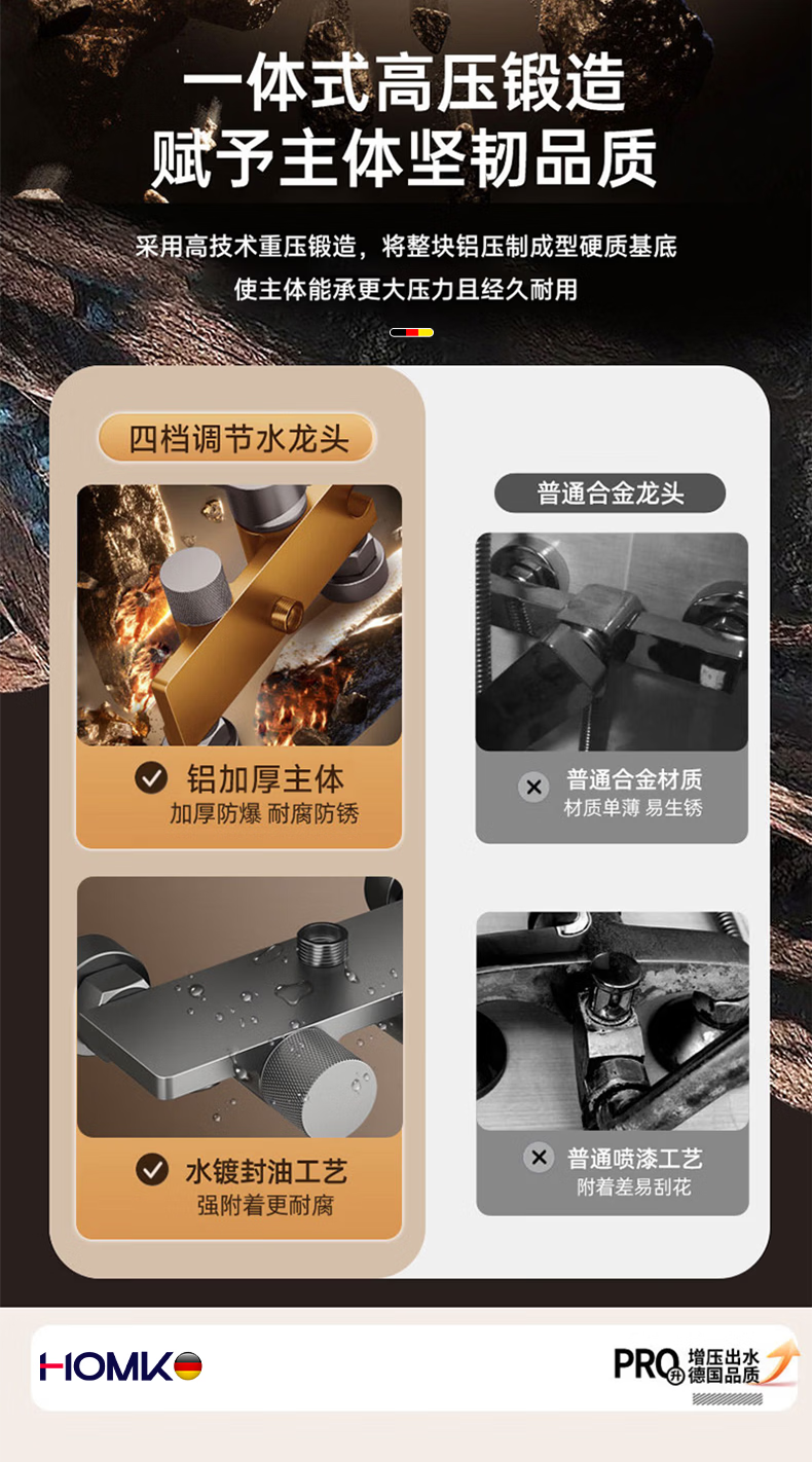 HOMK【德国】包安装淋浴花洒套装浴室家洗澡一体上门安装卫浴花洒全套 【免费安装上门】四功能滑板淋浴套装 0元上门安装丨酒店级沐浴享受