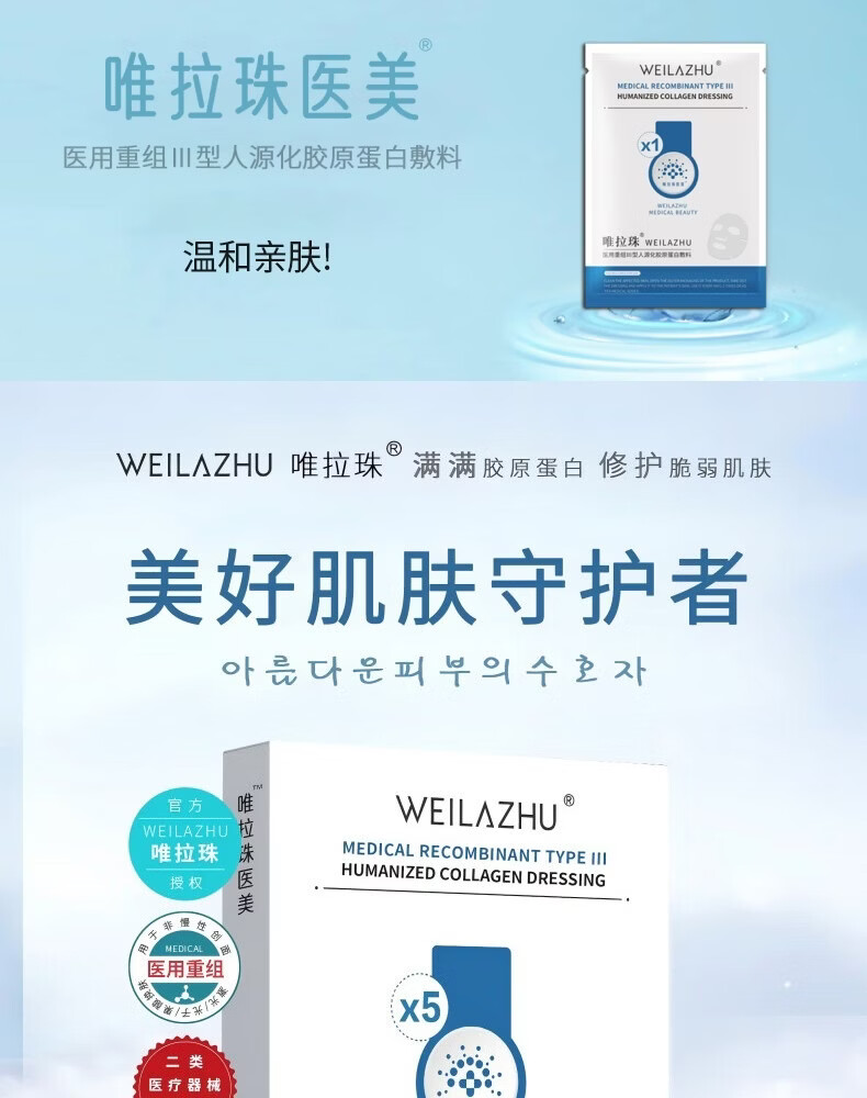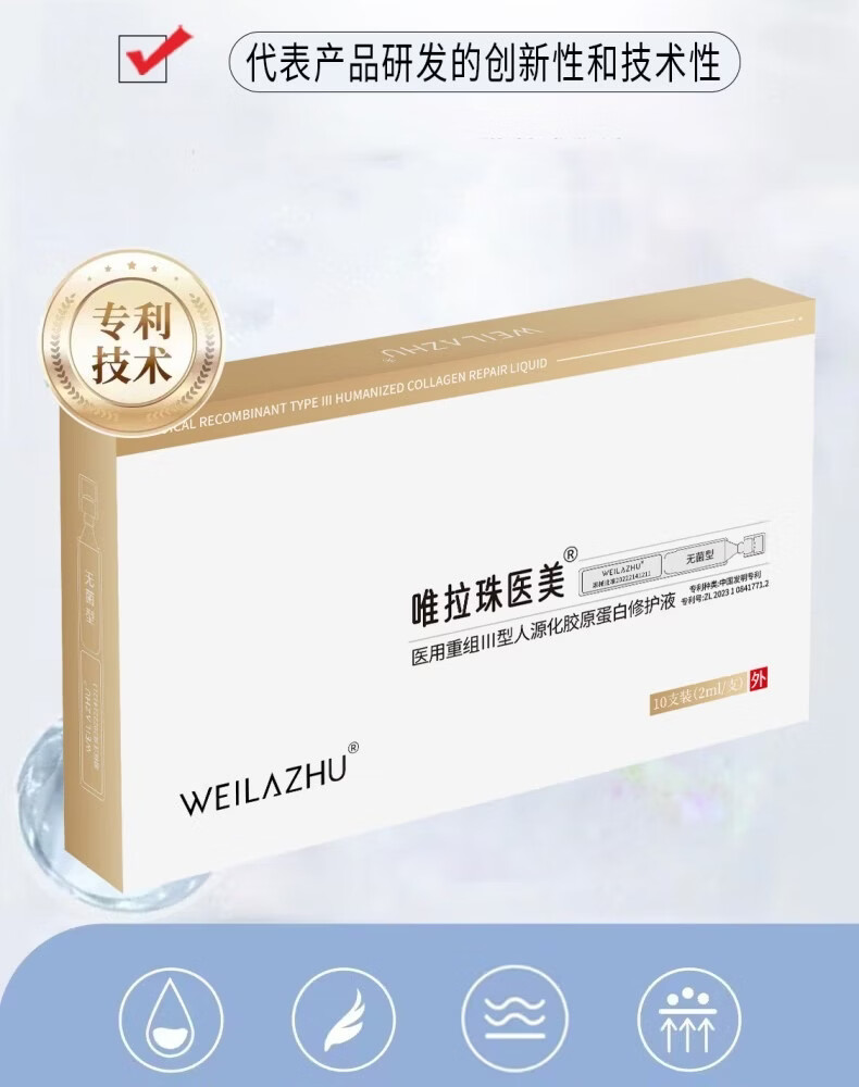 WEILAZHU唯拉珠医用胶原蛋白激光术后修护肌底保湿补水械字号次抛型 胶原蛋白修护液 3盒(30支次抛状)