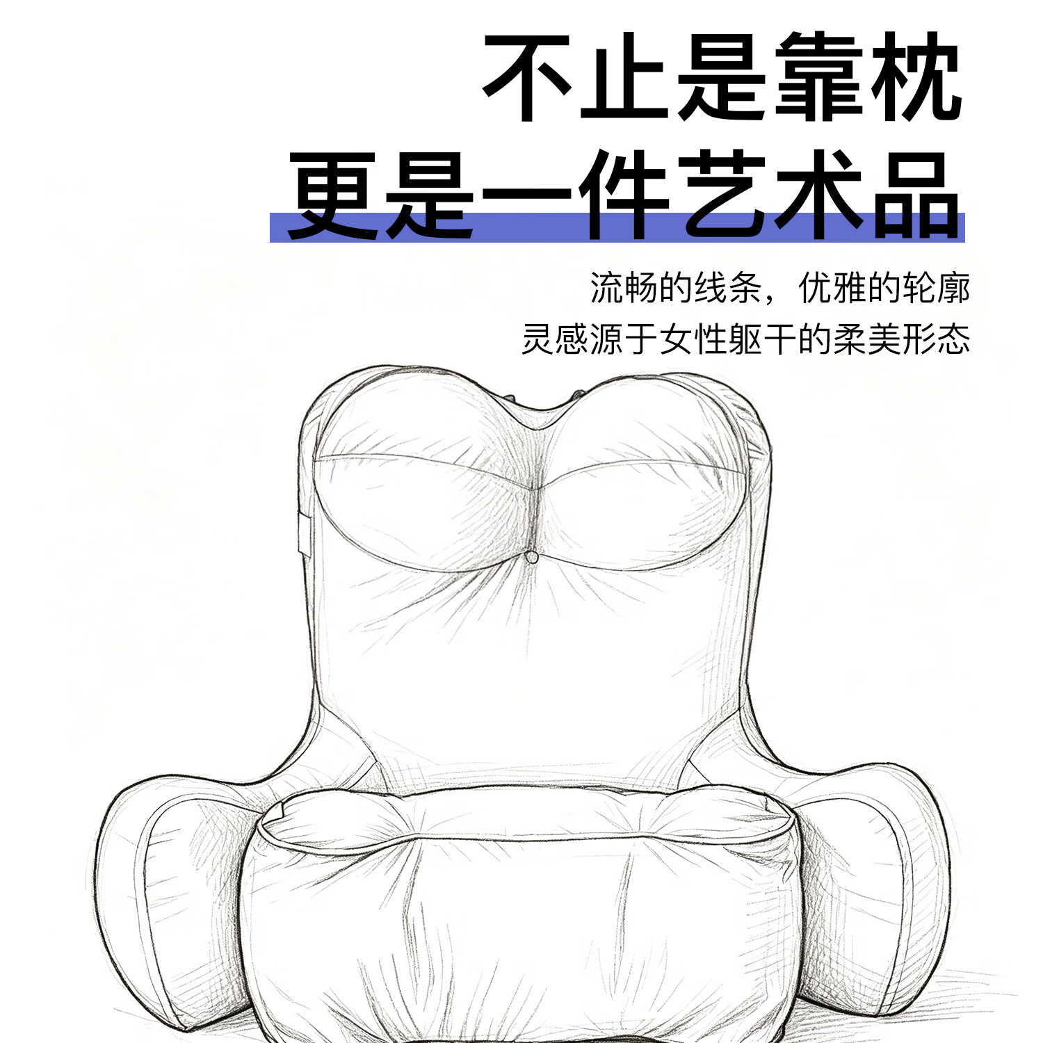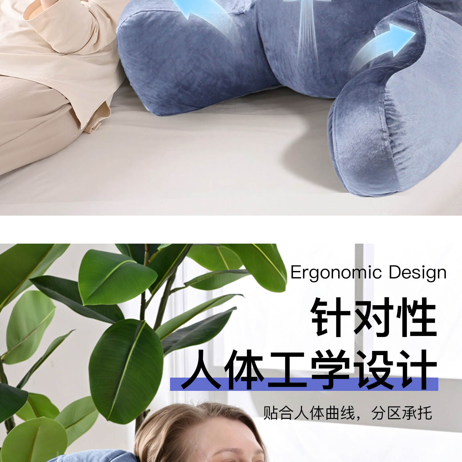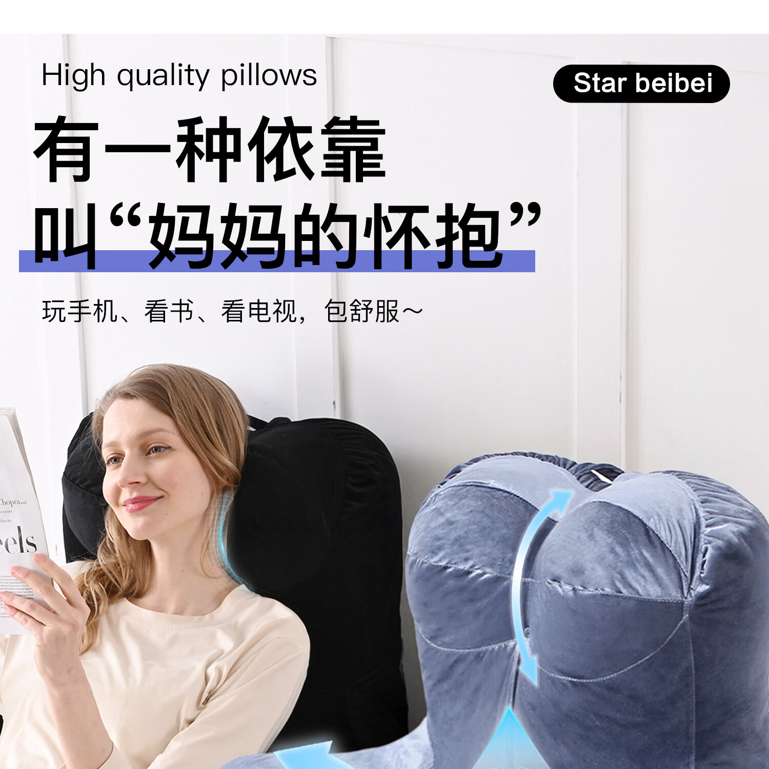 考拉吉苏床头软包靠背护腰靠垫 床上靠枕一体 居家办公阅读追剧小憩腰靠 多功能腰靠垫【高贵黑】