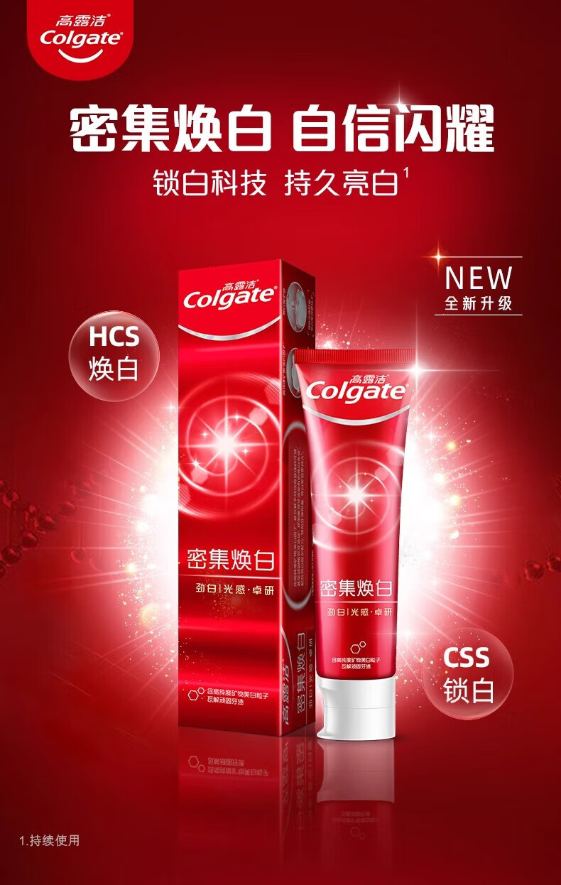 高露洁(Colgate)密集焕白牙膏劲白锁白科技减少牙渍牙垢清新口气不伤牙牙膏120g 高露洁密集焕白牙膏120g*1支(品牌正品)