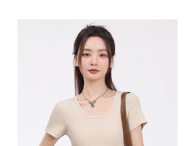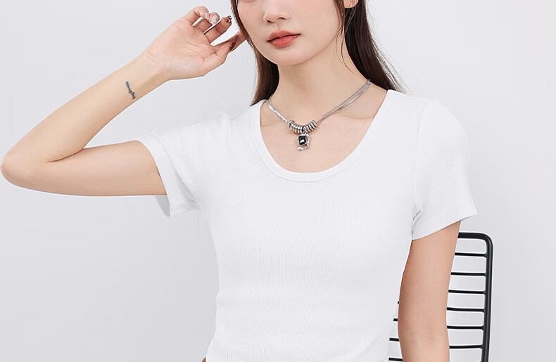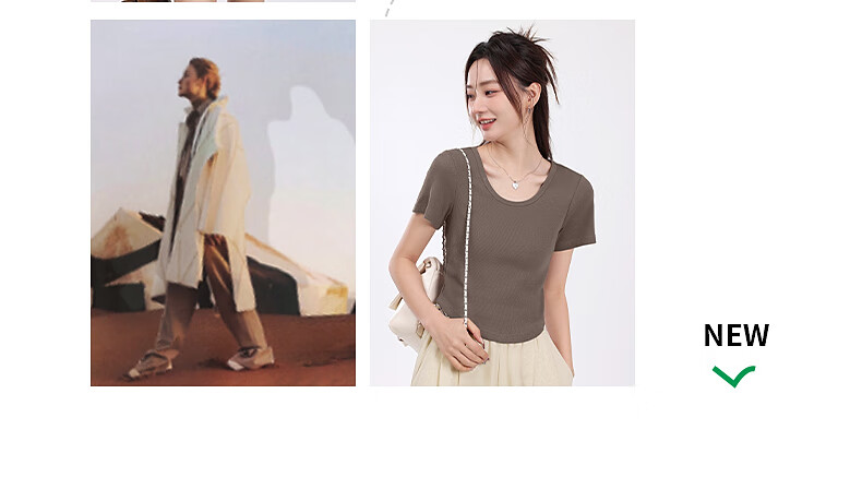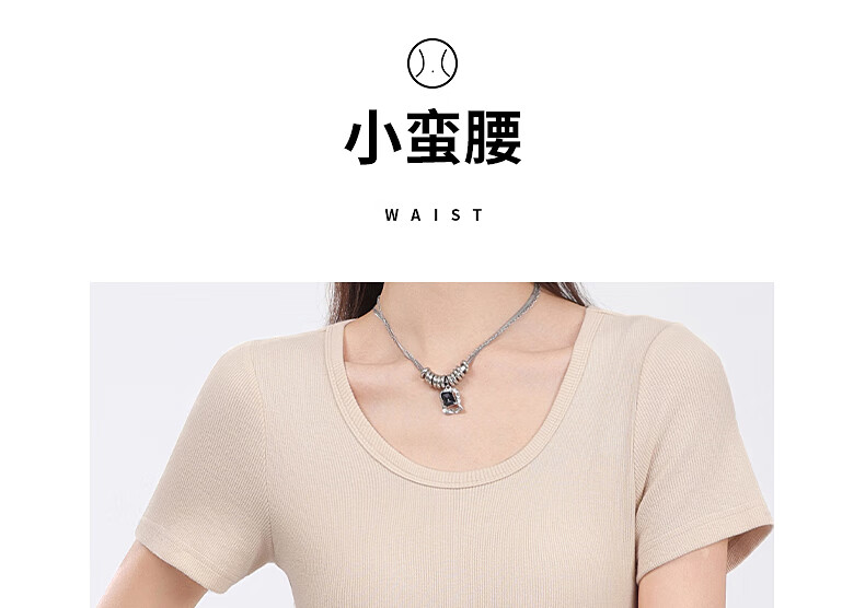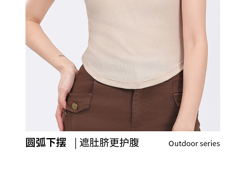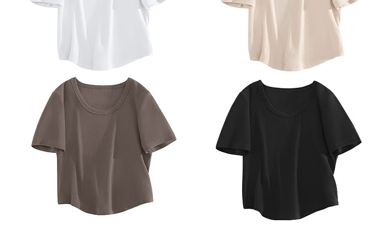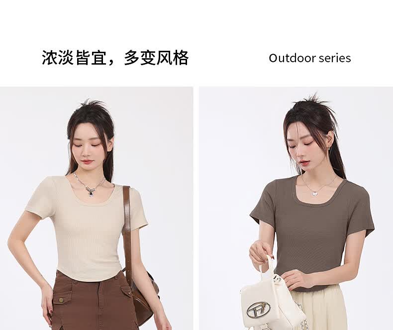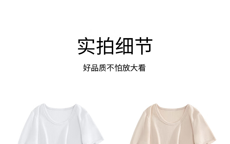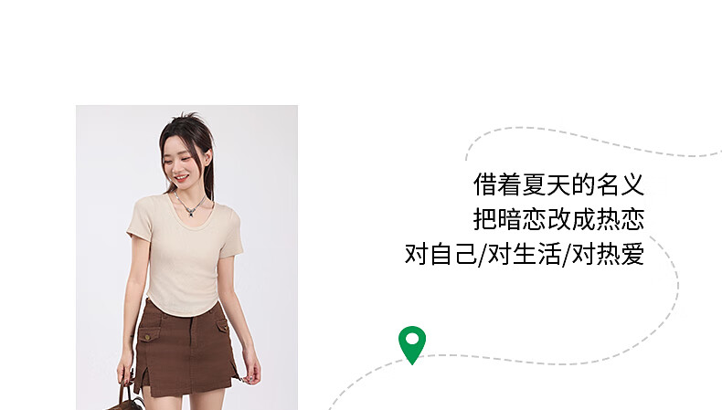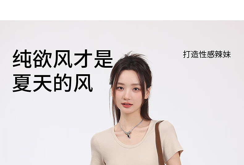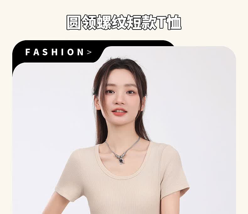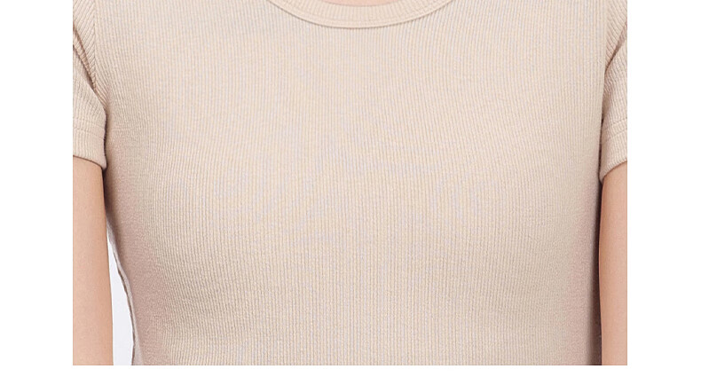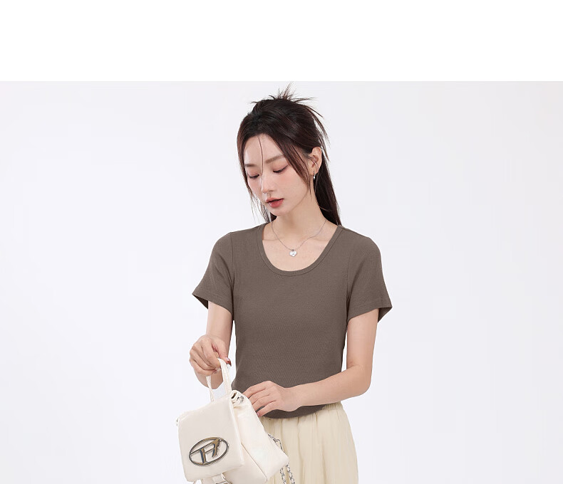 真维斯圆领罗纹修身短款短袖T恤女夏季新款休闲百搭简约风上衣GX 浅卡其-纯色 L