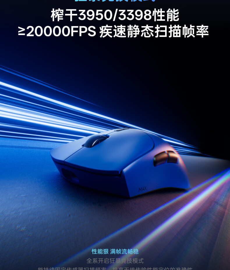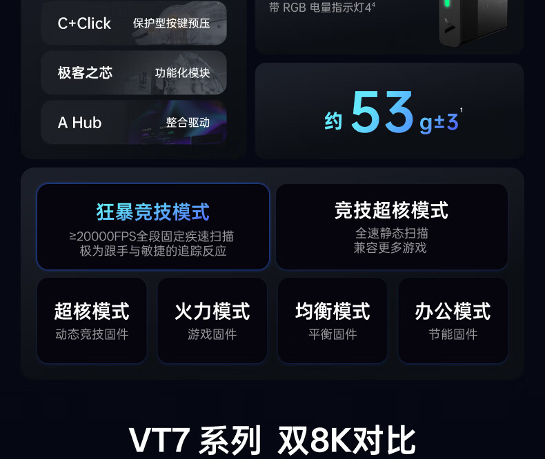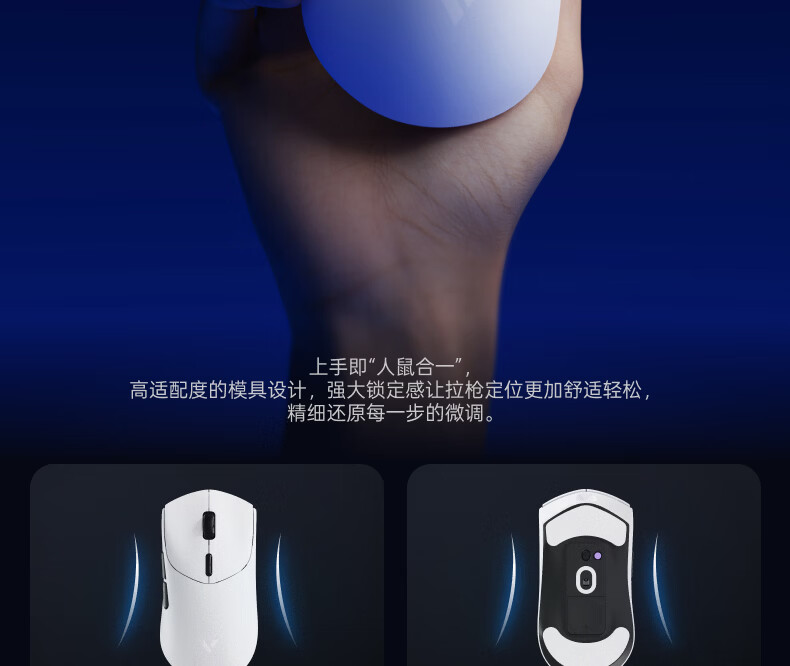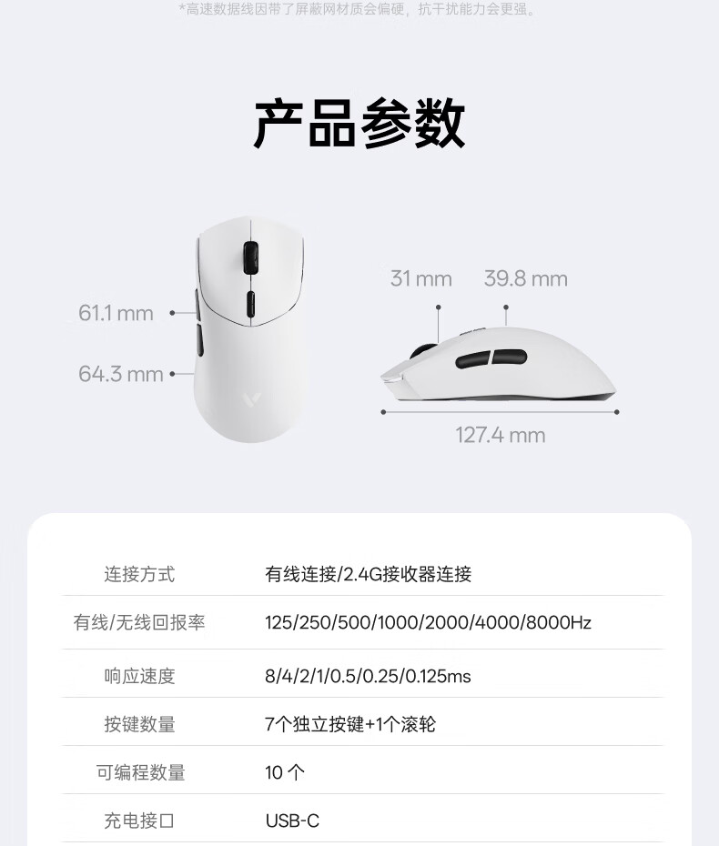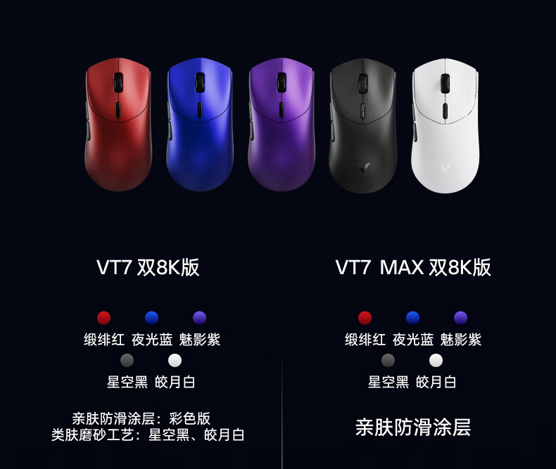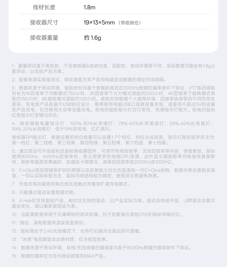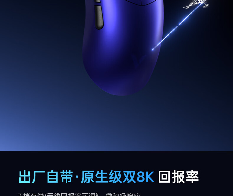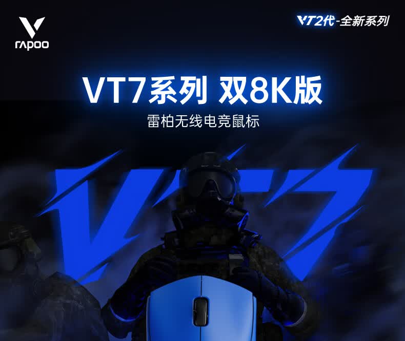 雷柏(Rapoo)VT7MAX二代双8K版 中大手无线/有线双模游戏鼠标 PAW3950引擎 人体工学设计 原生8K+8K回报率 黑白