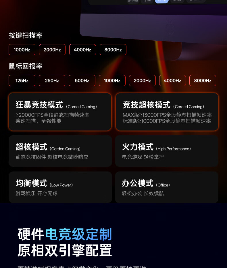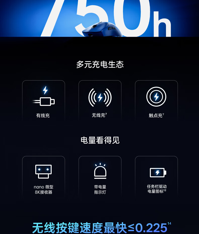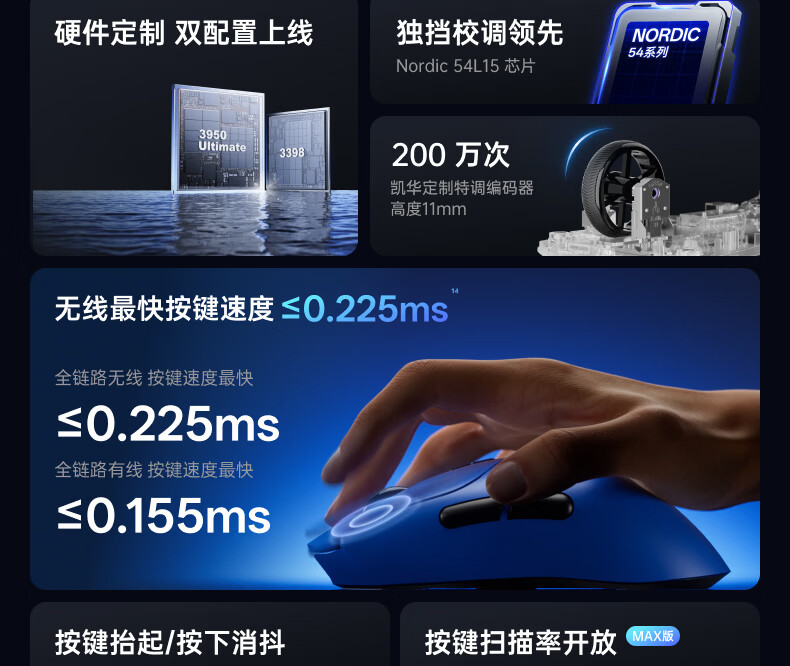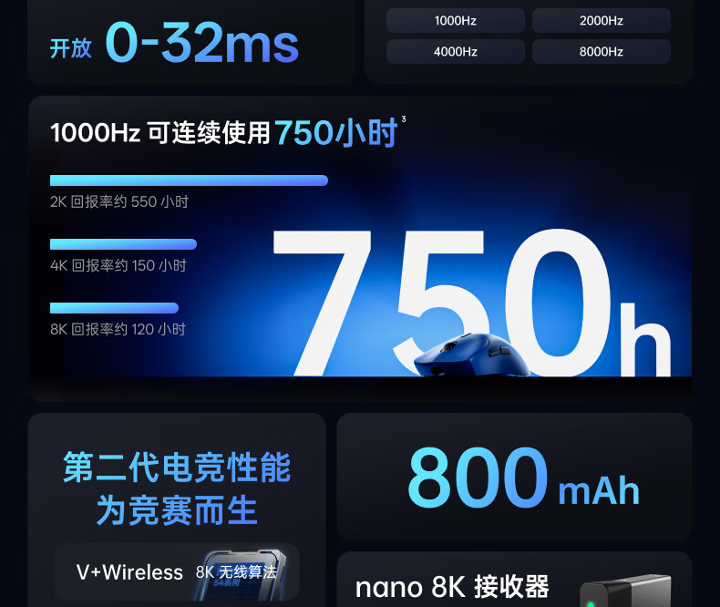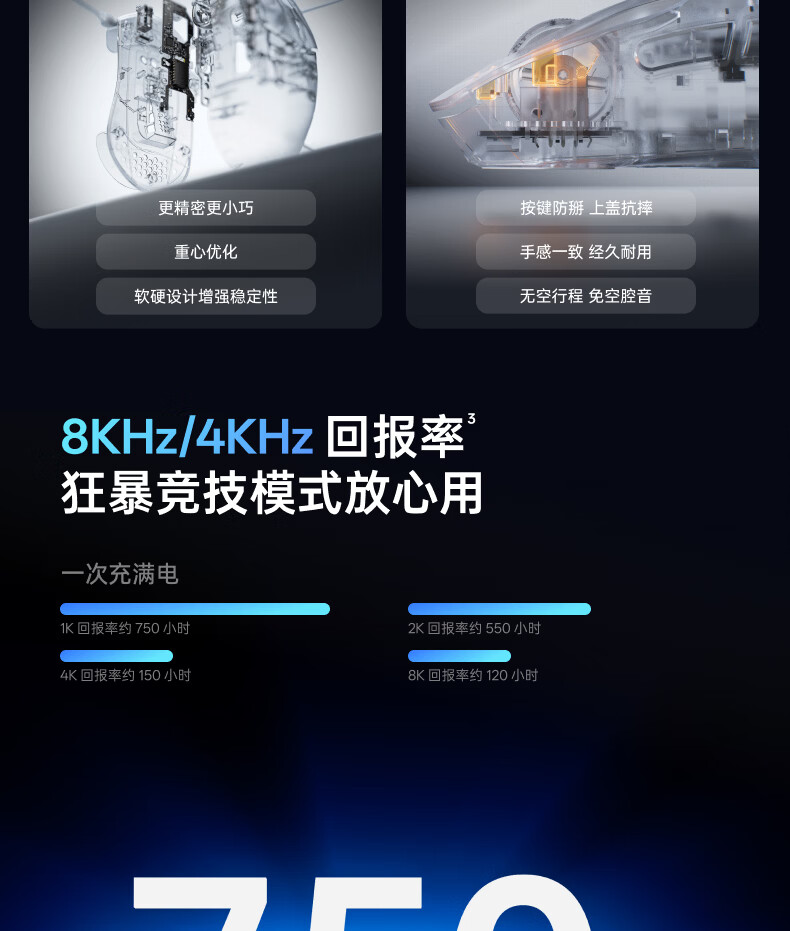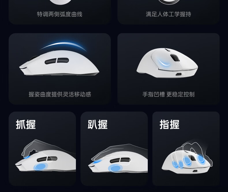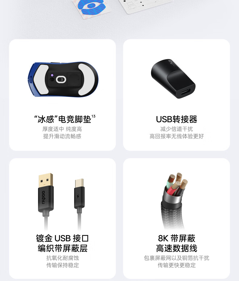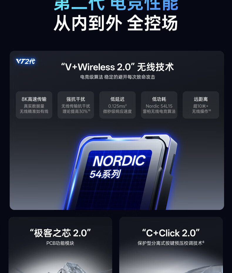 雷柏(Rapoo)VT7MAX二代双8K版 中大手无线/有线双模游戏鼠标 PAW3950引擎 人体工学设计 原生8K+8K回报率 黑白