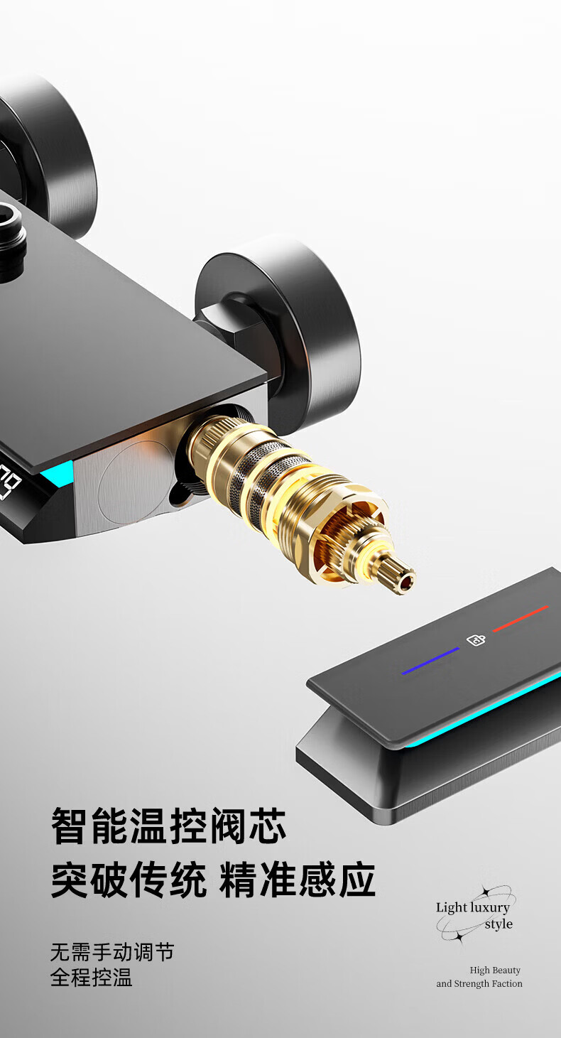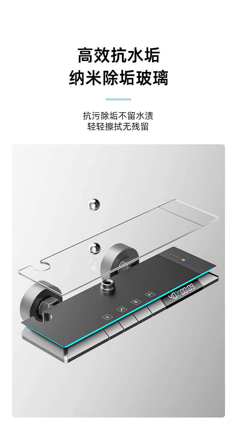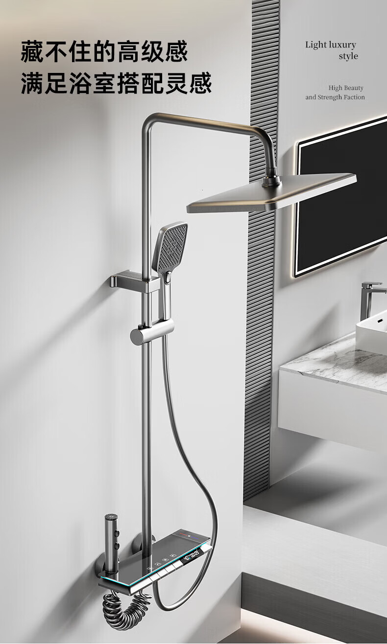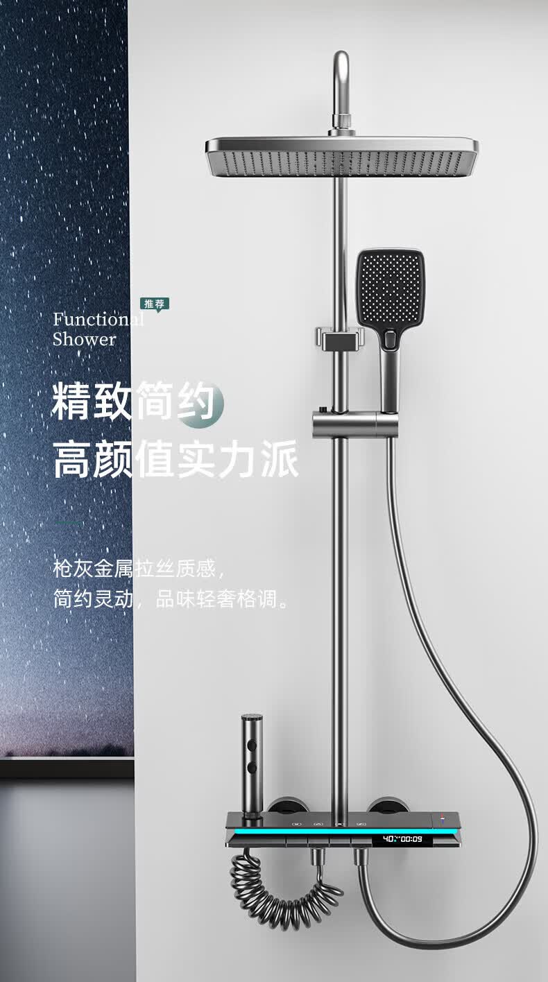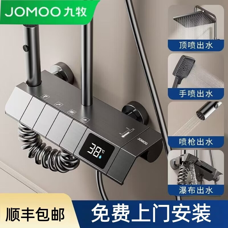 九牧【JOMOO】花洒淋浴套装铜恒温数显钢琴键浴室卫生间淋雨喷头 水镀灰钢琴四档-恒温款 包安装