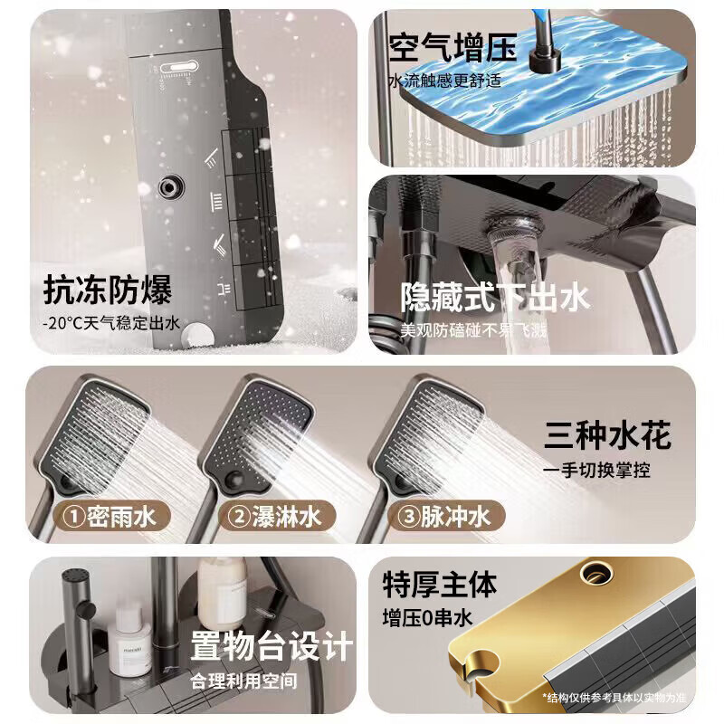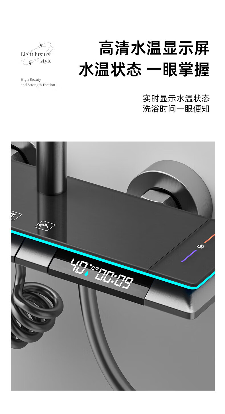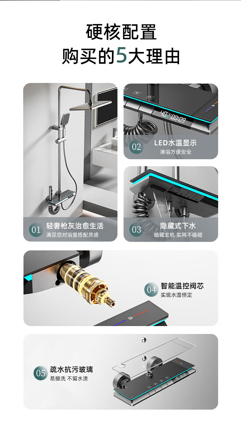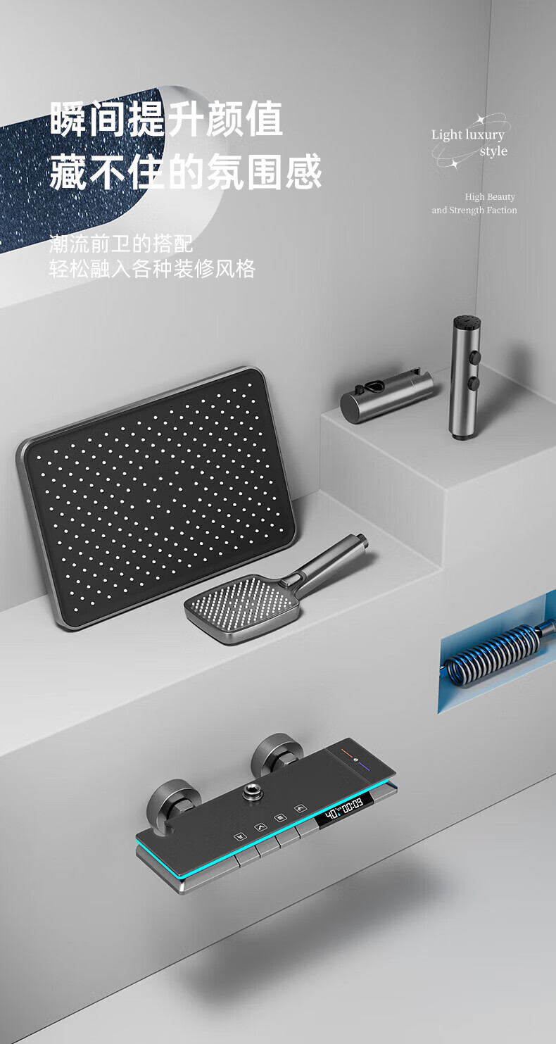 九牧【JOMOO】花洒淋浴套装铜恒温数显钢琴键浴室卫生间淋雨喷头 水镀灰钢琴四档-恒温款 包安装