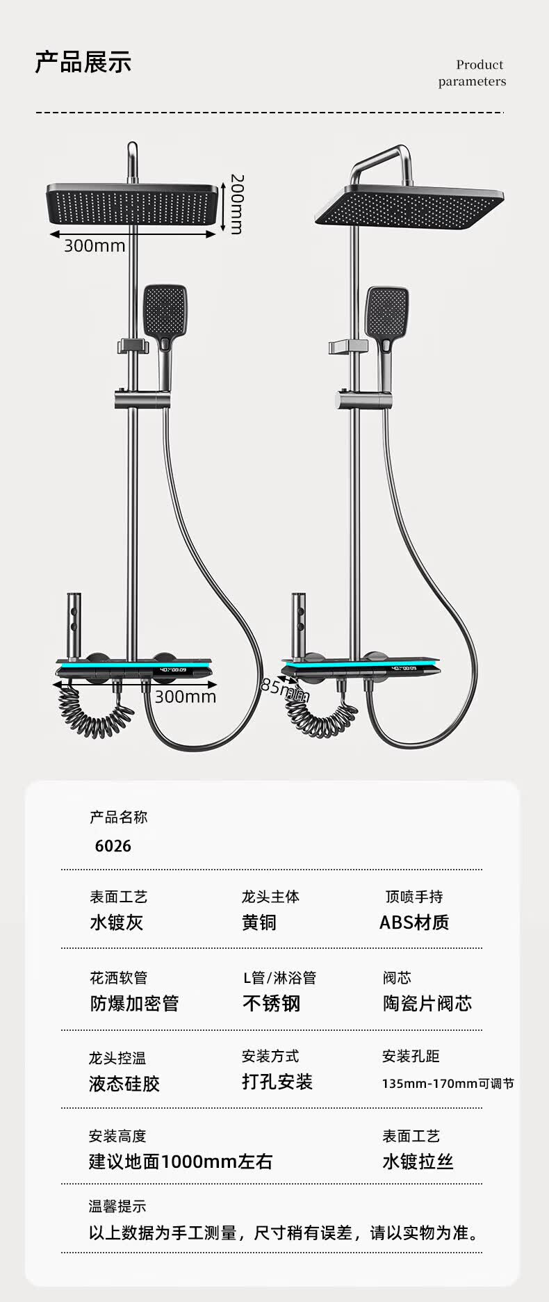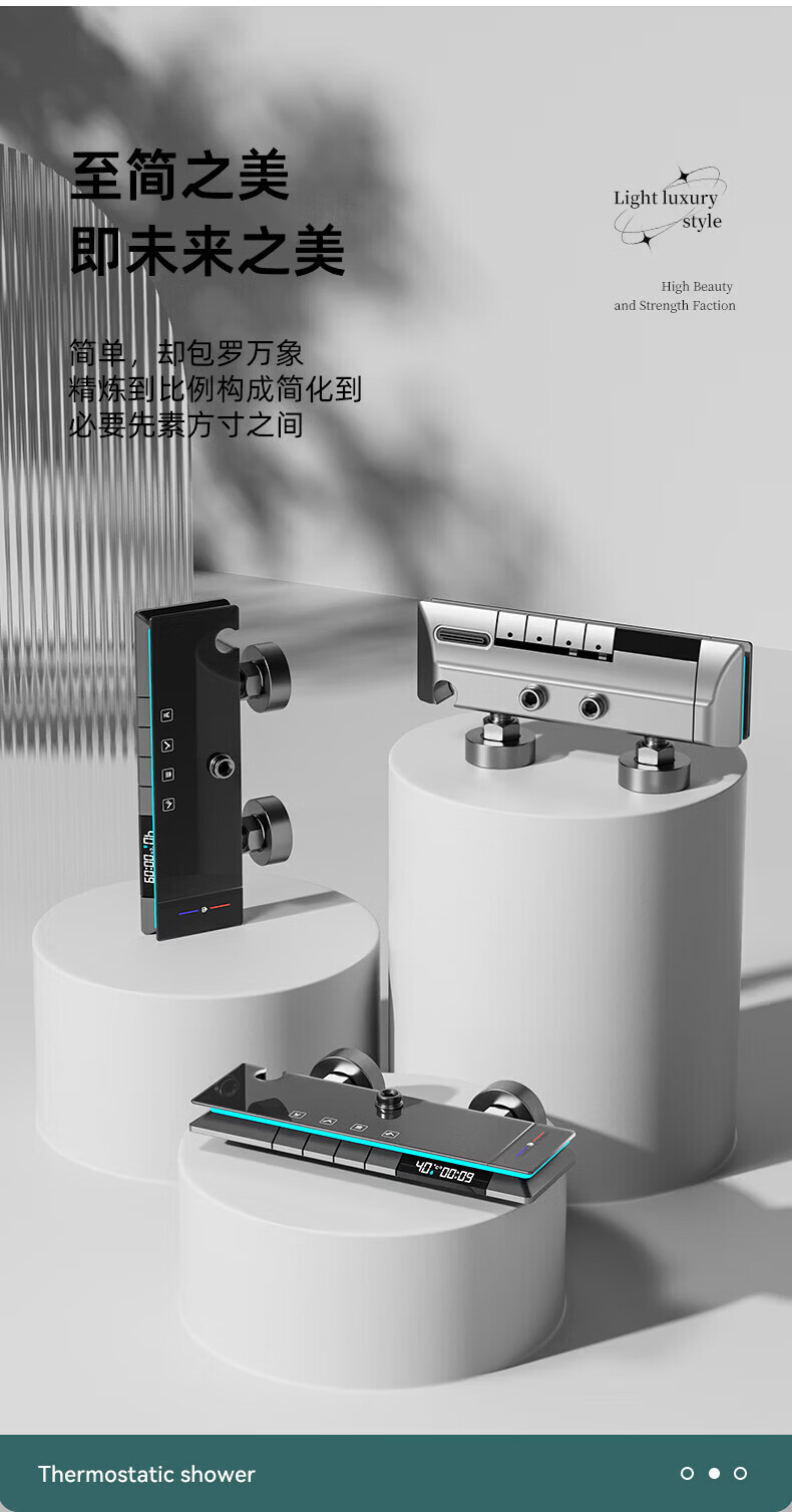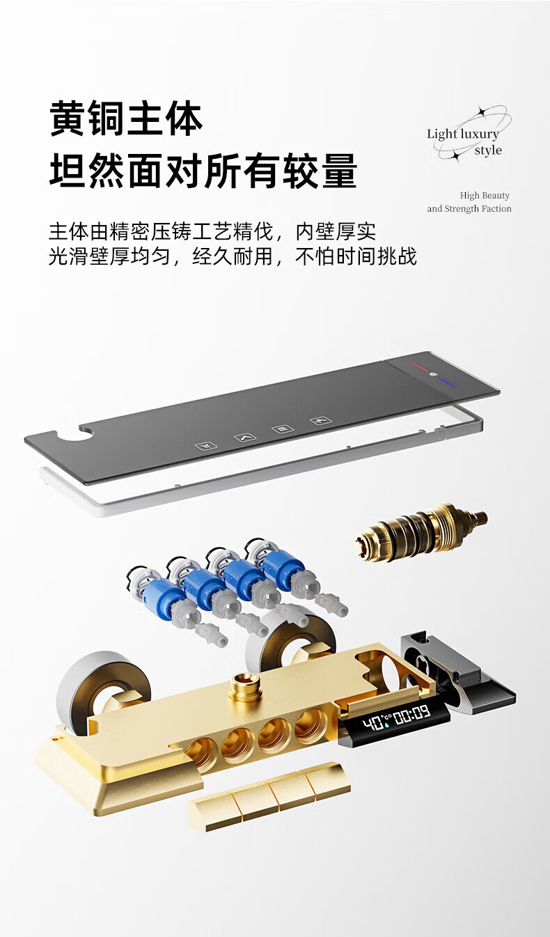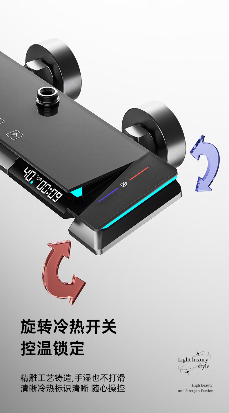 九牧【JOMOO】花洒淋浴套装铜恒温数显钢琴键浴室卫生间淋雨喷头 水镀灰钢琴四档-恒温款 包安装