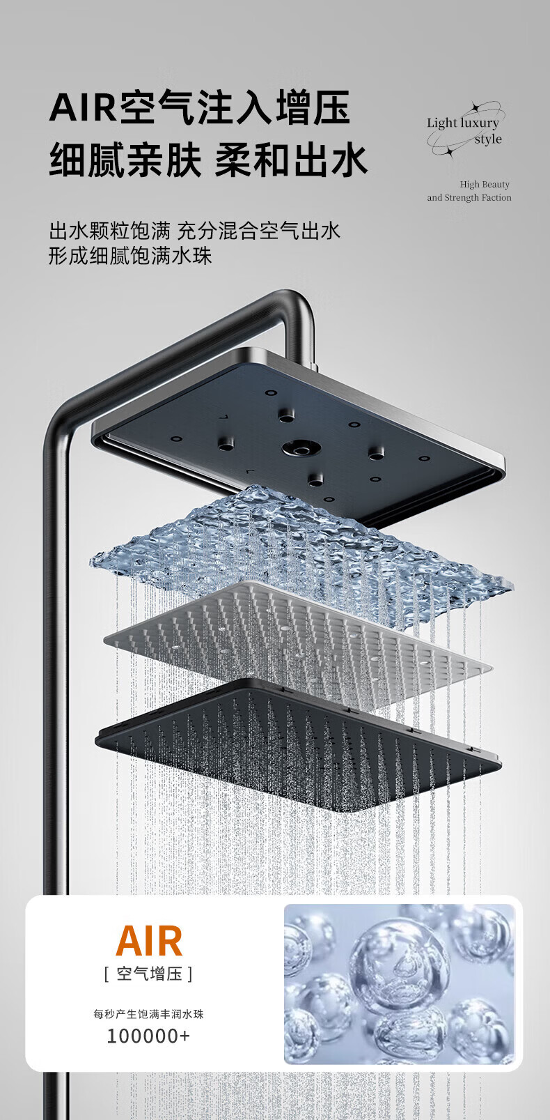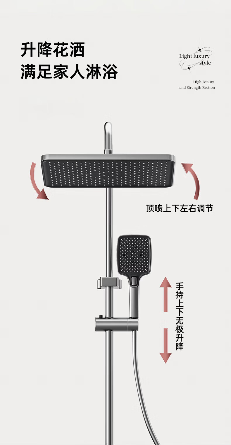 九牧(JOMOO)花洒淋浴套装琴键顶喷手持增压双除垢自洁精灵方管淋浴器旗舰新品 【重磅新品】增压自动除垢36694升级款