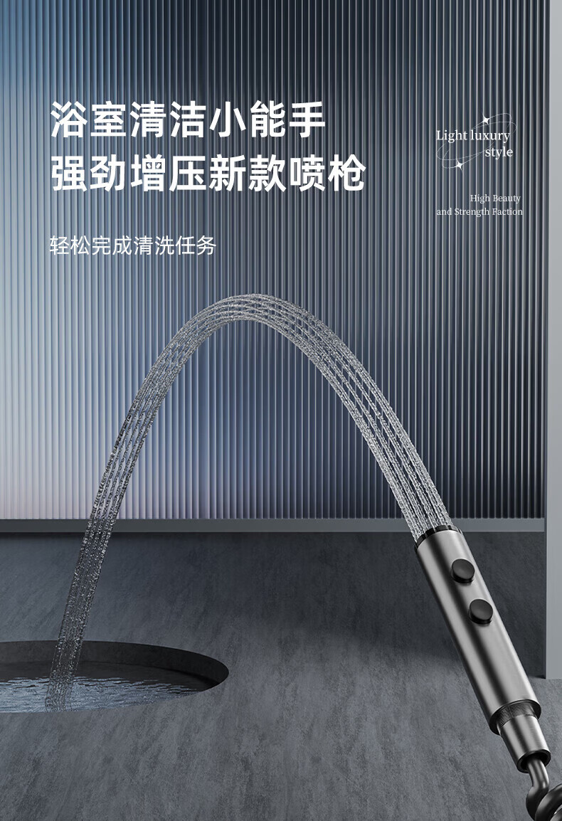 CUNKOY【德国】过滤花洒喷头过滤器带软管一套增压家用手持莲蓬头套装 六档花洒+1.5m软管【枪灰】 过滤净水丨六档增压丨大面板出水