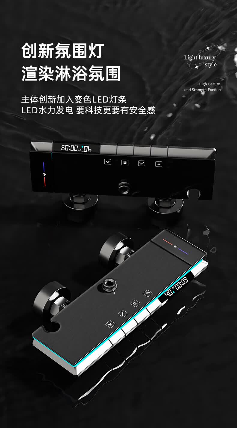 HOROW阻垢除氯感应数显微气泡花洒多功能手持御水花洒A11【2026新品】 【26年新品花洒】A11镜面款