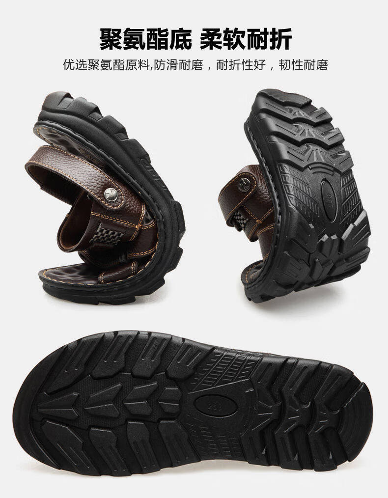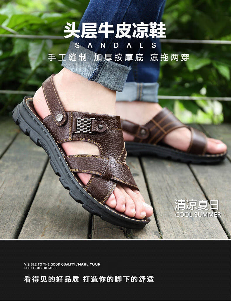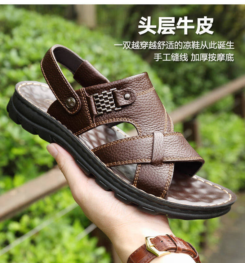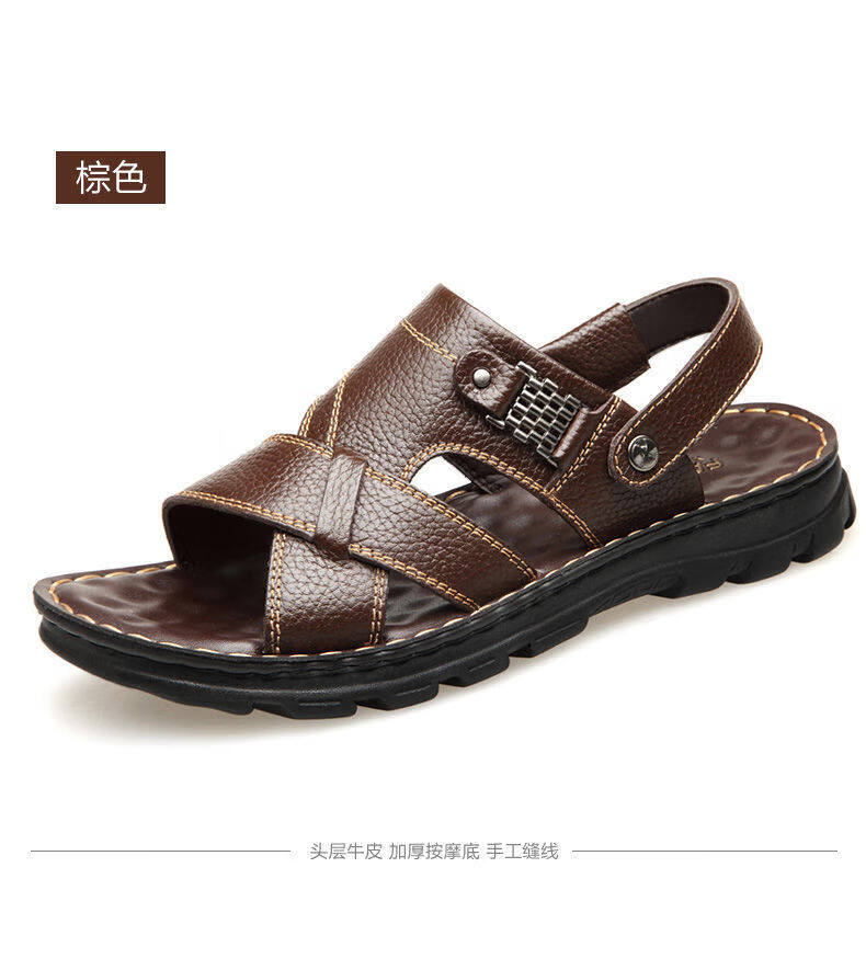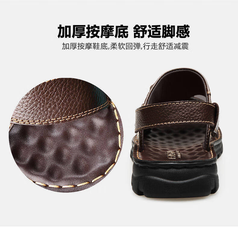 啄木鸟【真牛皮】头层牛皮凉鞋男真皮夏季男士凉拖男休闲两穿驾车沙滩鞋 9928 棕色【头层牛皮】 39
