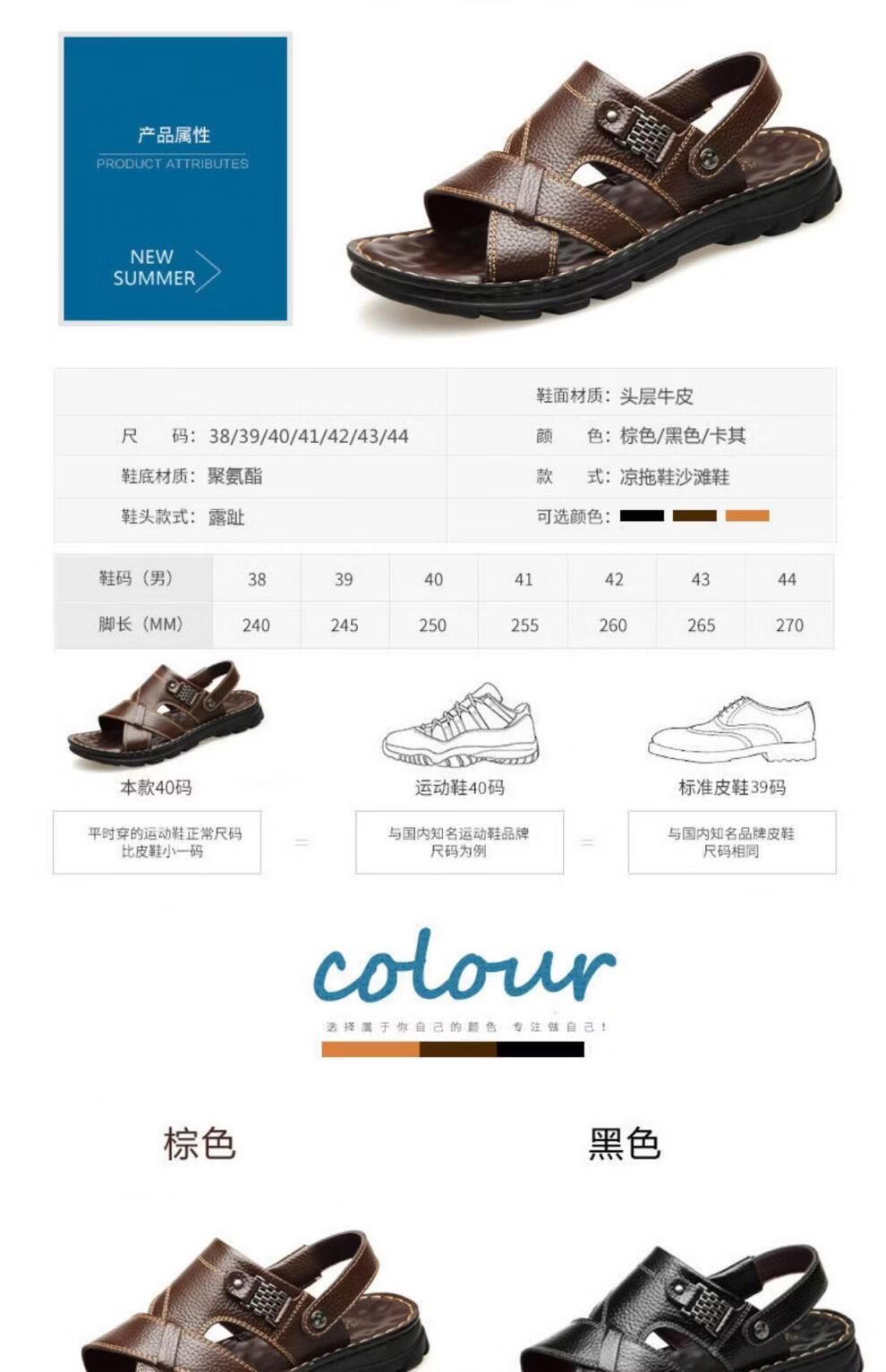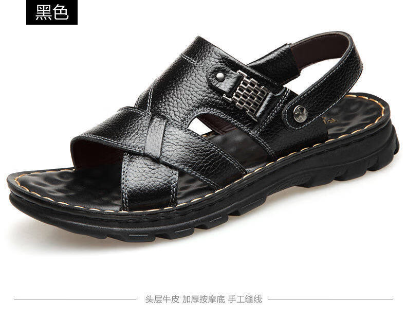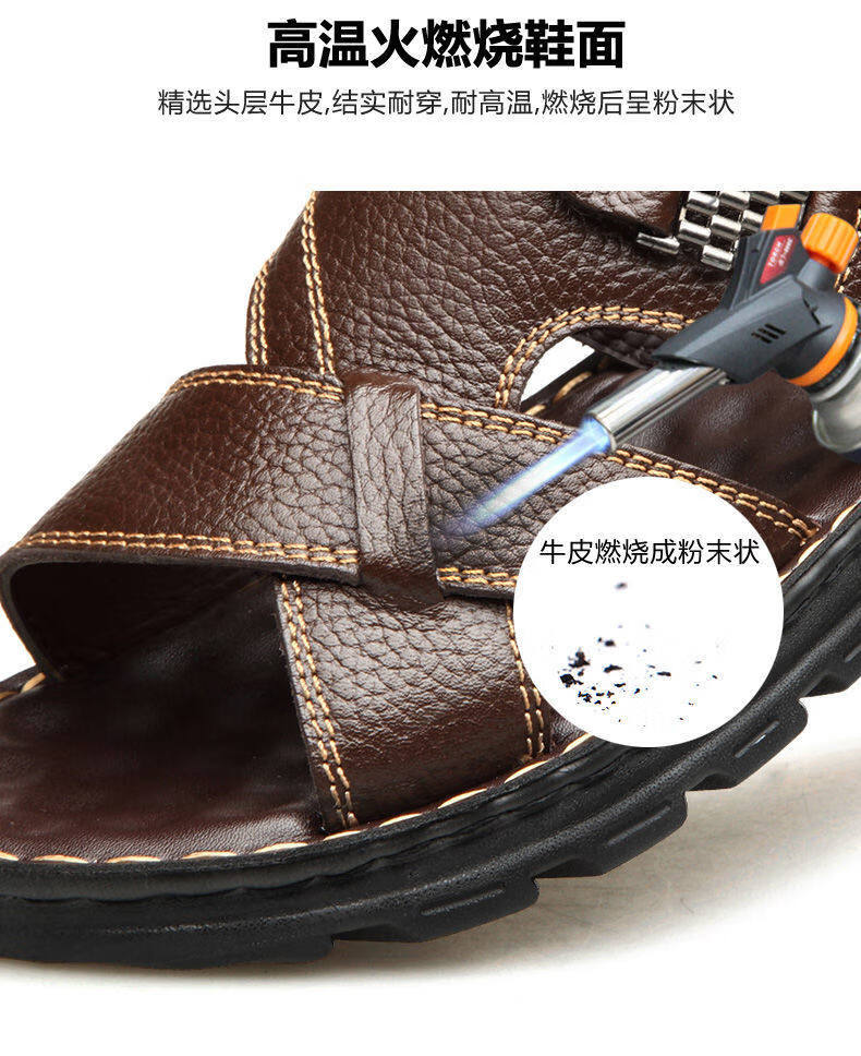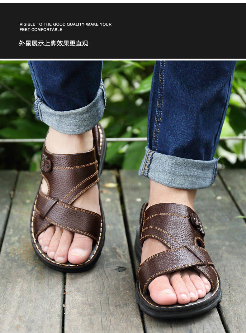 啄木鸟【真牛皮】头层牛皮凉鞋男真皮夏季男士凉拖男休闲两穿驾车沙滩鞋 9928 棕色【头层牛皮】 39