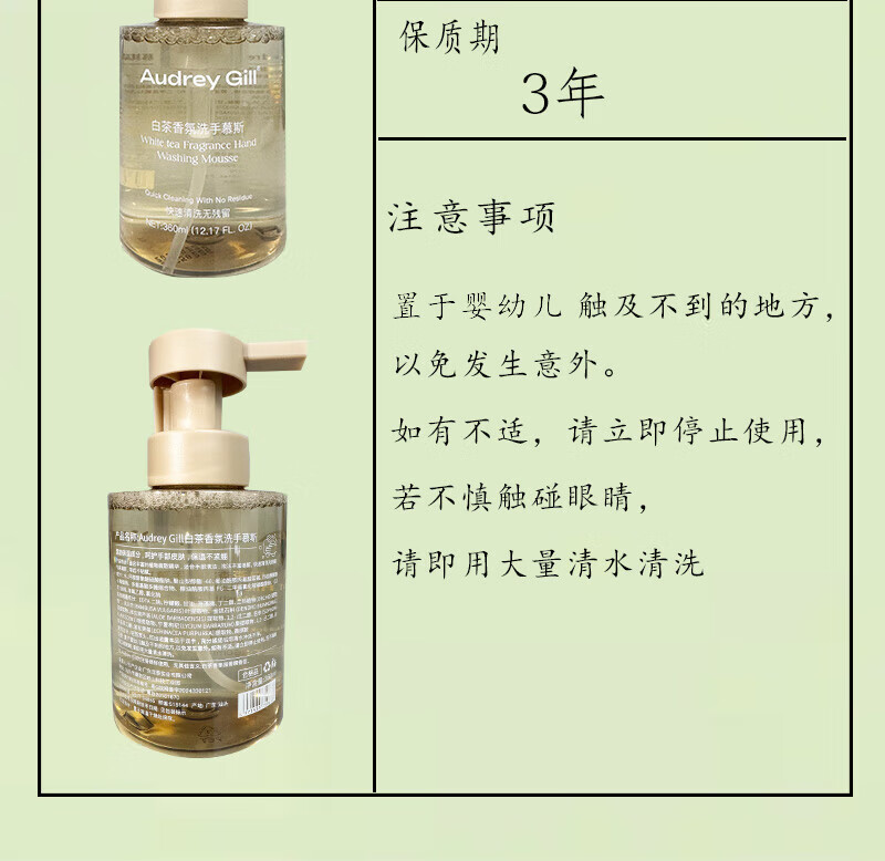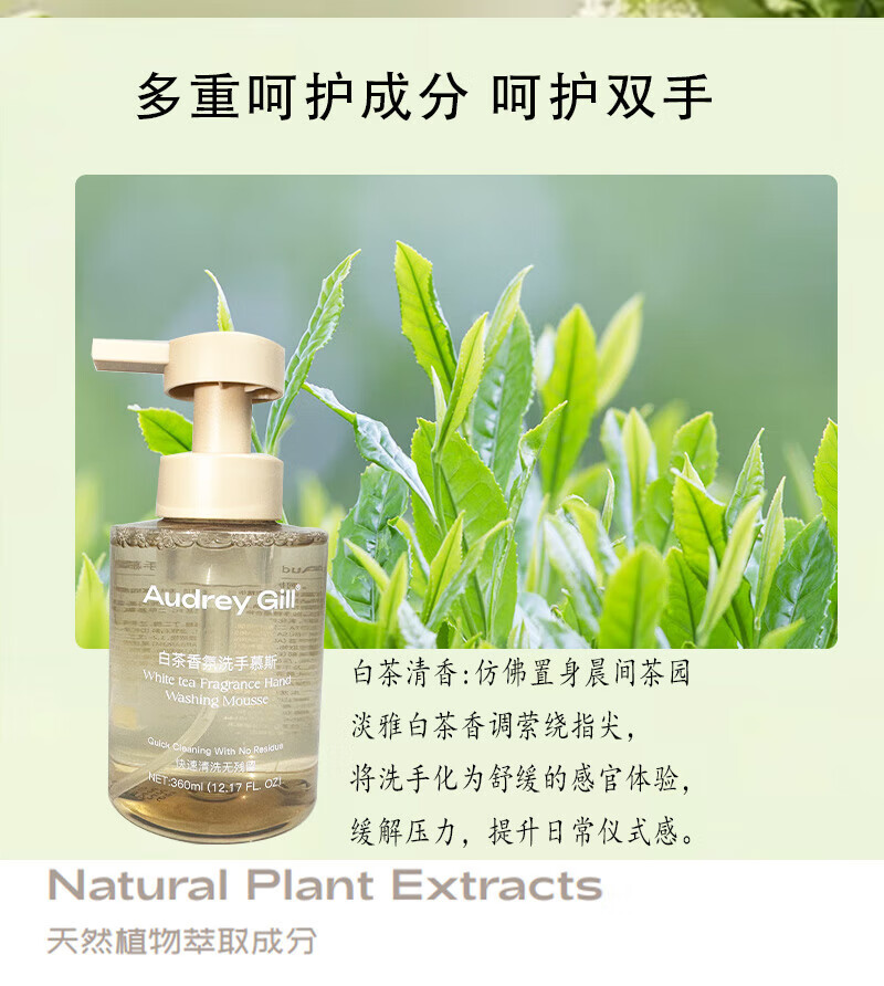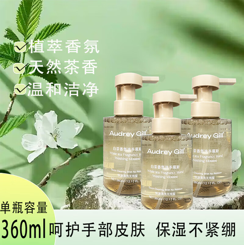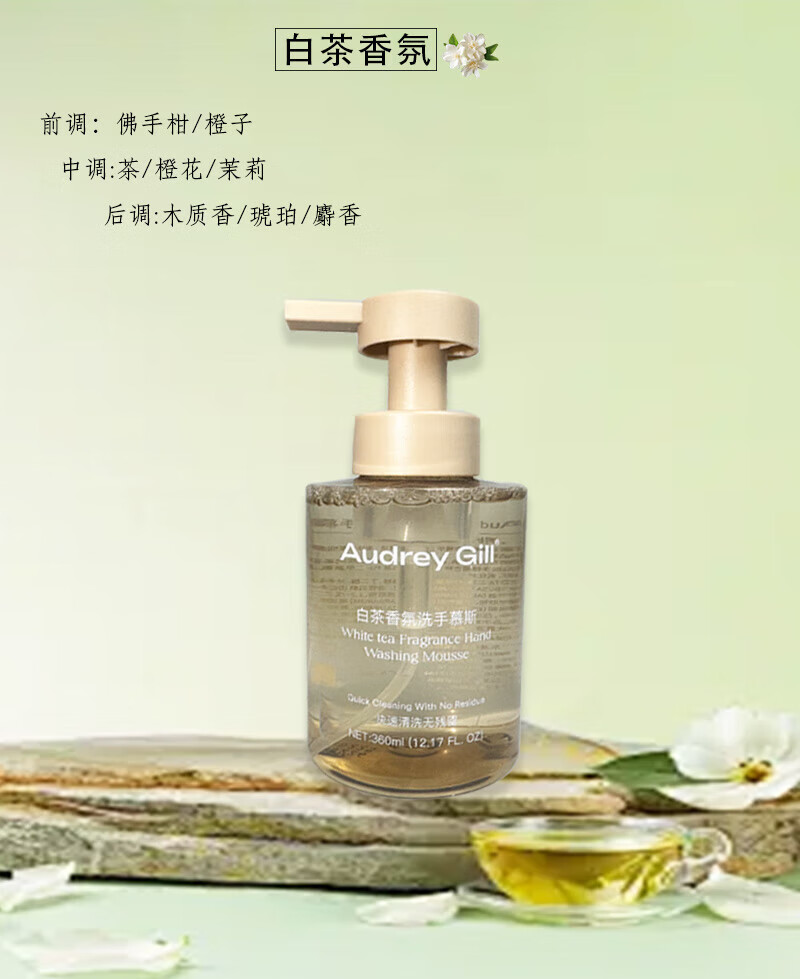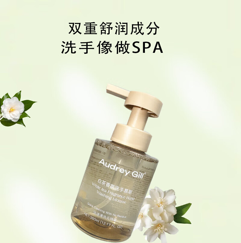 AUDREY GILL白茶香氛洗手慕斯酒店同款泡沫洗手液健康呵护保湿儿童大人通用 白茶香氛 350ml*1瓶