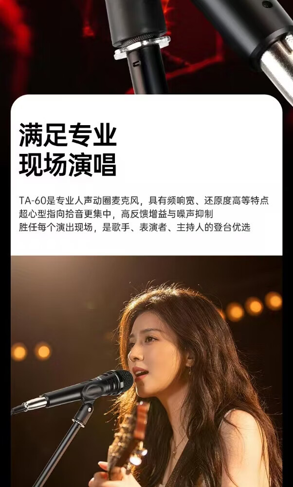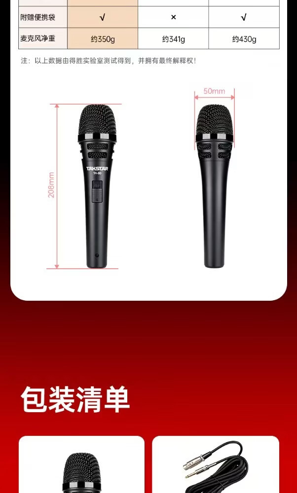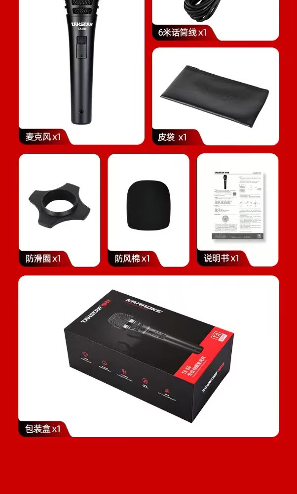 得胜(TAKSTAR)TA60专业有线动圈麦克风 直播K歌家用卡拉OK舞台户外音响调音台功放声卡演出唱歌手持主持专用话筒 TA65(新品)(6米线 6.5插头)