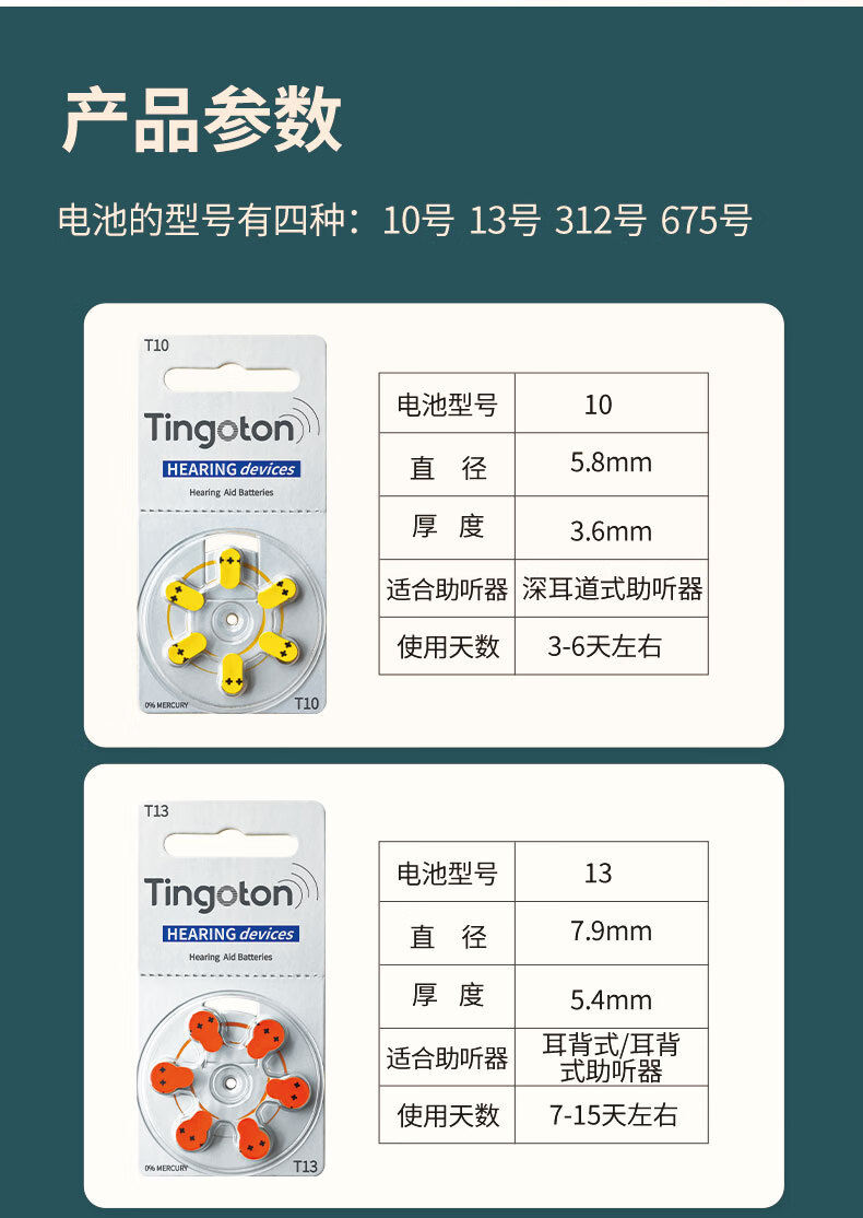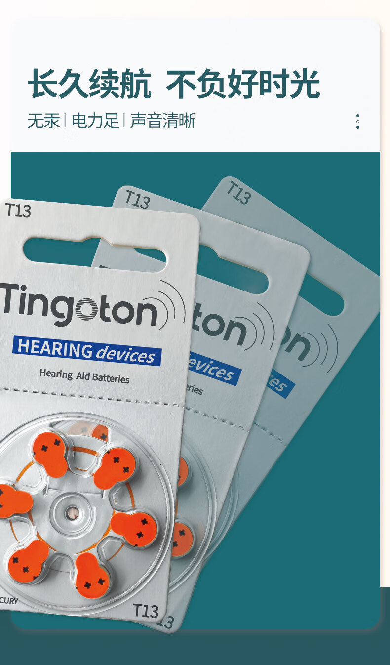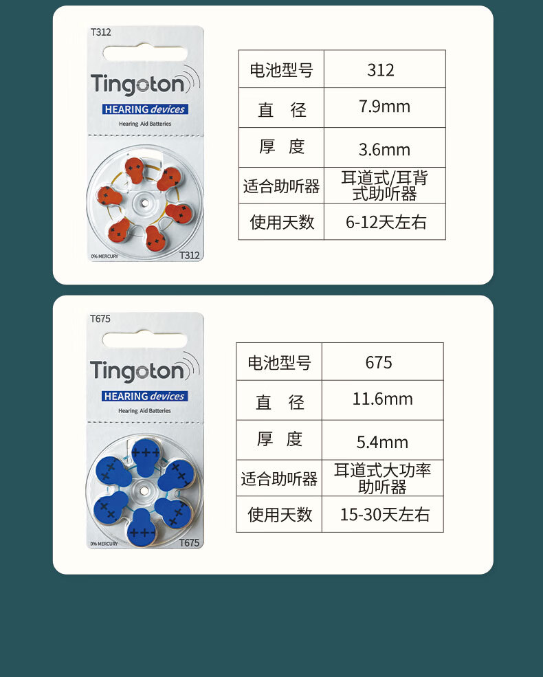 音特美助听器电池银卡电池A10/A13/A312/A675无汞原装通用型助听器专用 红卡助听器电池 675型五板30颗
