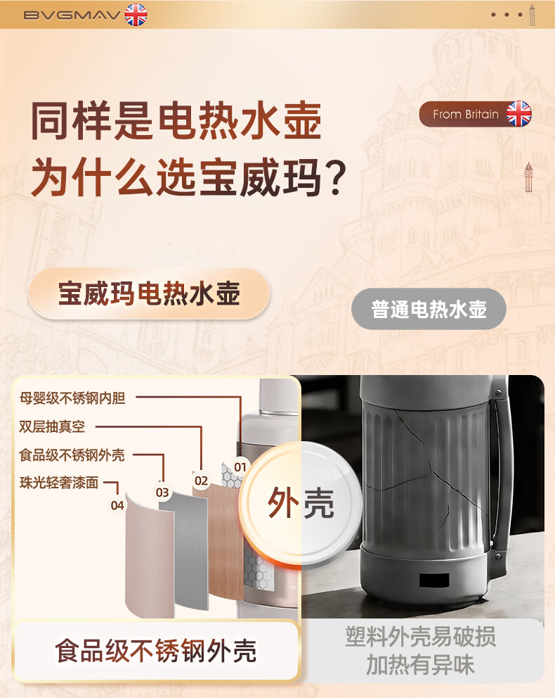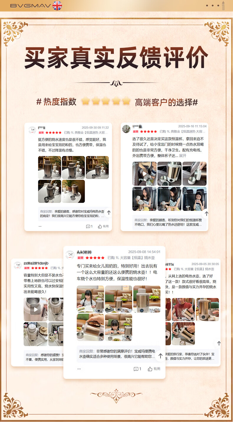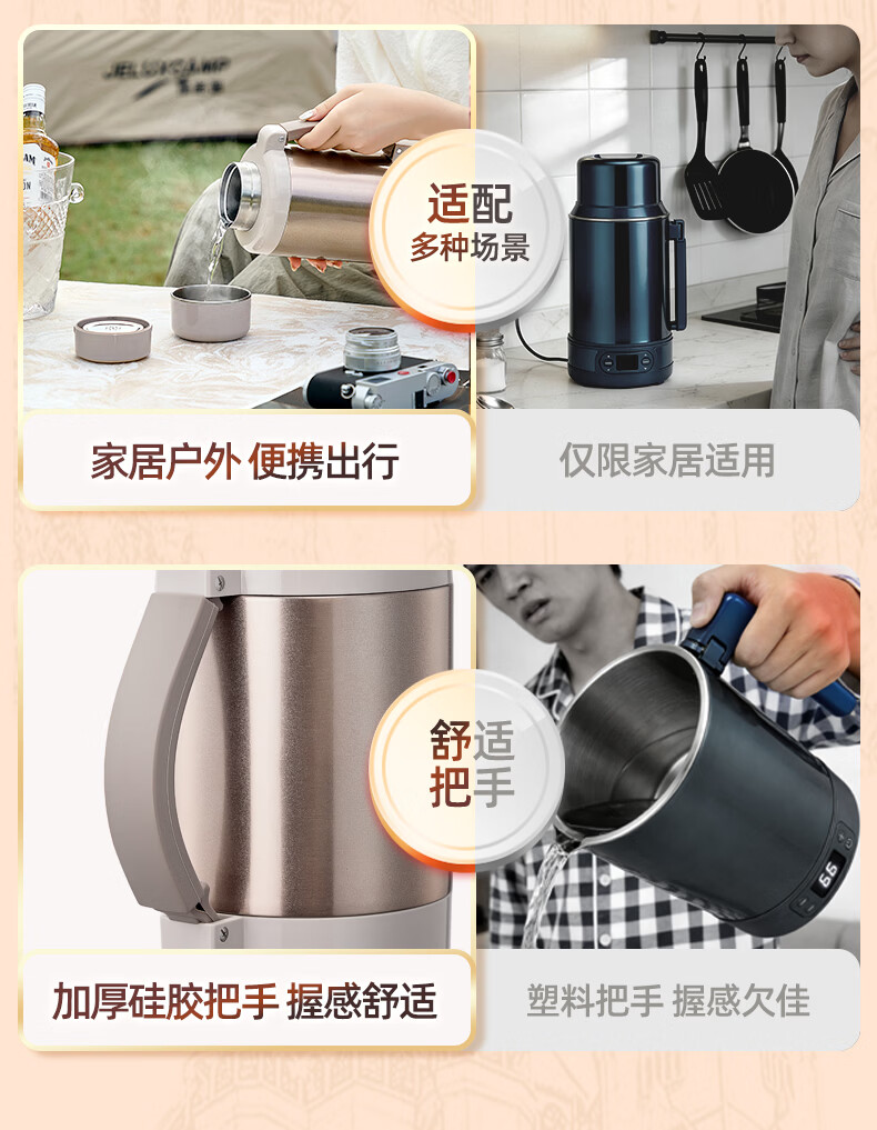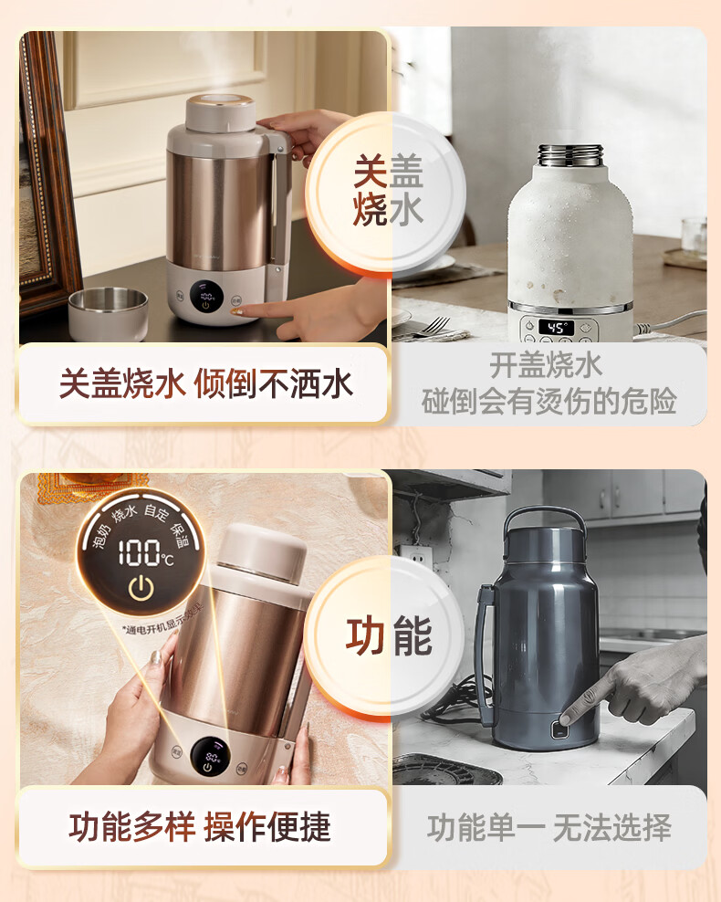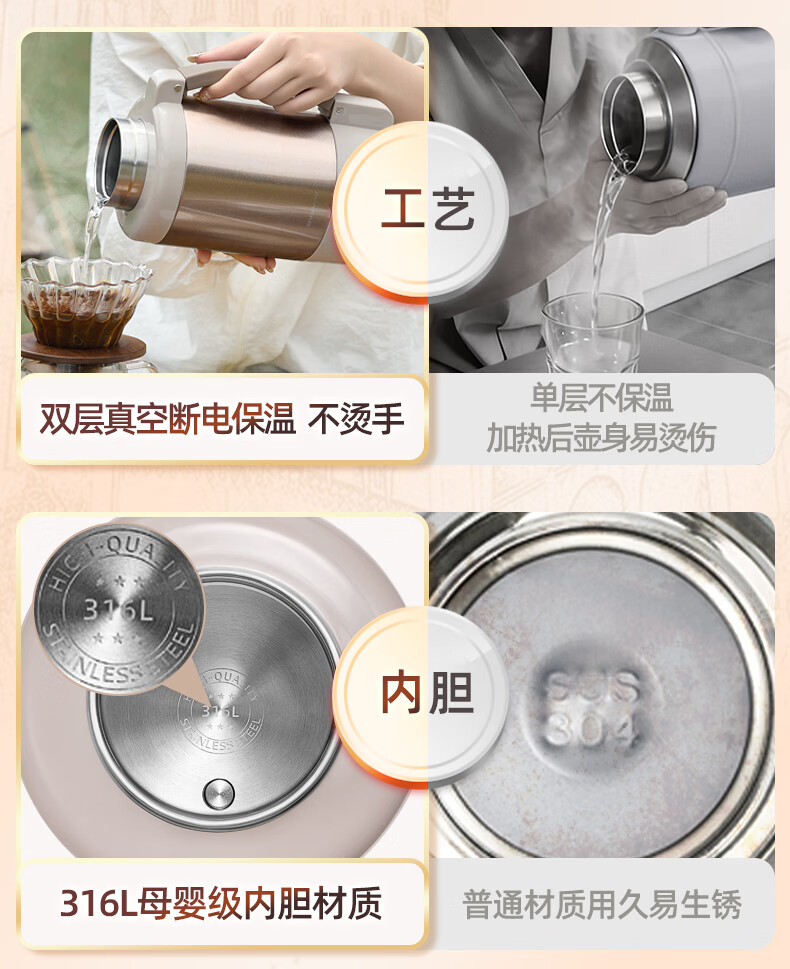 宝威玛(BVGMAV)316L食品级不锈钢便携式烧水壶保温一体全自动家用恒温水杯户外旅行露营出差办公室四档恒温烧水杯 1L 店长推荐【316L母婴级内胆】烧水壶