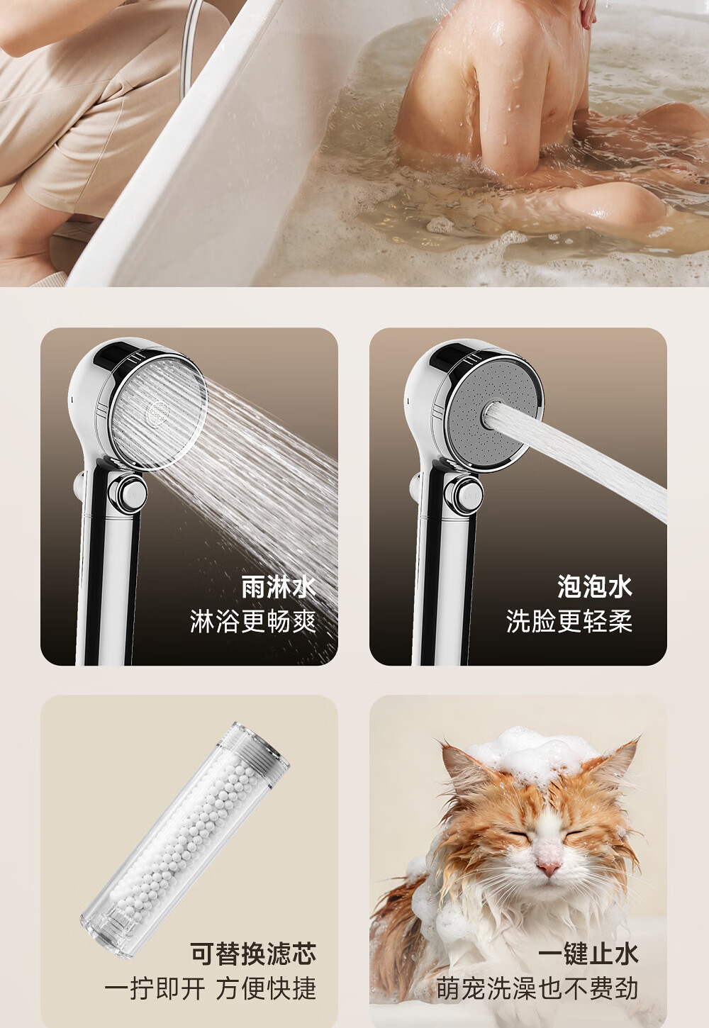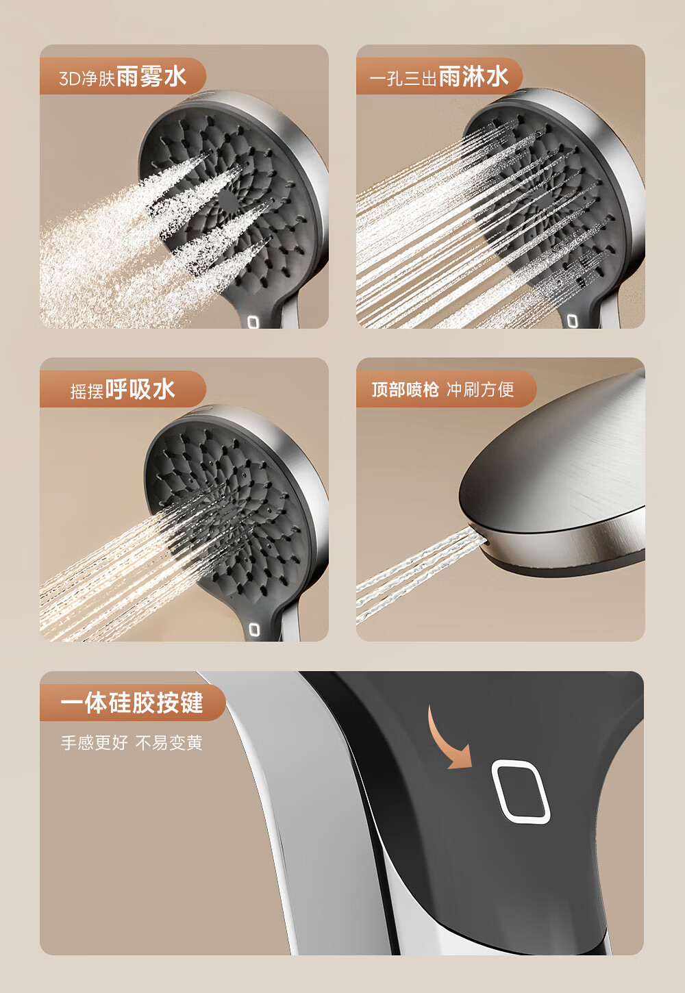 摩恩【迷住专属】手持花洒防指纹花洒喷头六出水方式浴室淋浴花洒配件 摩恩防指纹手持花洒