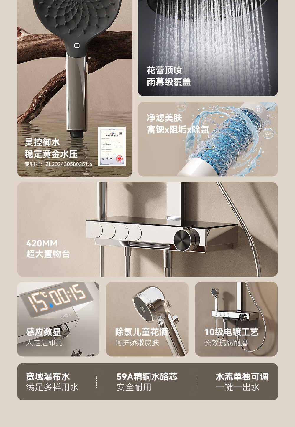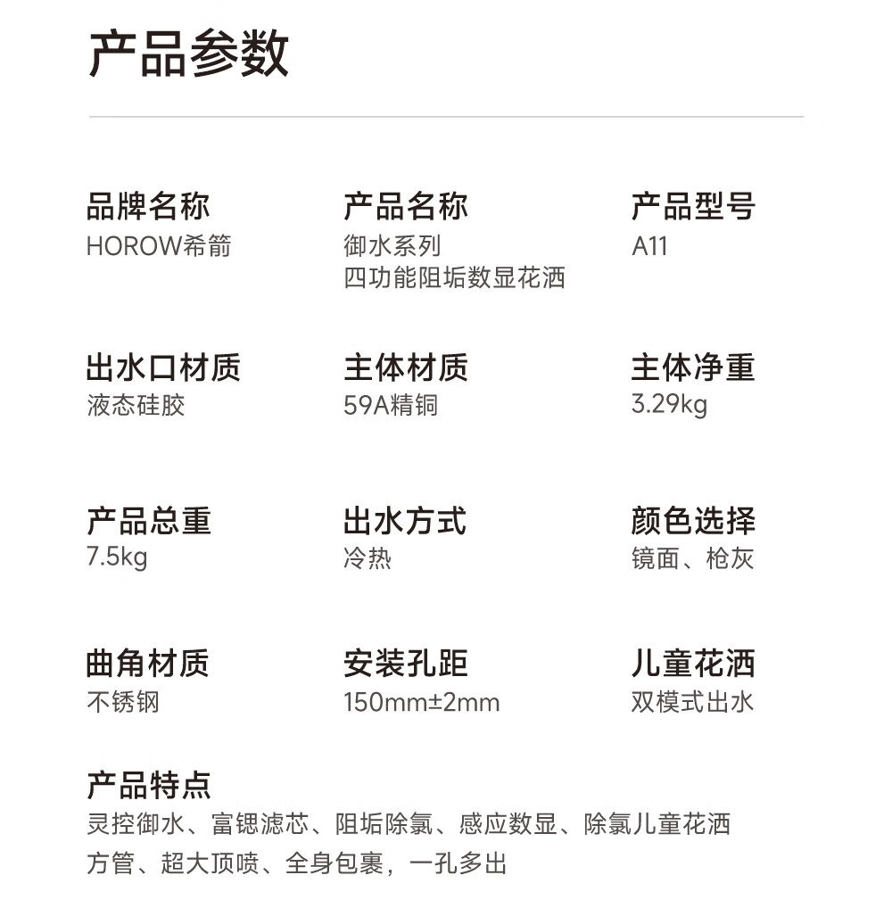 HOROW阻垢除氯感应数显微气泡花洒多功能手持御水花洒A11【2026新品】 【26年新品花洒】A11镜面款