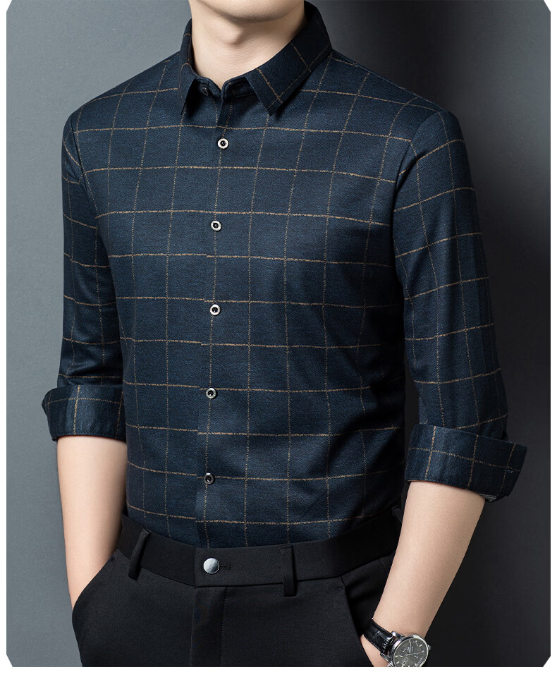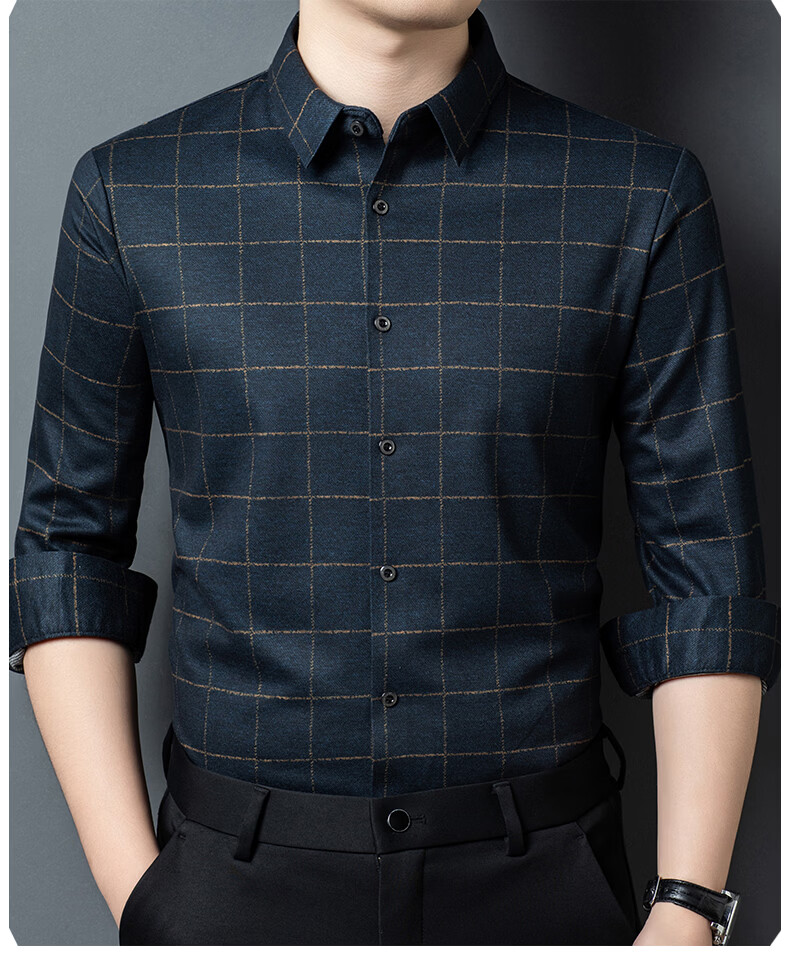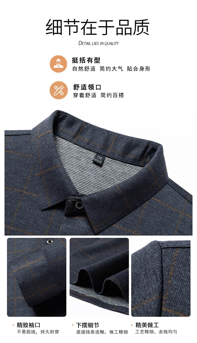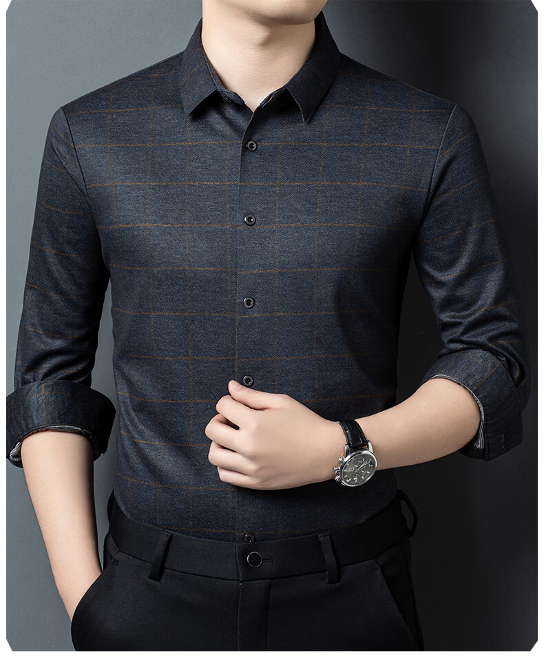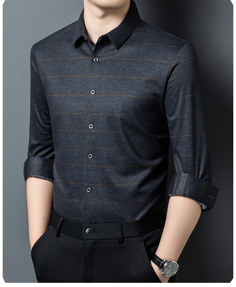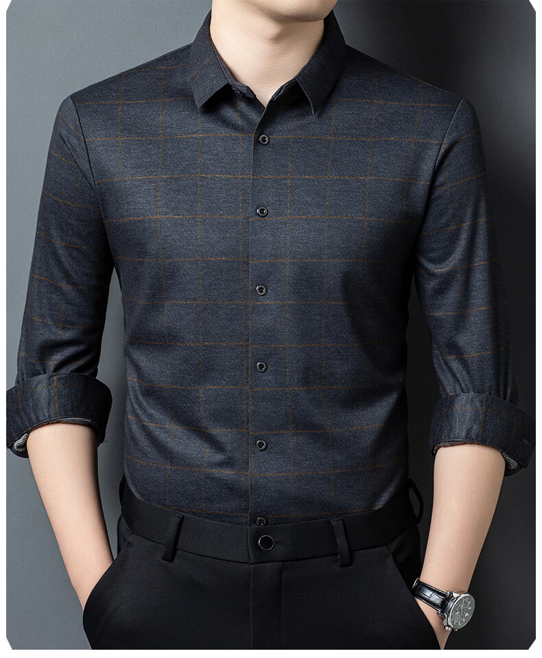 皮尔卡丹(pierre cardin)羊毛桑蚕丝衬衫男士全无缝爸爸装衬衣宽松商务免烫条纹帅气夏季 灰色 4XL (185-200斤)